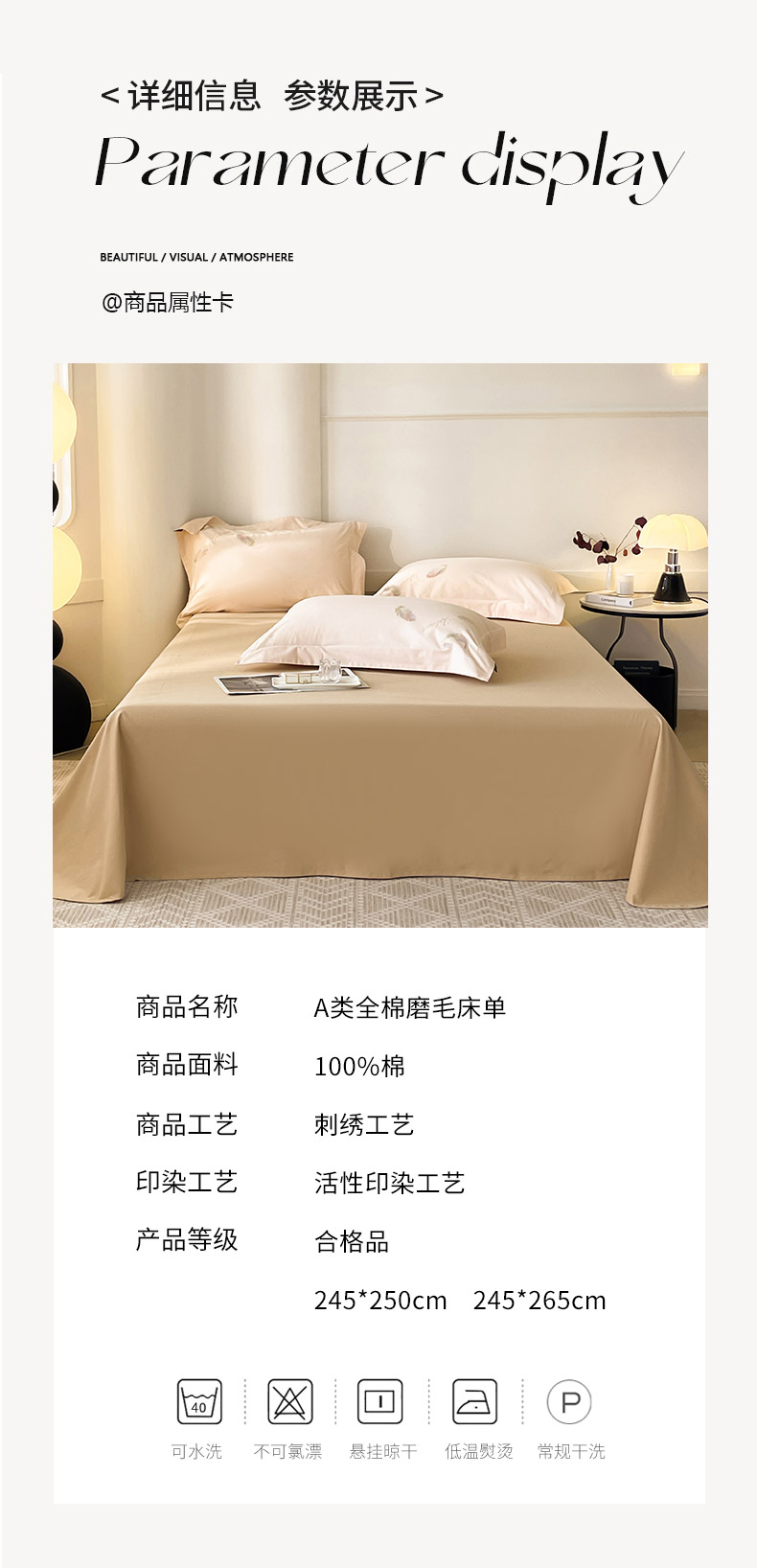 商品名称: 【A类母婴级】冬季加厚保暖纯棉磨毛床单全棉纯色简约床罩澳棉长绒棉床上用品 果棕