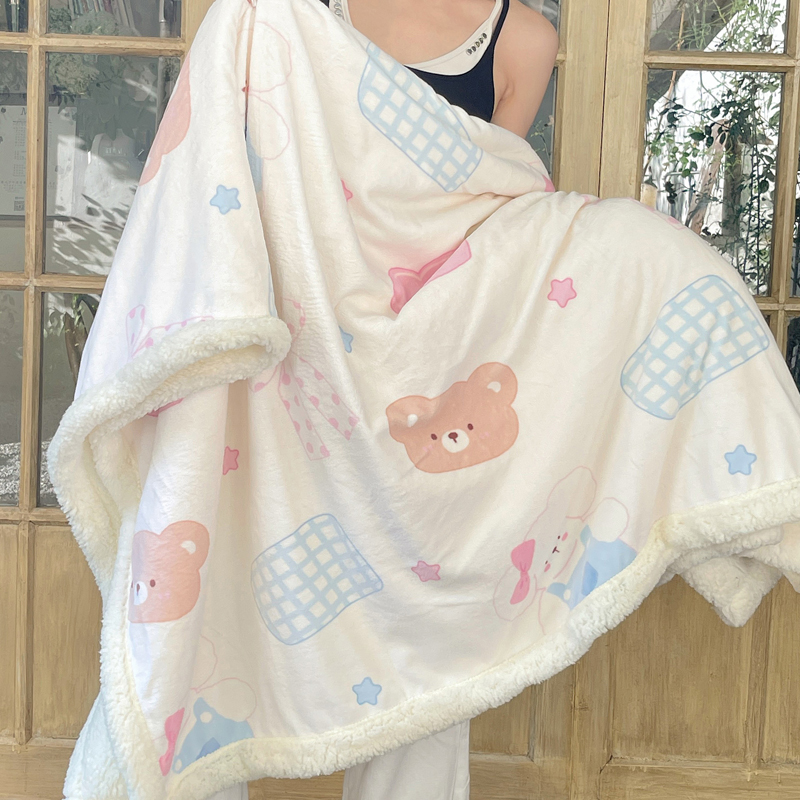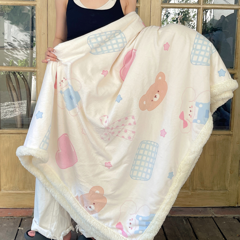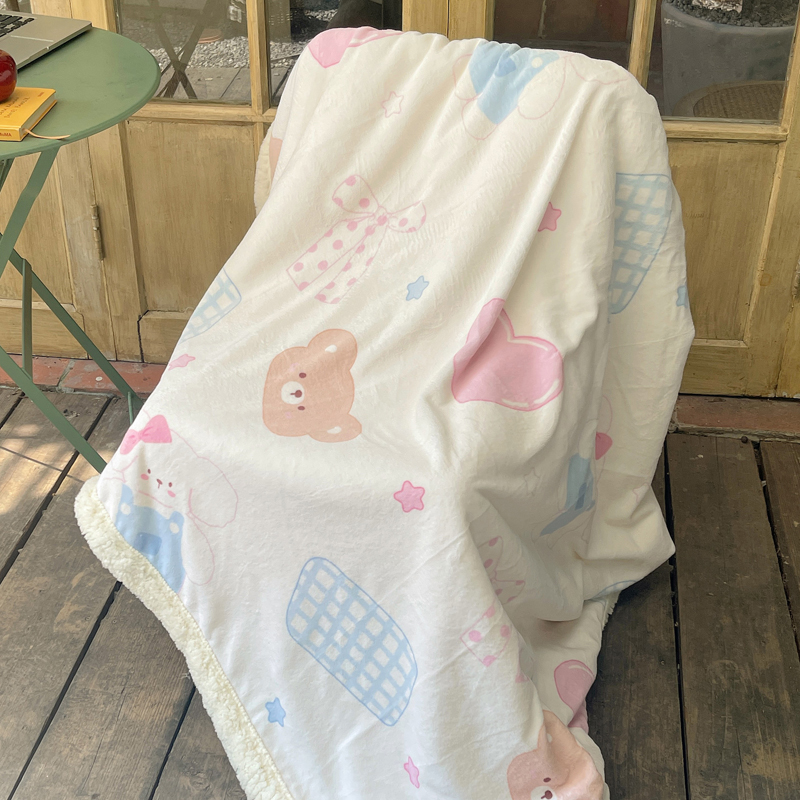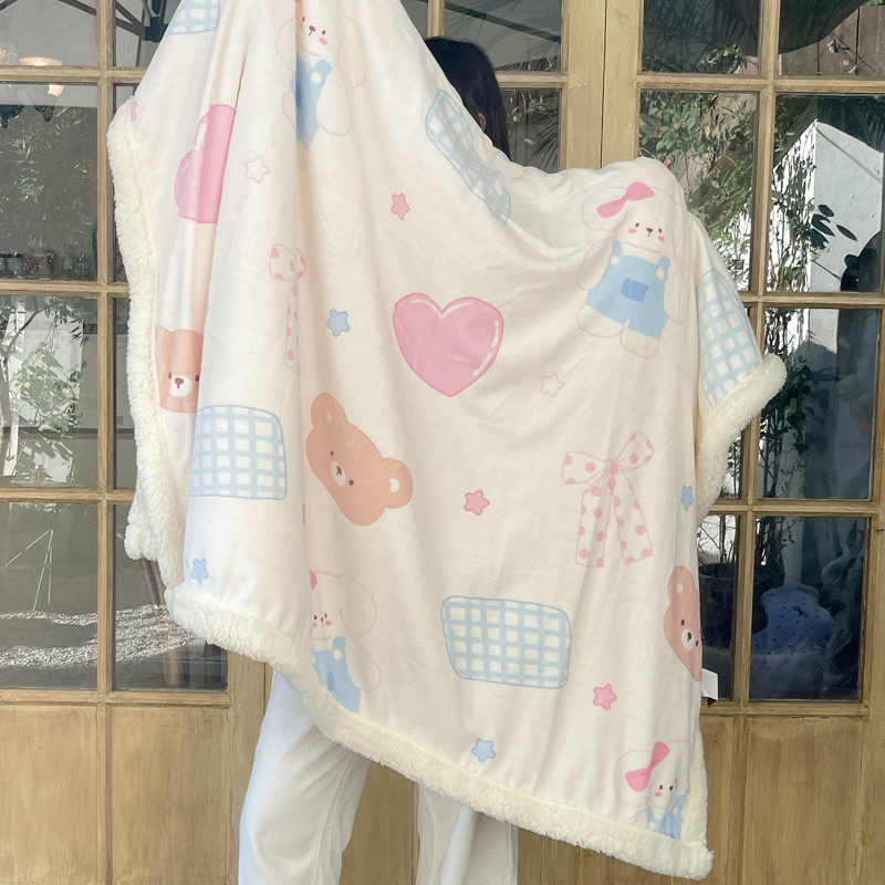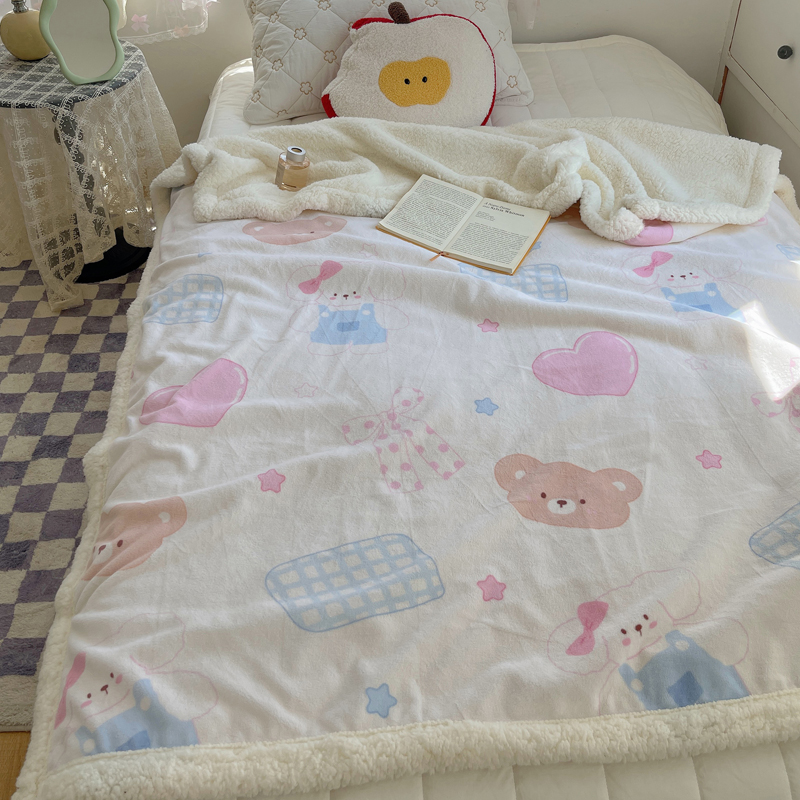 顾里 2024新款韩系牛奶羊羔绒毯 漫画小熊