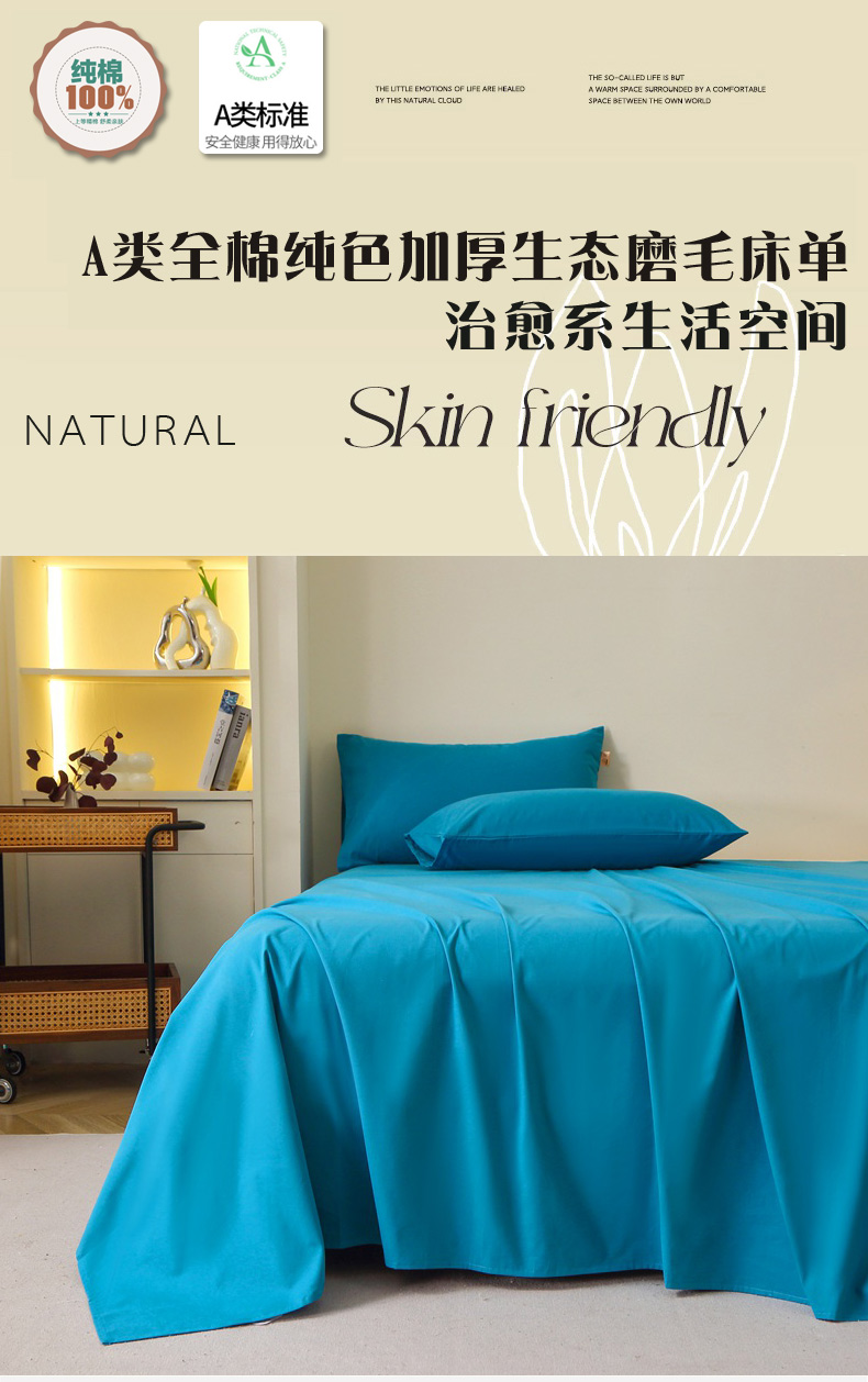 商品名称:晶缦家纺 2024新款全棉13376纯色喷气全棉磨毛单品床单 暖芸馨-云山蓝