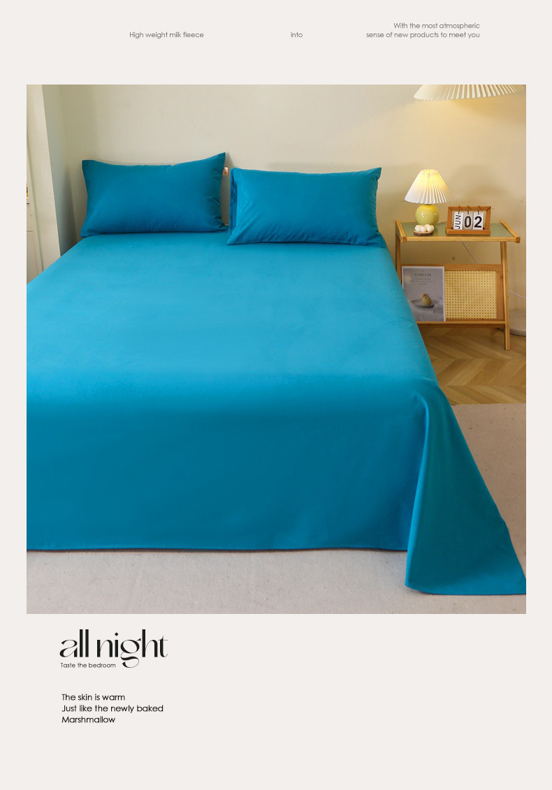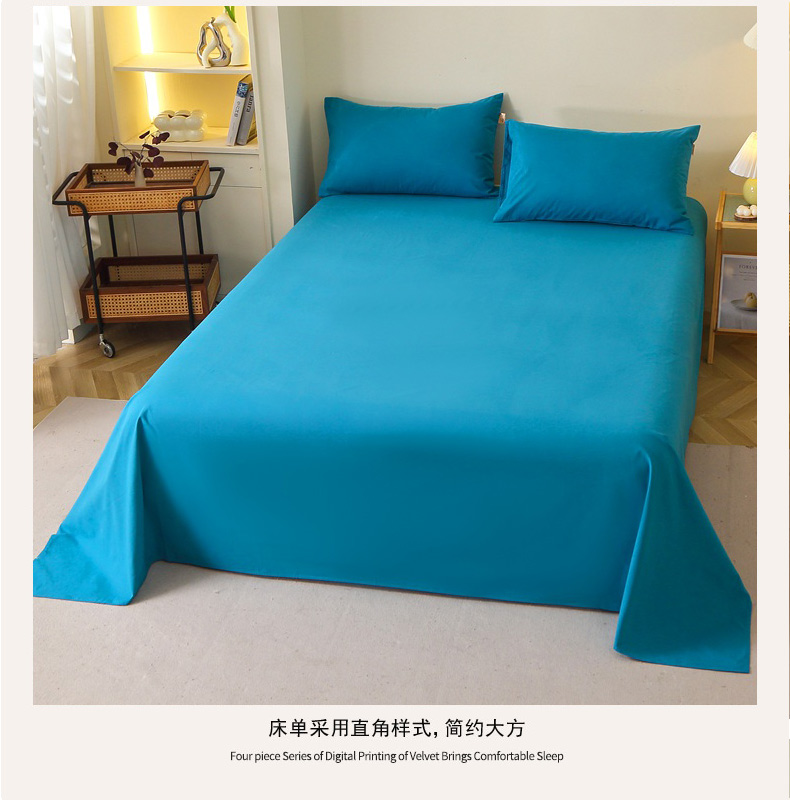晶缦家纺 2024新款全棉13376纯色喷气全棉磨毛单品床单 暖芸馨-云山蓝