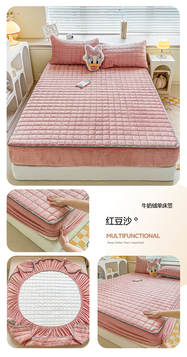 商品名称:卡伦家纺 2025新款A类牛奶绒大豆纤维抗菌夹棉床笠 红豆沙