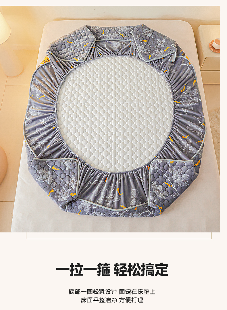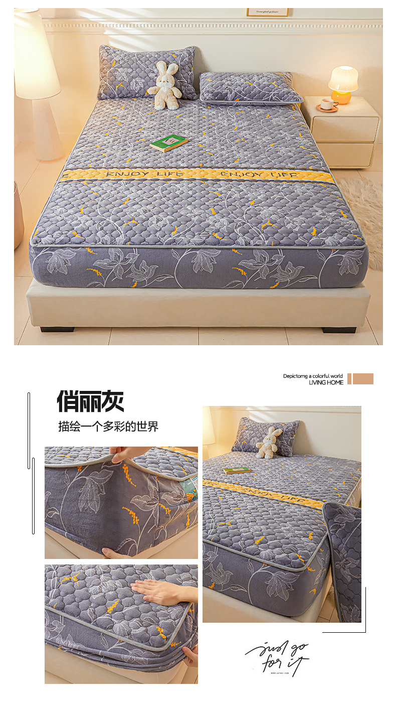 卡伦家纺 2025新款A类牛奶绒大豆纤维抗菌夹棉床笠 俏丽灰