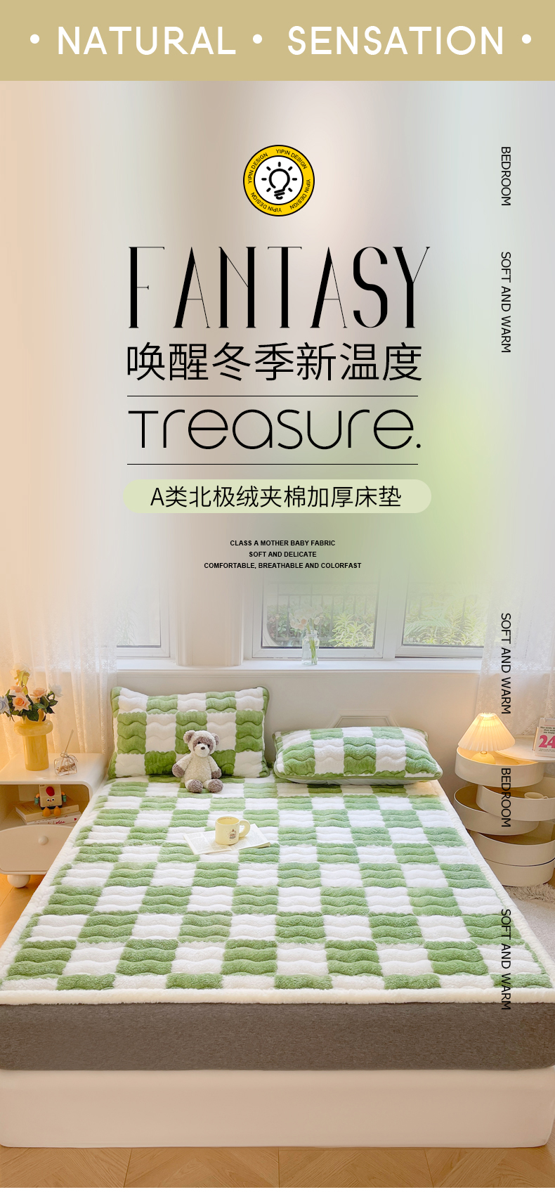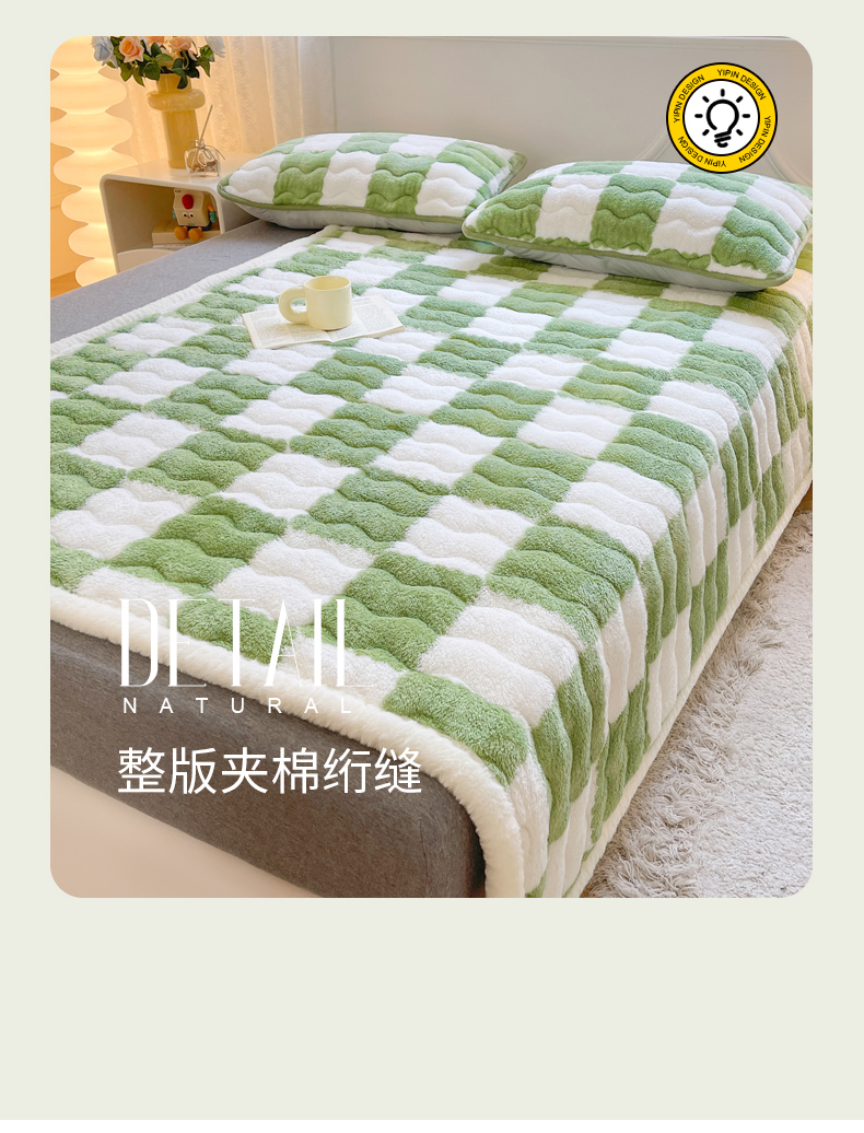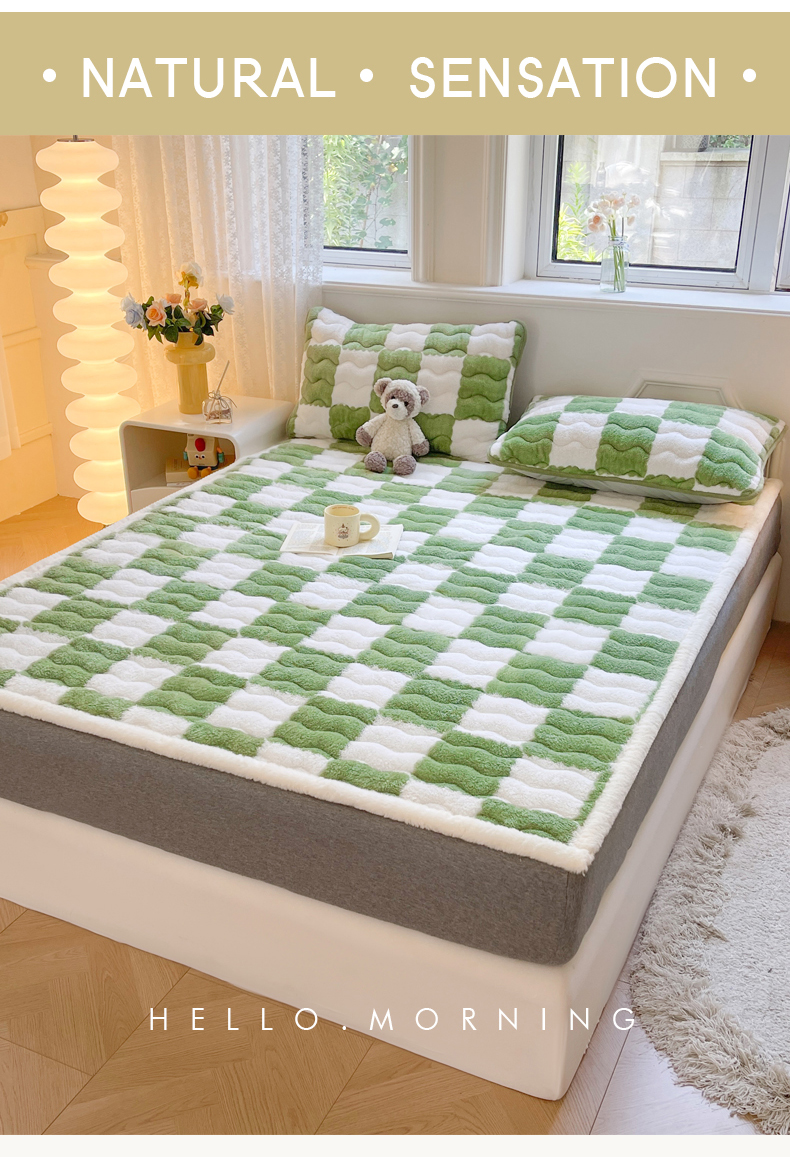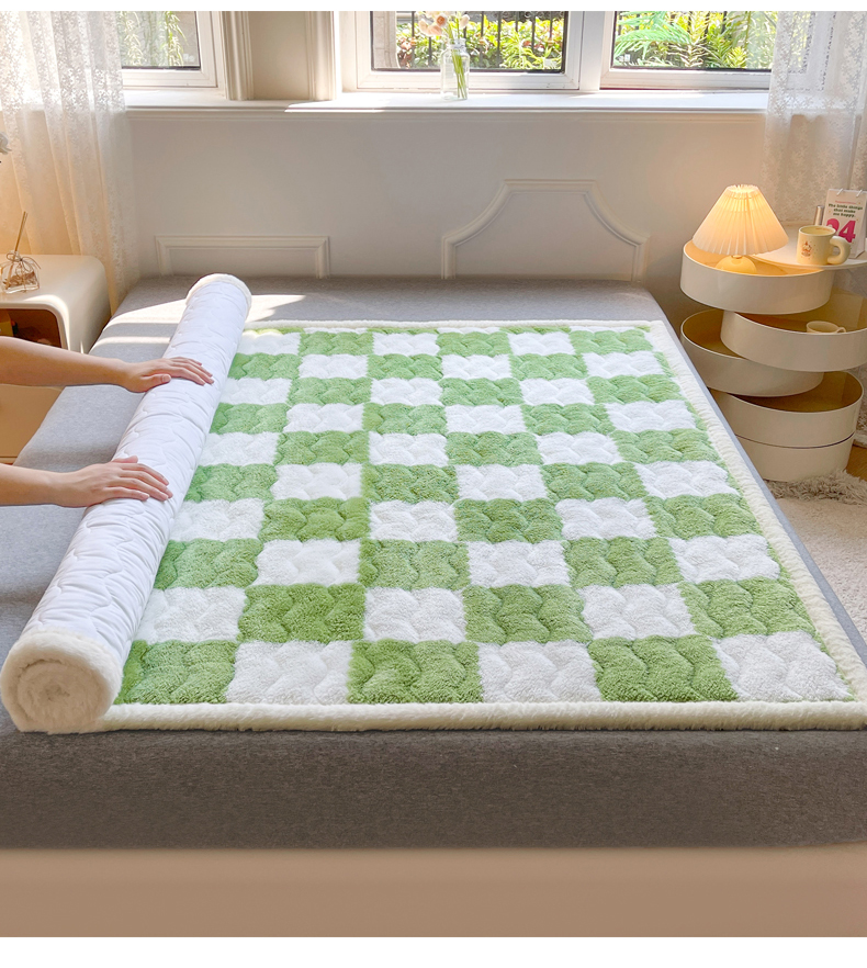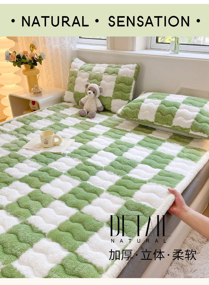当前位置: 91家纺网 > 商品网购 > 床垫/床褥 > 普通床垫 > 2024秋冬加厚床垫床褥子北极绒印花泰迪绒床褥床护垫三件套-160g夹棉 棋盘格-豆绿