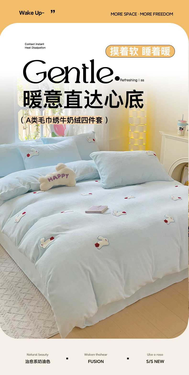 (总)寐居家纺 2024新款纯色牛奶绒毛巾绣四件套