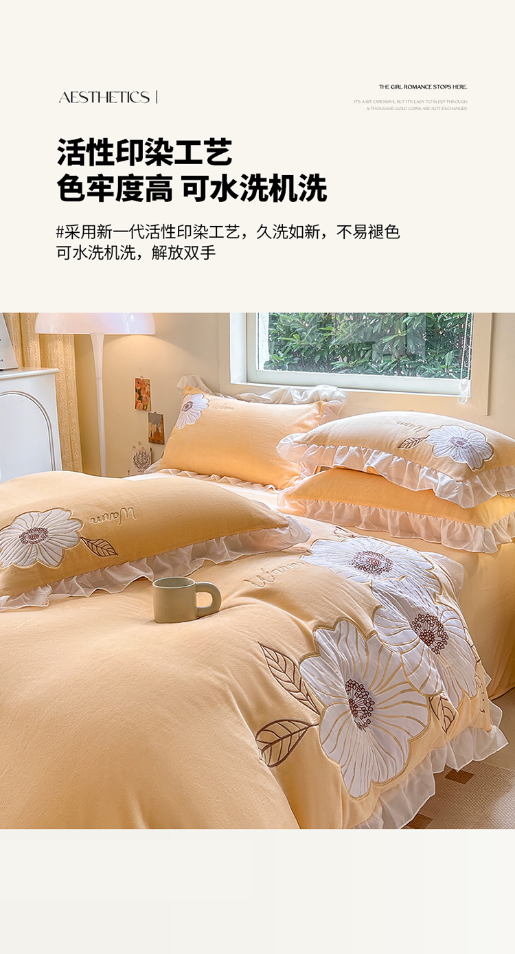 2024新款亲肤舒适牛奶绒重工艺四件套木子专版 半亩花田秋香黄
