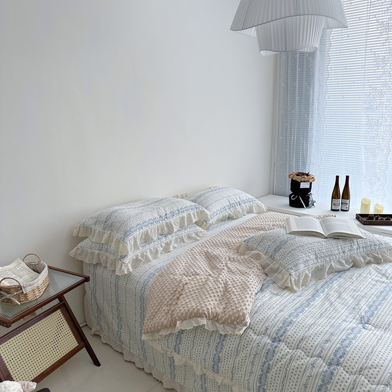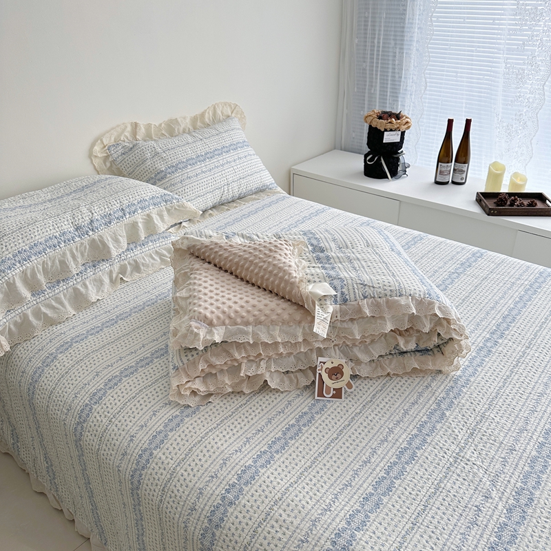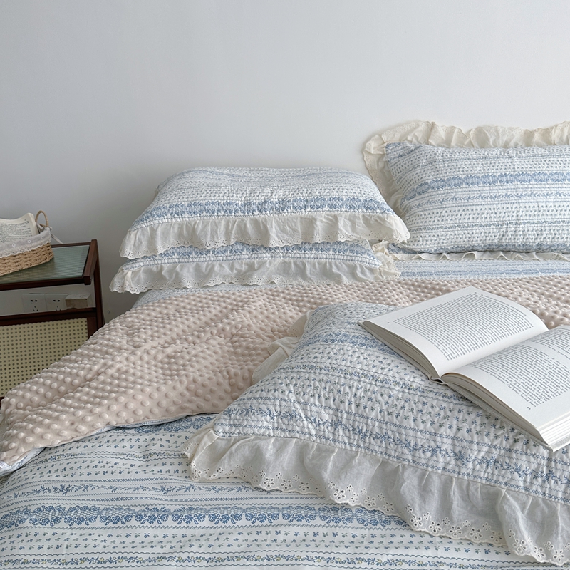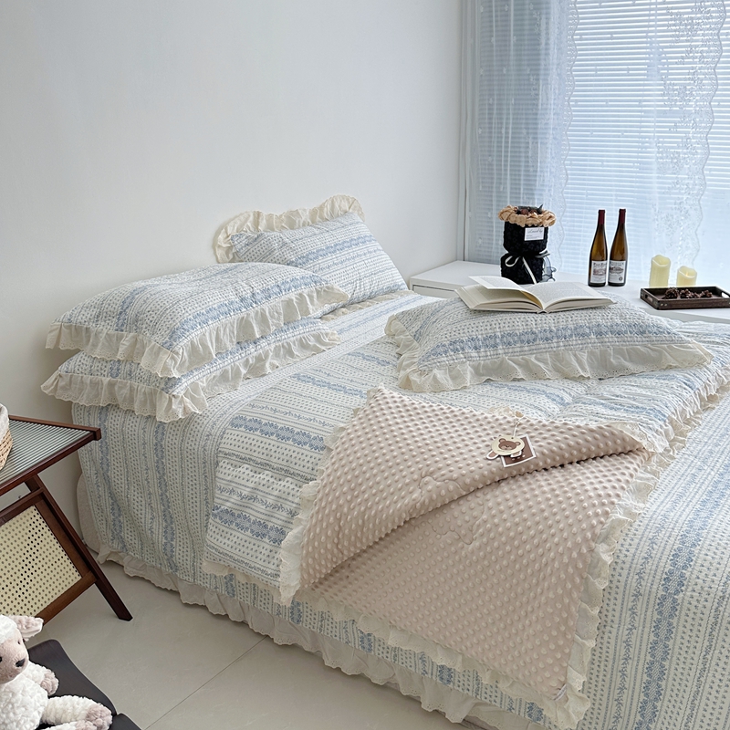 佰织鑫家居 2024新款秋冬全棉法式床盖款豆豆被四件套 蓝颜