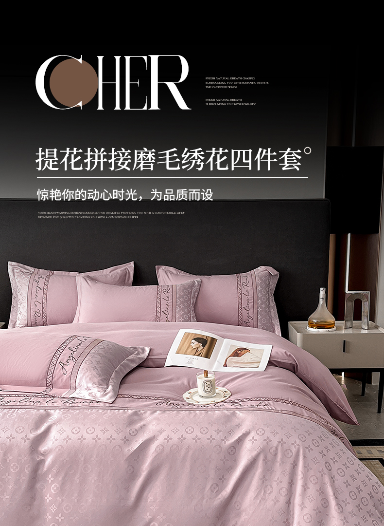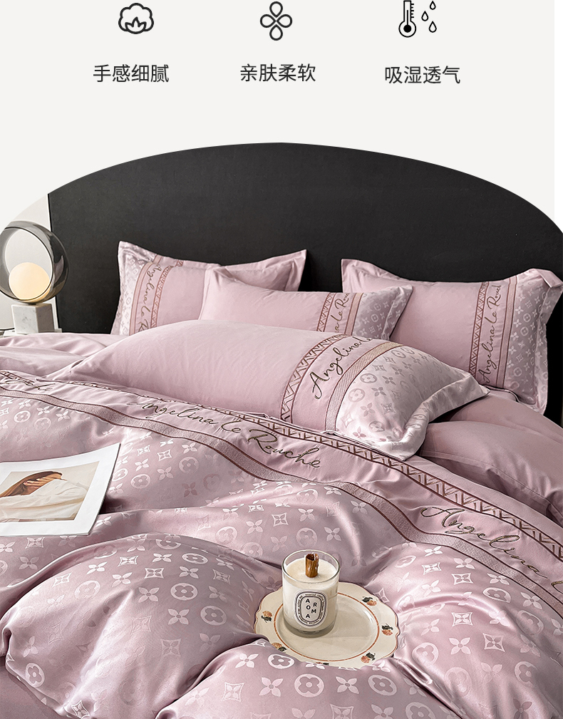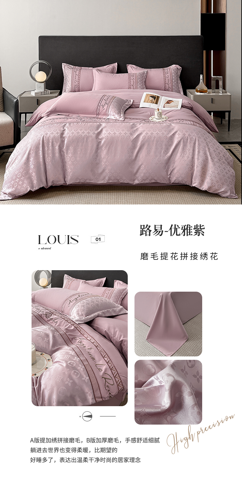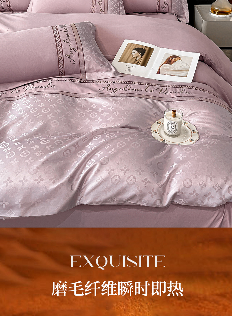 苏源家居 2024新款秋冬磨毛提花加厚轻奢四件套路易系列 路易-优雅紫