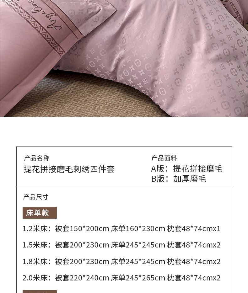 商品名称:苏源家居 2024新款秋冬磨毛提花加厚轻奢四件套路易系列 路易-优雅紫
