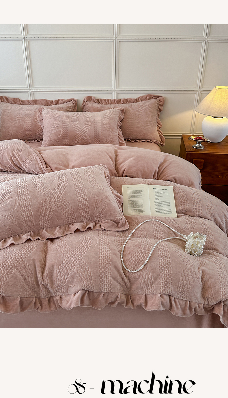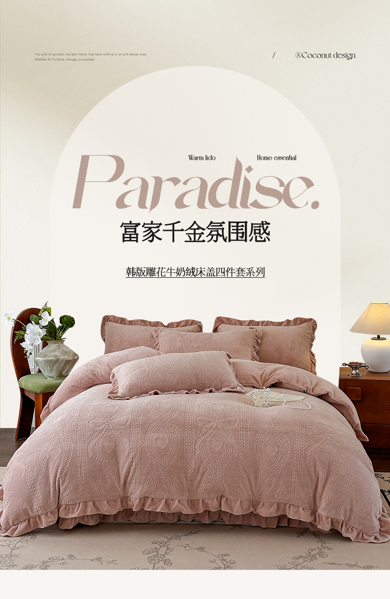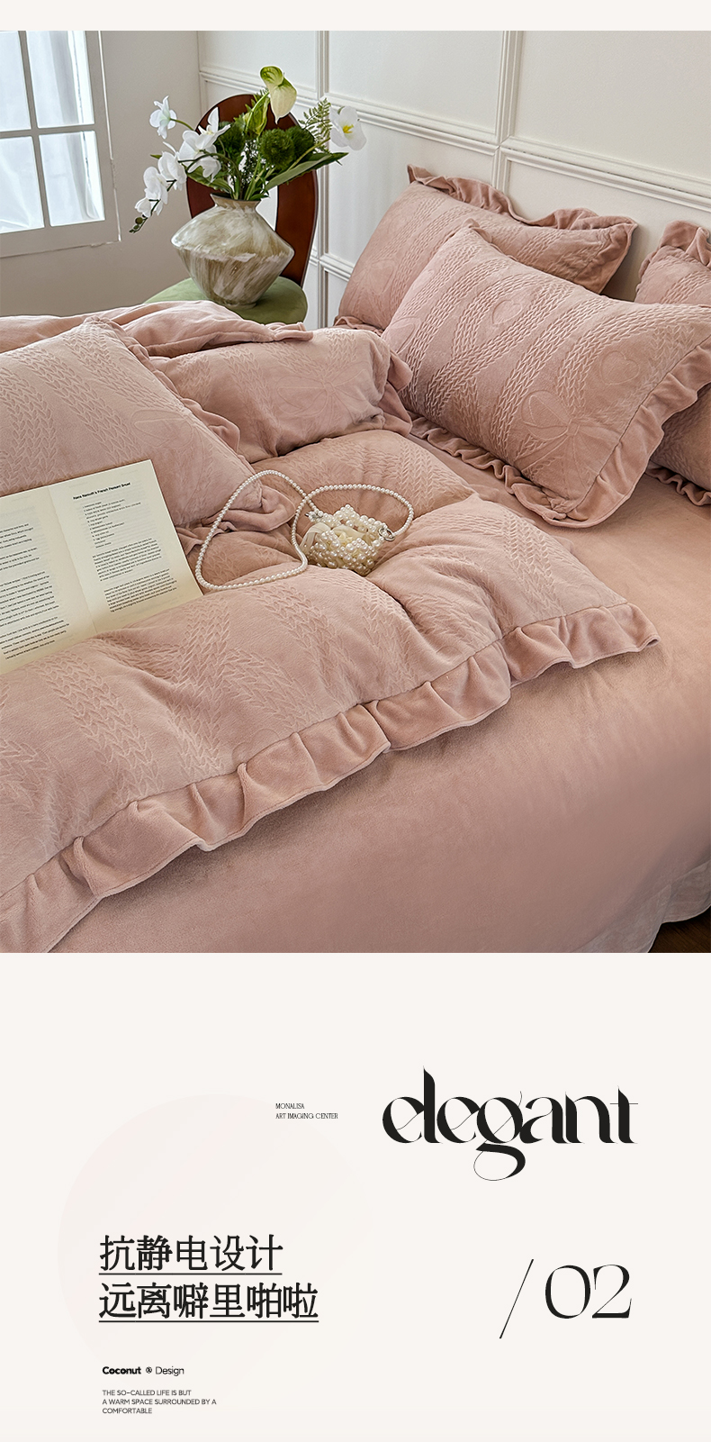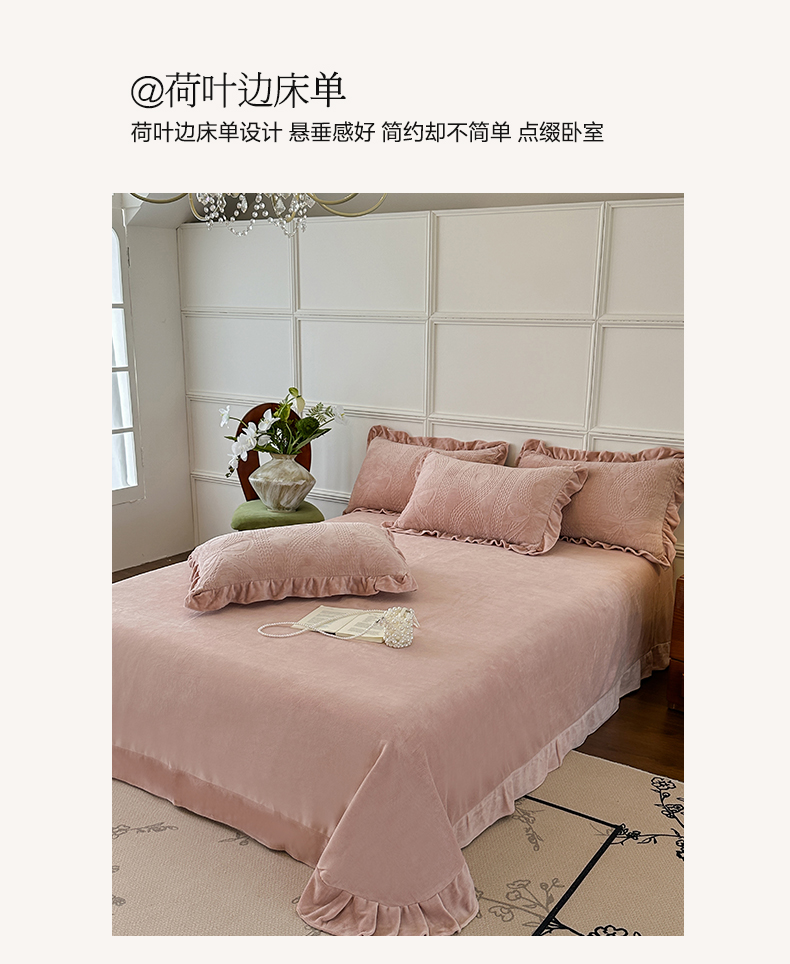 当前位置: 91家纺网 > 商品网购 > 床品套件 > 四件套 > 牛奶绒四件套 > 野合家纺 2024新款法式A类雕花牛奶绒韩版公主风四件套床盖款床单款床笠款 麦芮-豆沙