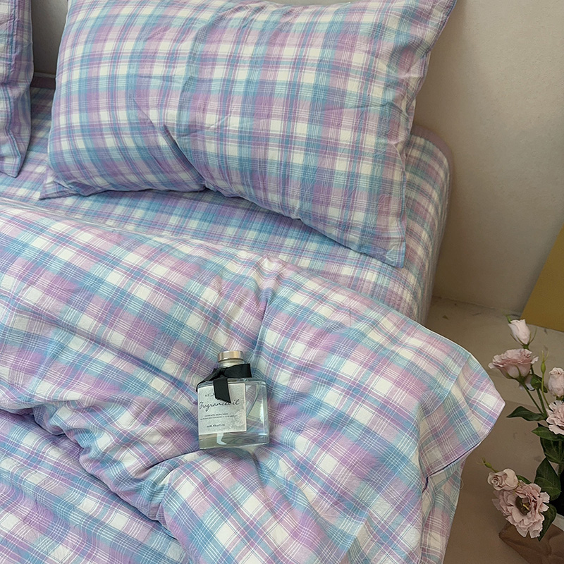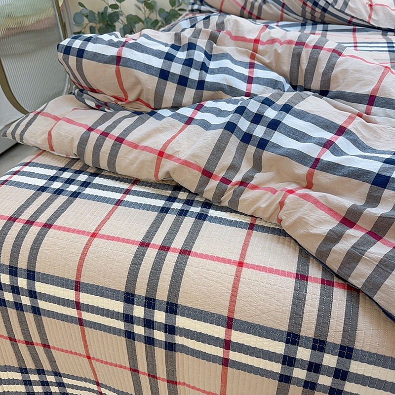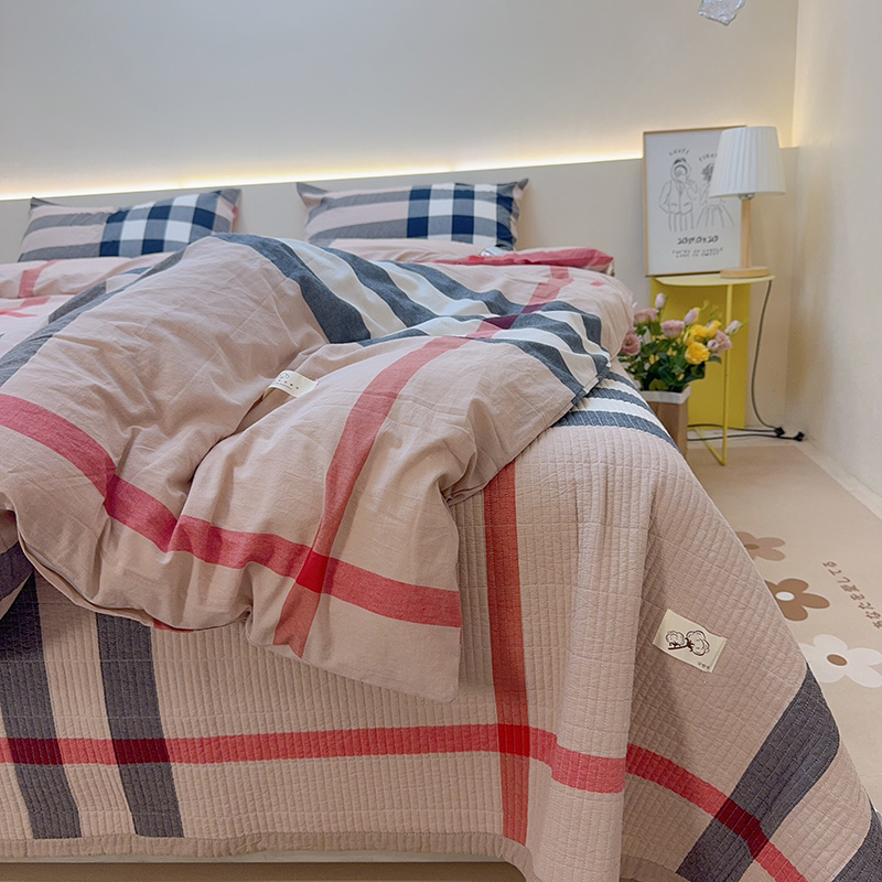 商品名称:2024新款水洗全棉条格床盖四件套 米大格
