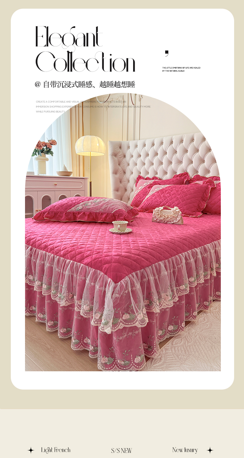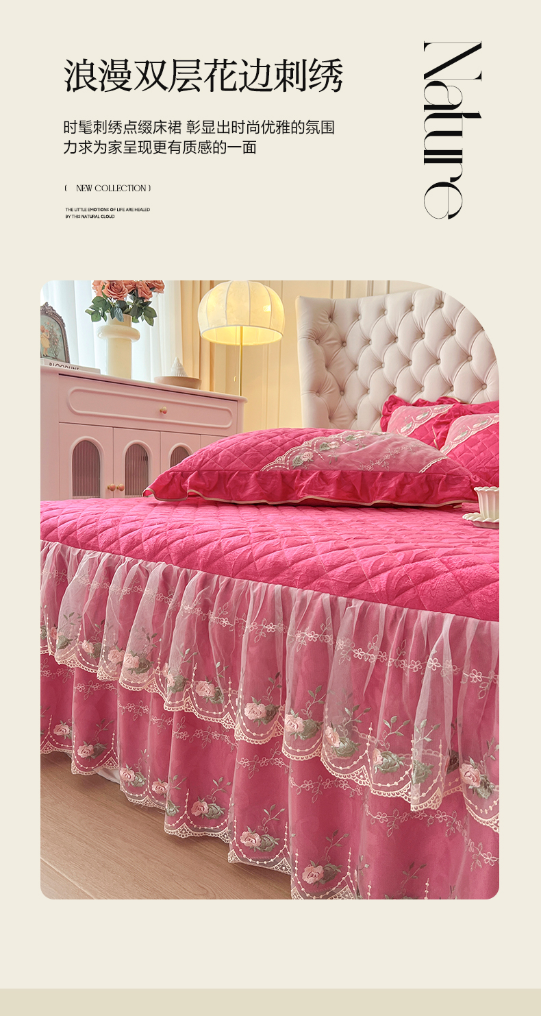 (总)网红馆(ck家纺) 2025新款高克重牛奶绒单床裙 床裙单件卡妮娜系列,卡妮娜-粉色,卡妮娜-灰色,卡妮娜-卡其,卡妮娜-绿色,卡妮娜-米色