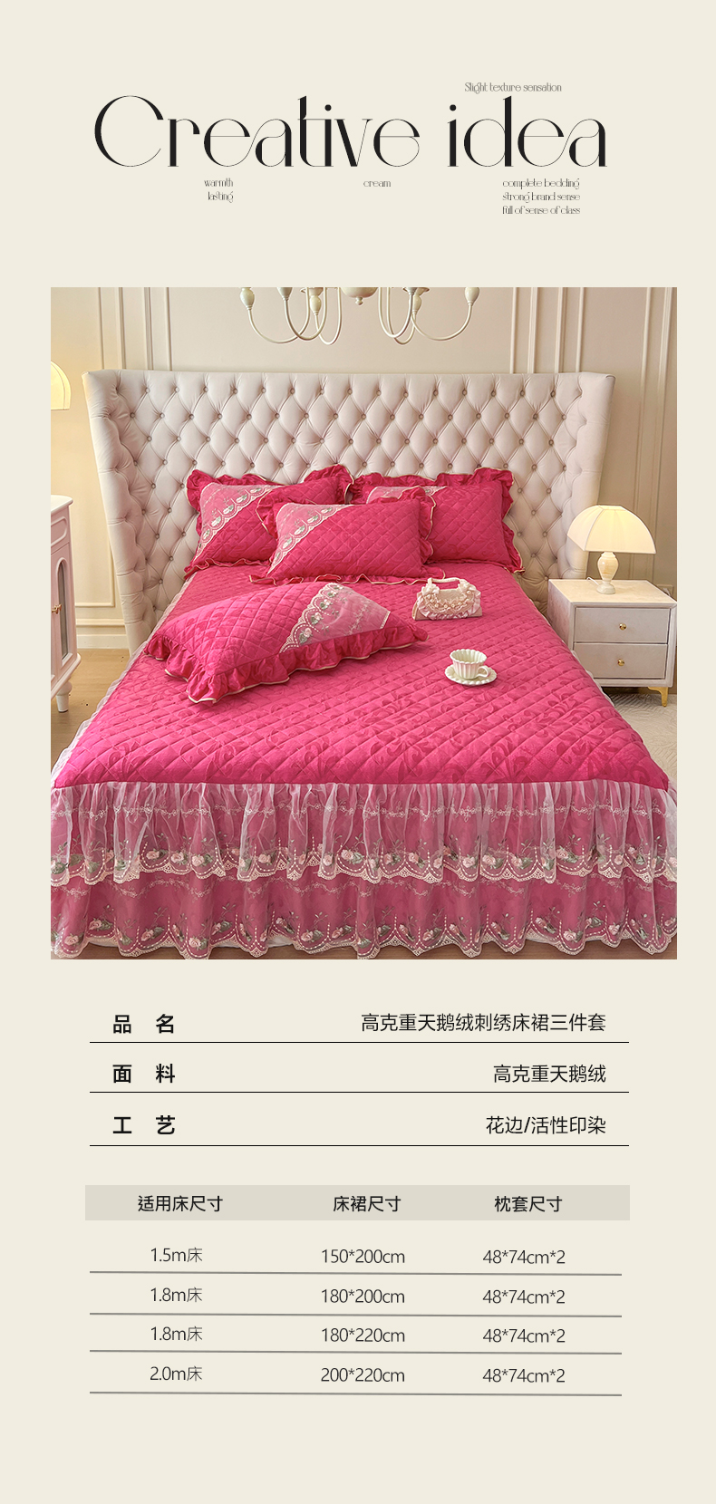 商品名称:网红馆(ck家纺) 2025新款高克重天鹅绒刺绣床裙三件套-花语秘境 花语秘境-浆果红