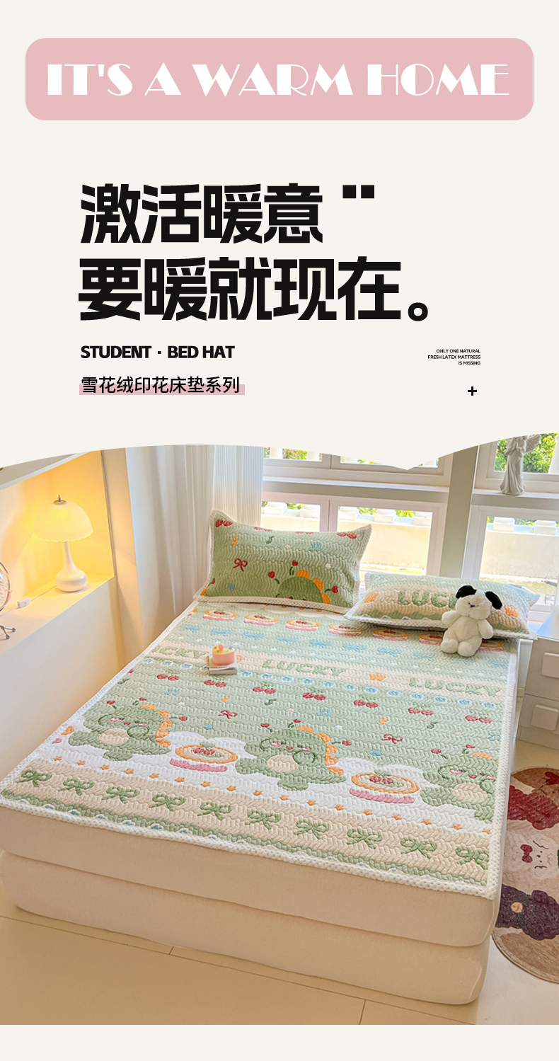 当前位置: 91家纺网 > 商品网购 > 床垫/床褥 > 普通床垫 > 川悦生活 2024新款A类印花雪花绒床垫加厚绒保暖床护垫 床垫甜系龙龙
