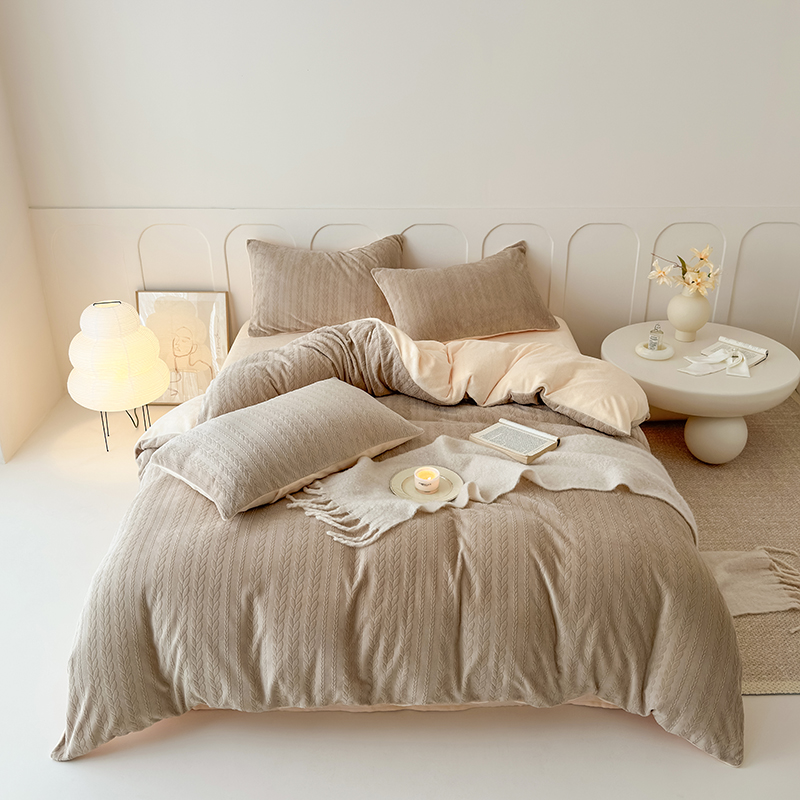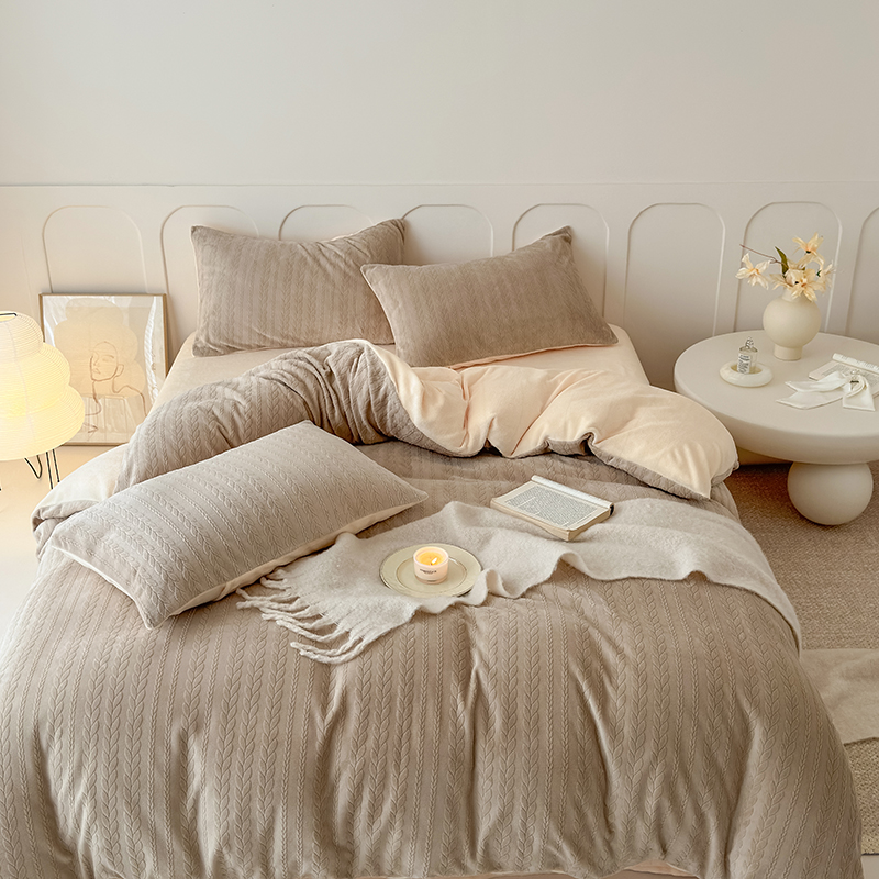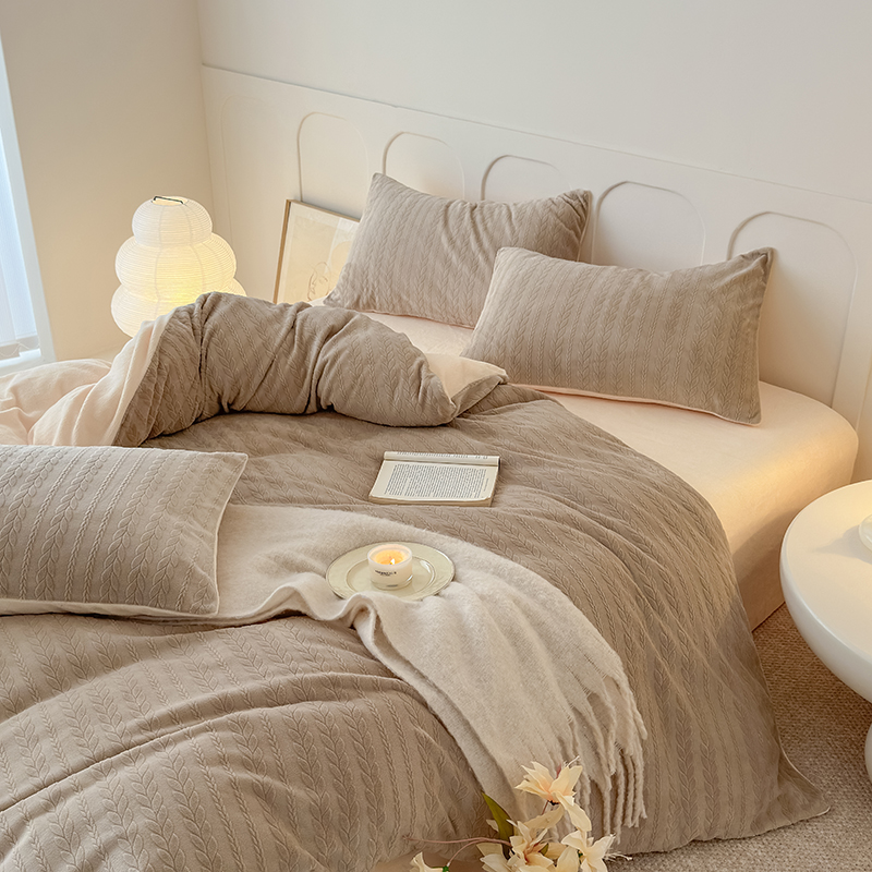 2024新款雕花绒牛奶绒四件套--麦穗系列 麦穗奶白咖