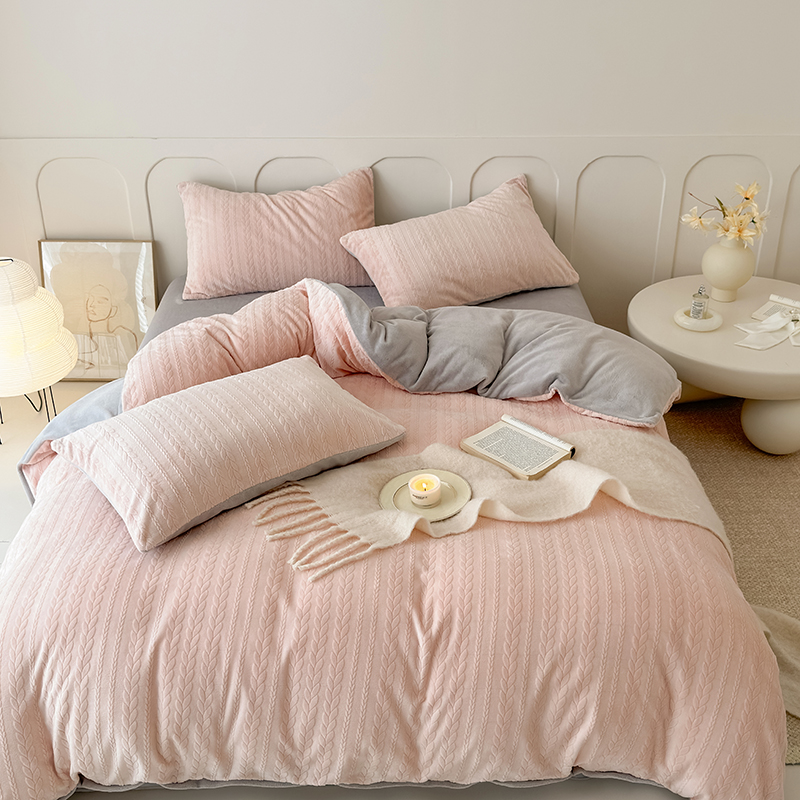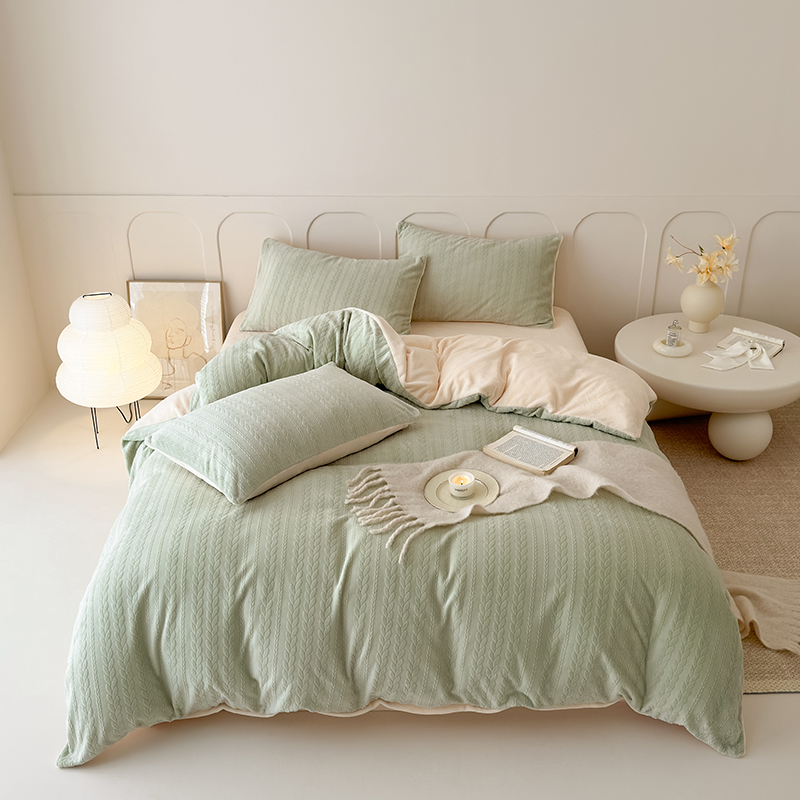 (总)潘朵拉 2023新款直播爆款撞色牛奶绒提花四件套,梦境-粉灰,梦境-蓝黄,梦境-米咖,山茶花-绿粉,山茶花-奶绿