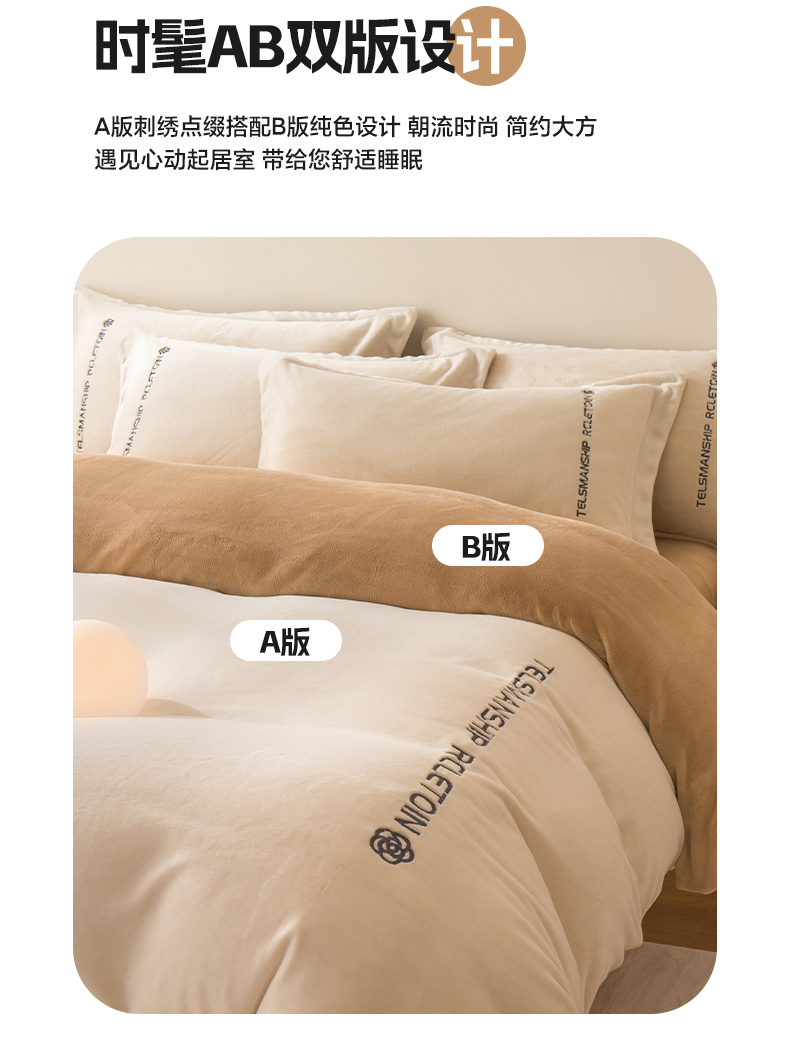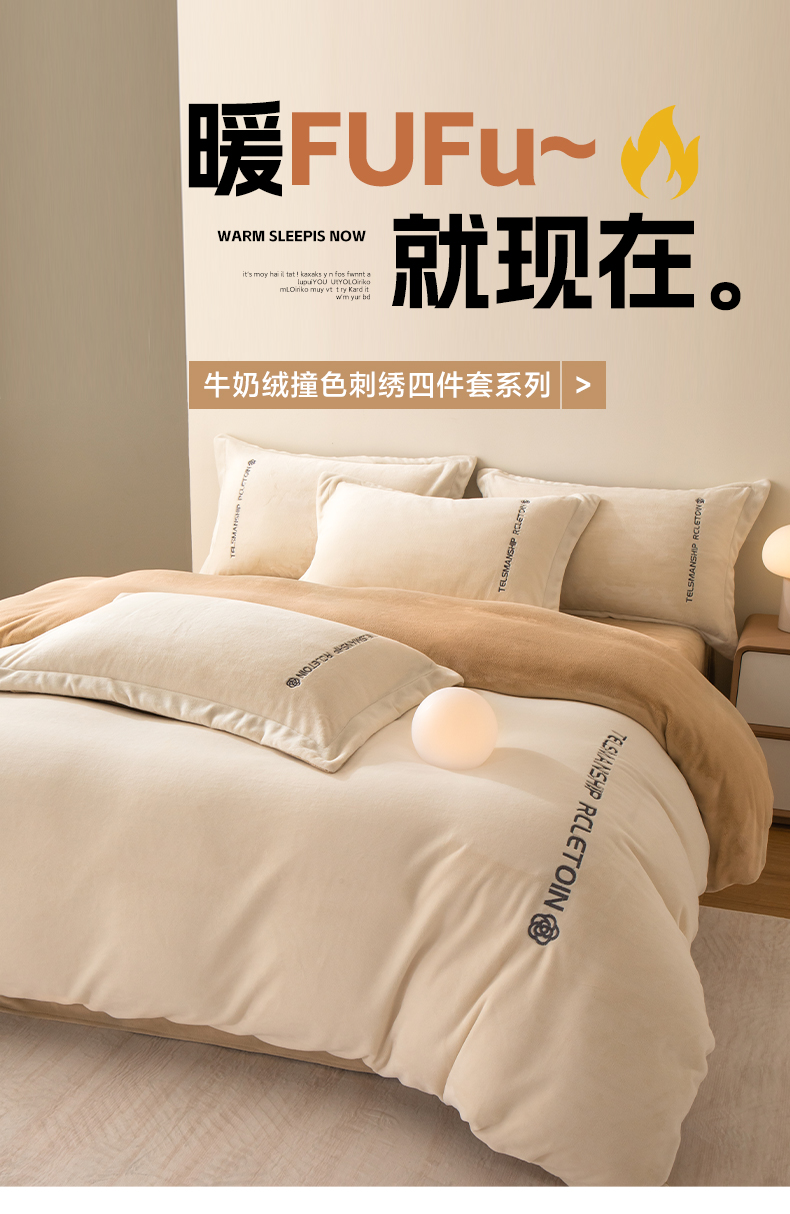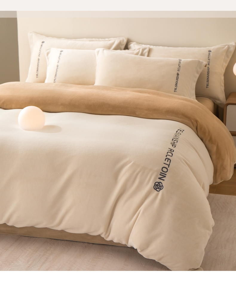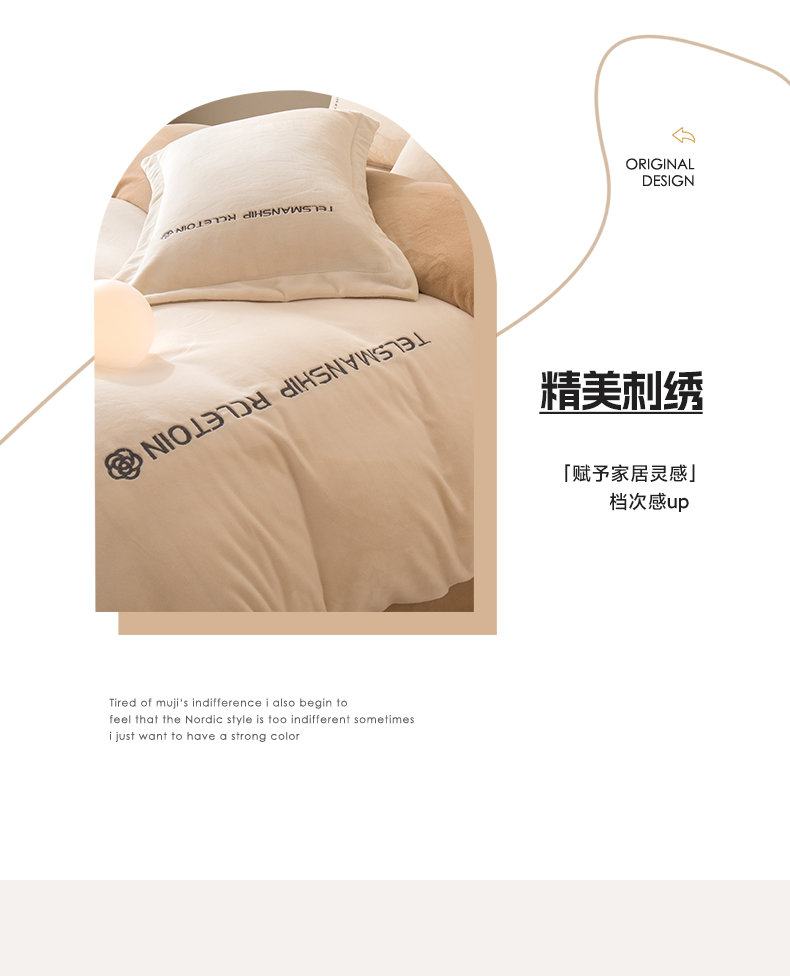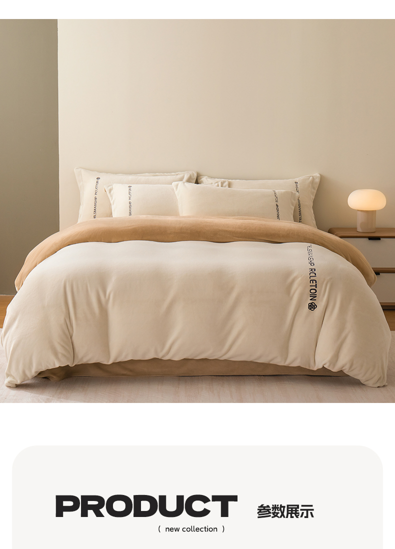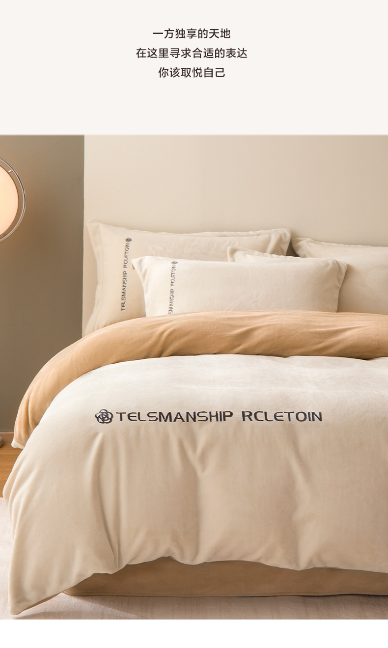 商品名称:花愿(原花纪) 2025新款牛奶绒撞色刺绣四件套—泽西 奶昔白+香槟