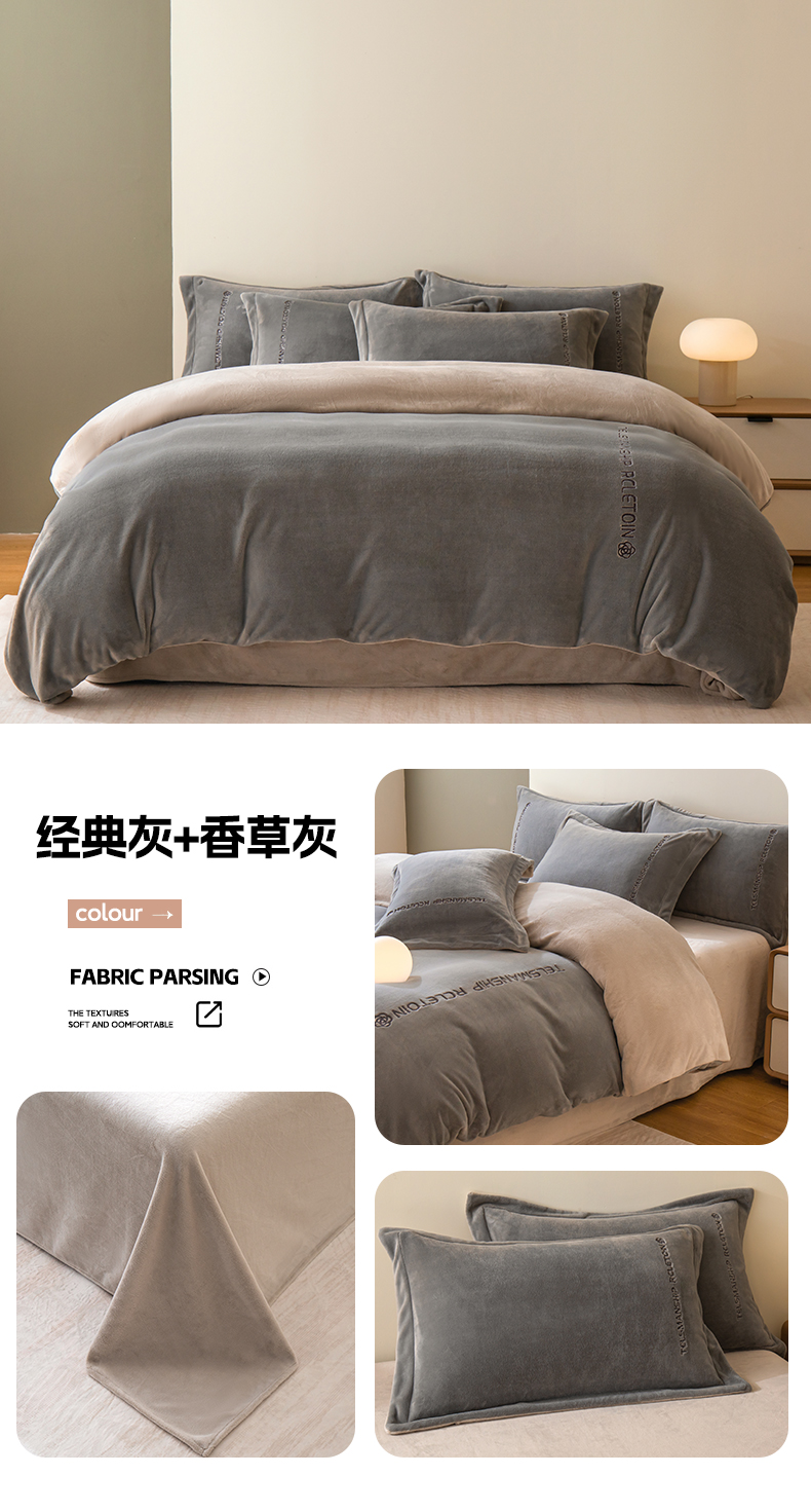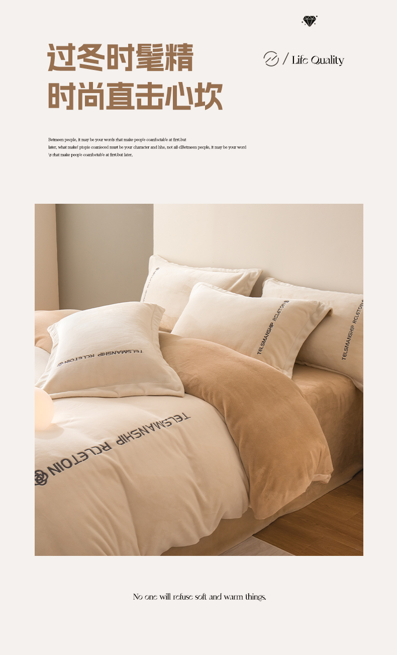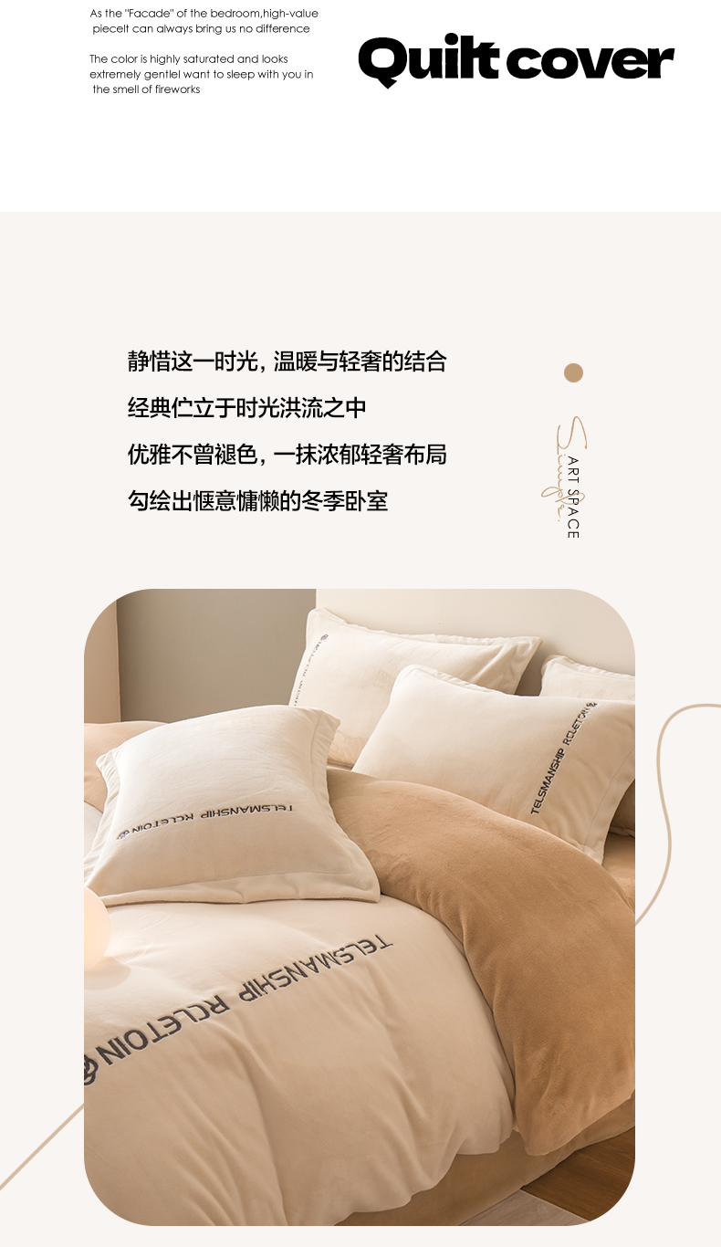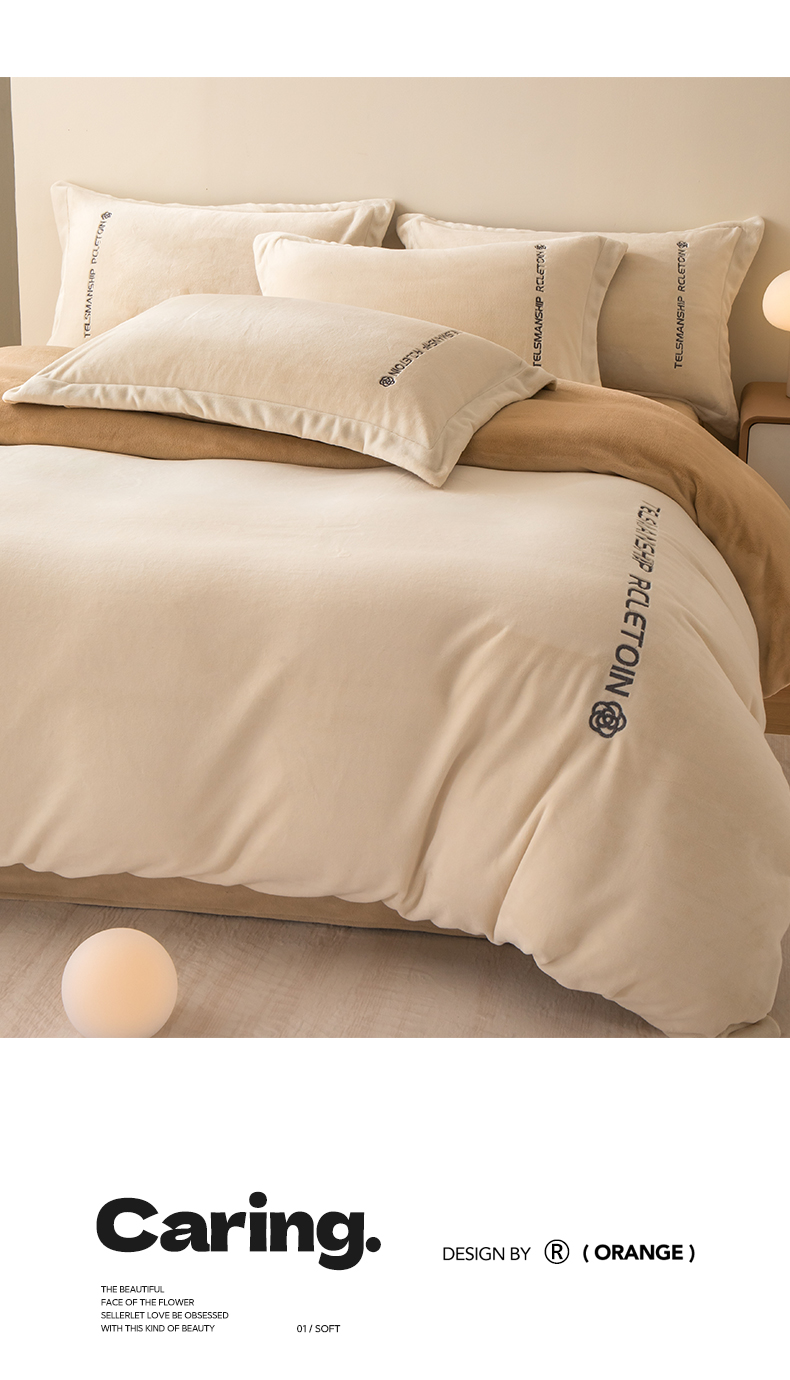 商品名称:花愿(原花纪) 2025新款牛奶绒撞色刺绣四件套—泽西 奶昔白+香槟