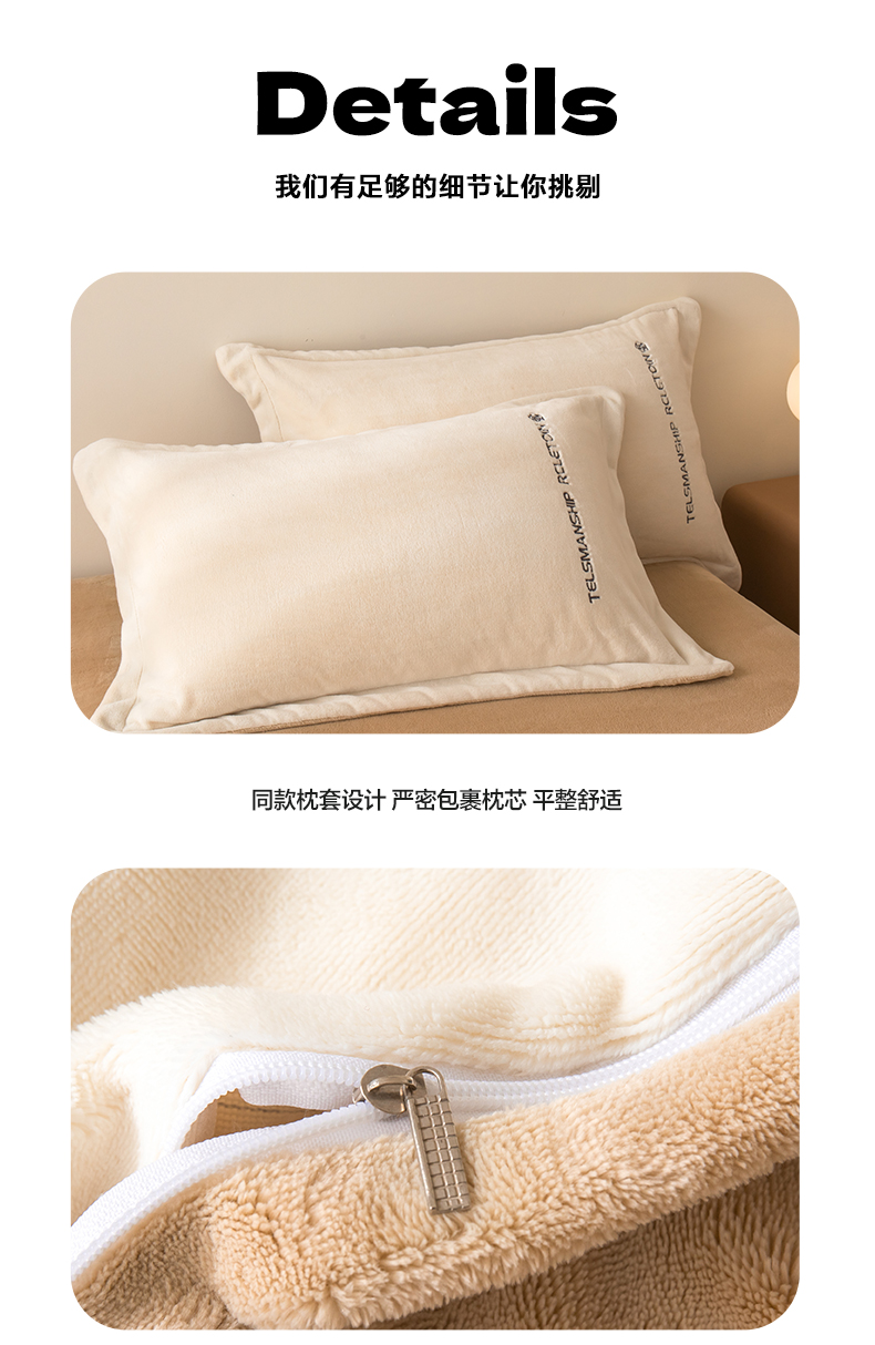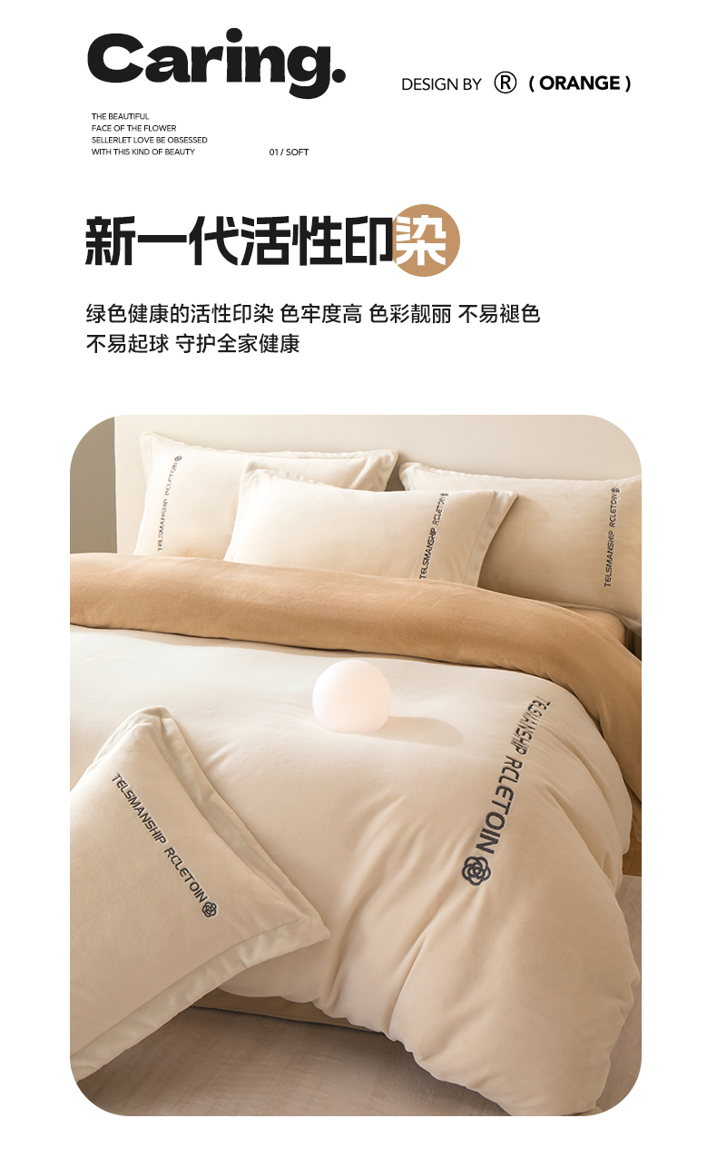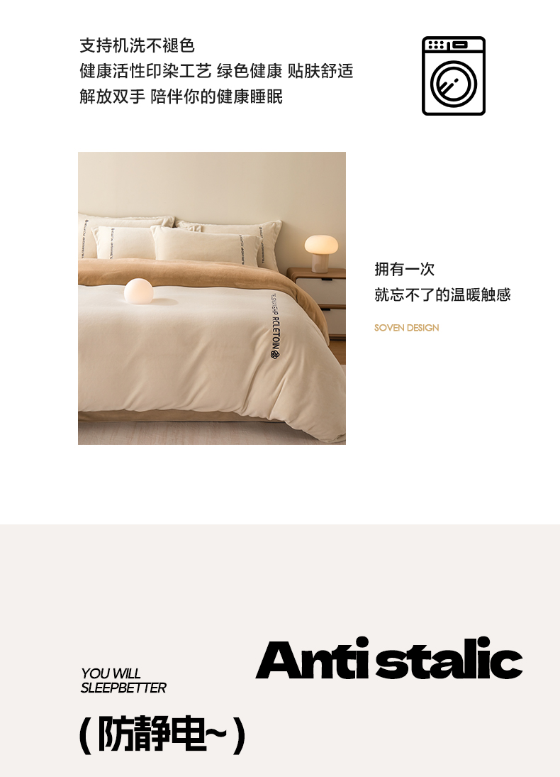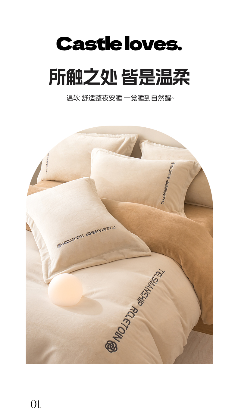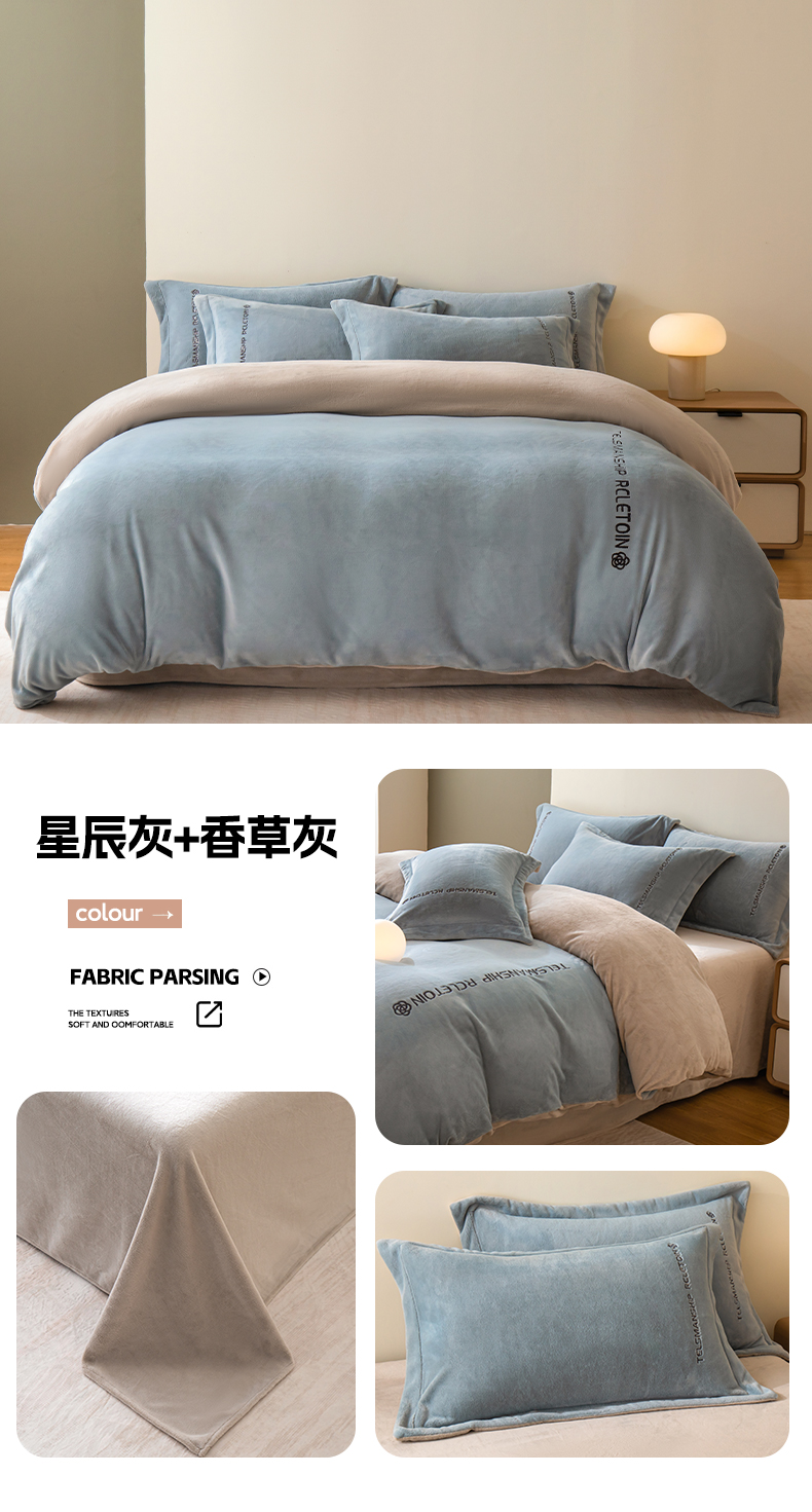 商品名称:花愿(原花纪) 2025新款牛奶绒撞色刺绣四件套—泽西 奶昔白+香槟