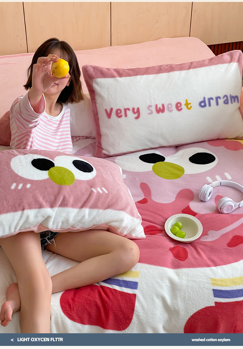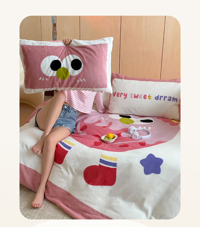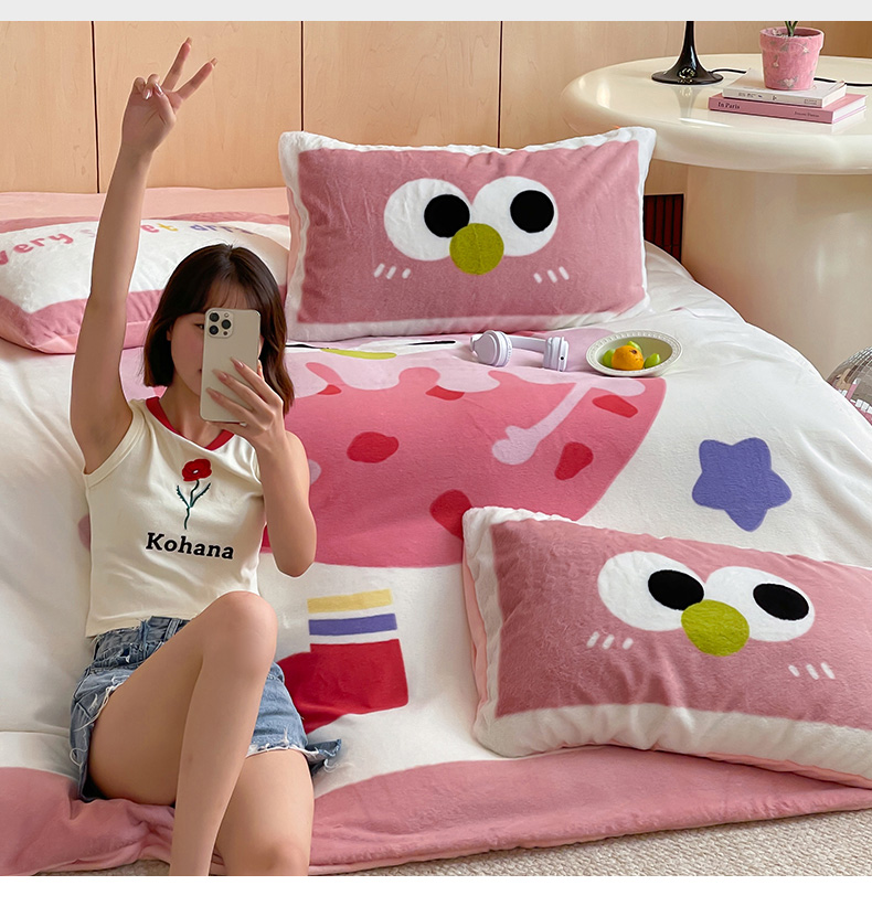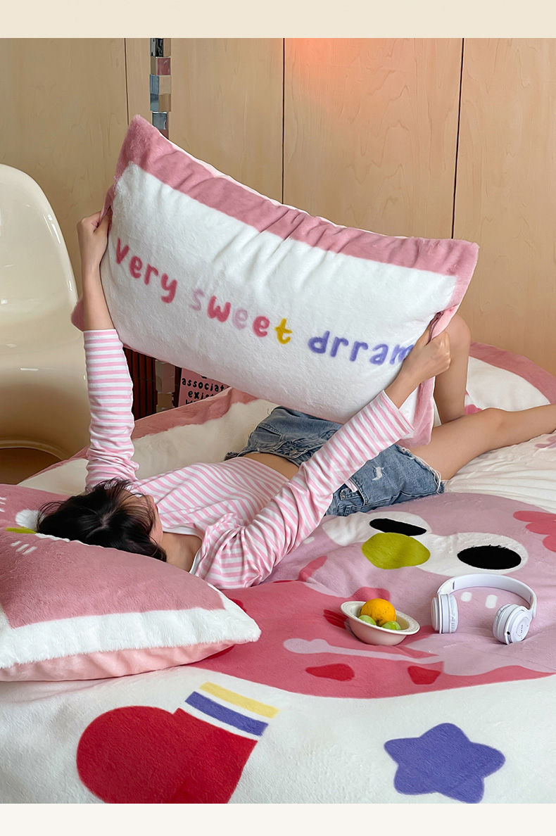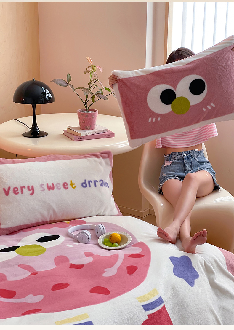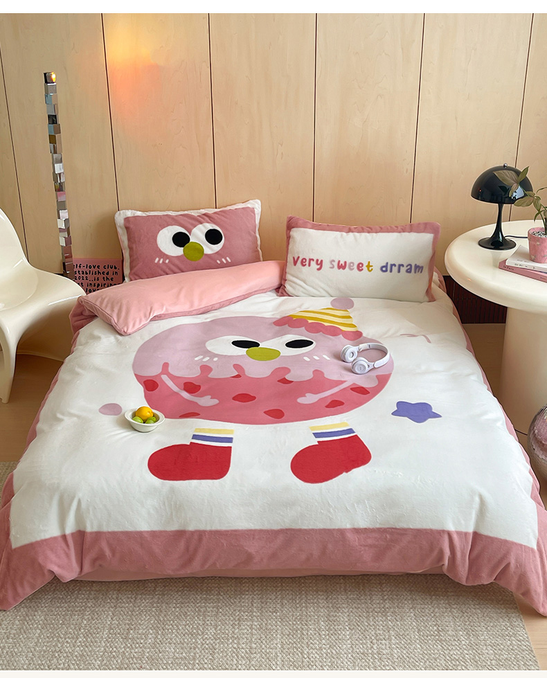 安哆啦家纺 2024新款兔毛绒大版卡通牛奶绒兔兔绒印花四件套 美味乳酪