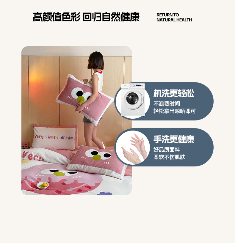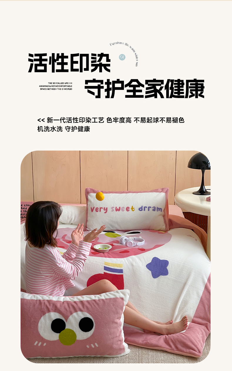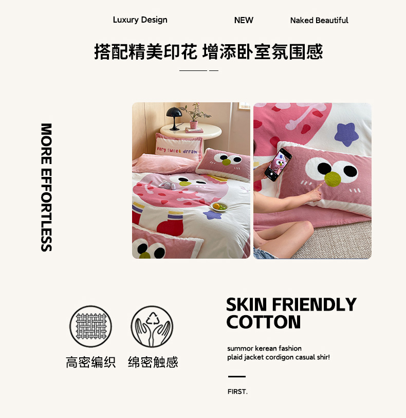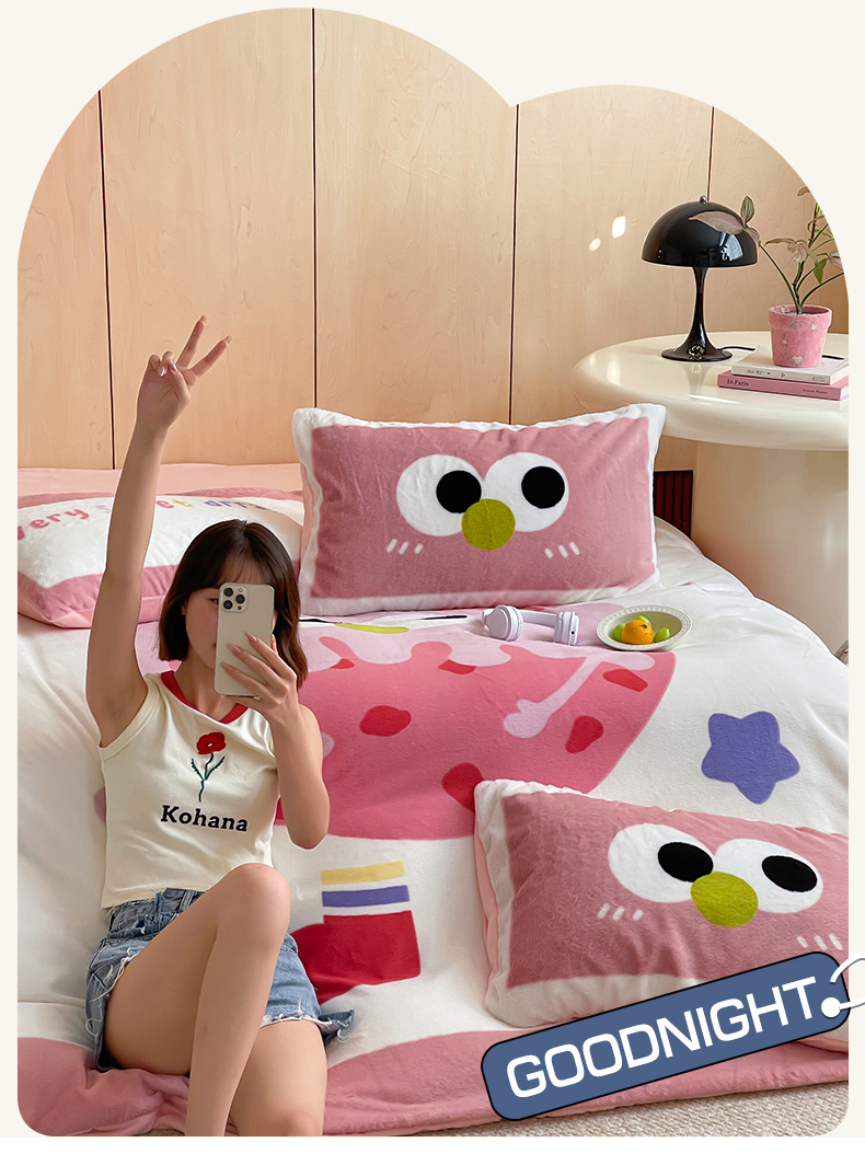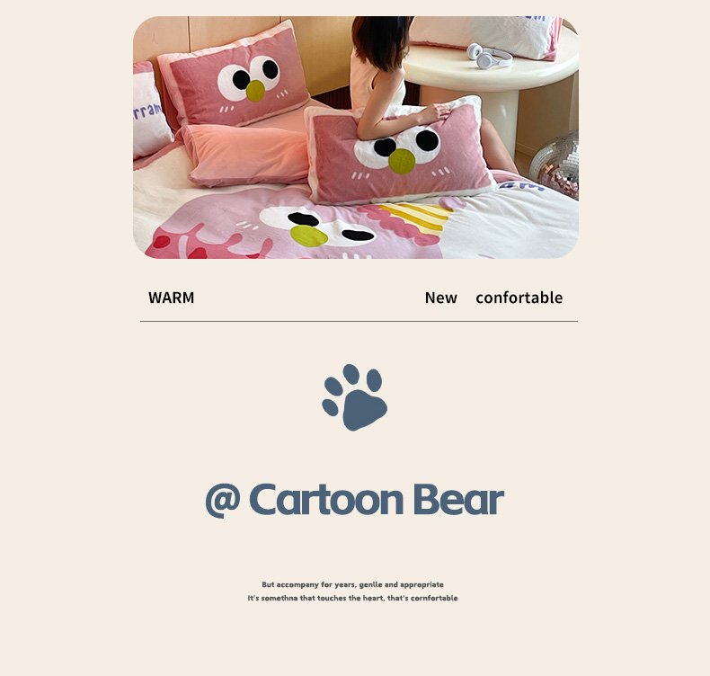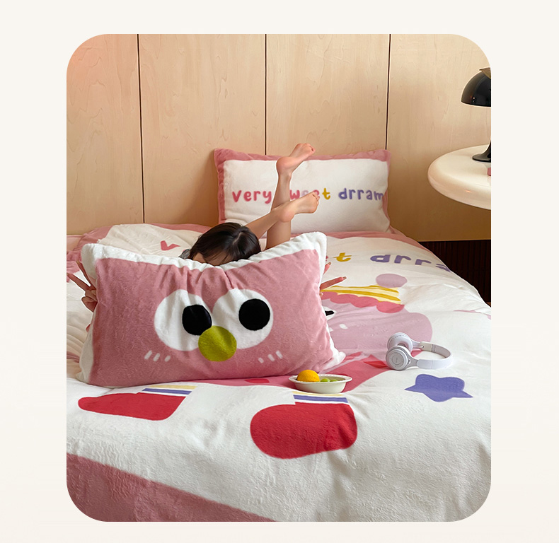 安哆啦家纺 2024新款兔毛绒大版卡通牛奶绒兔兔绒印花四件套 美味乳酪