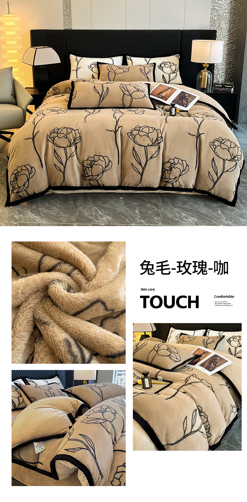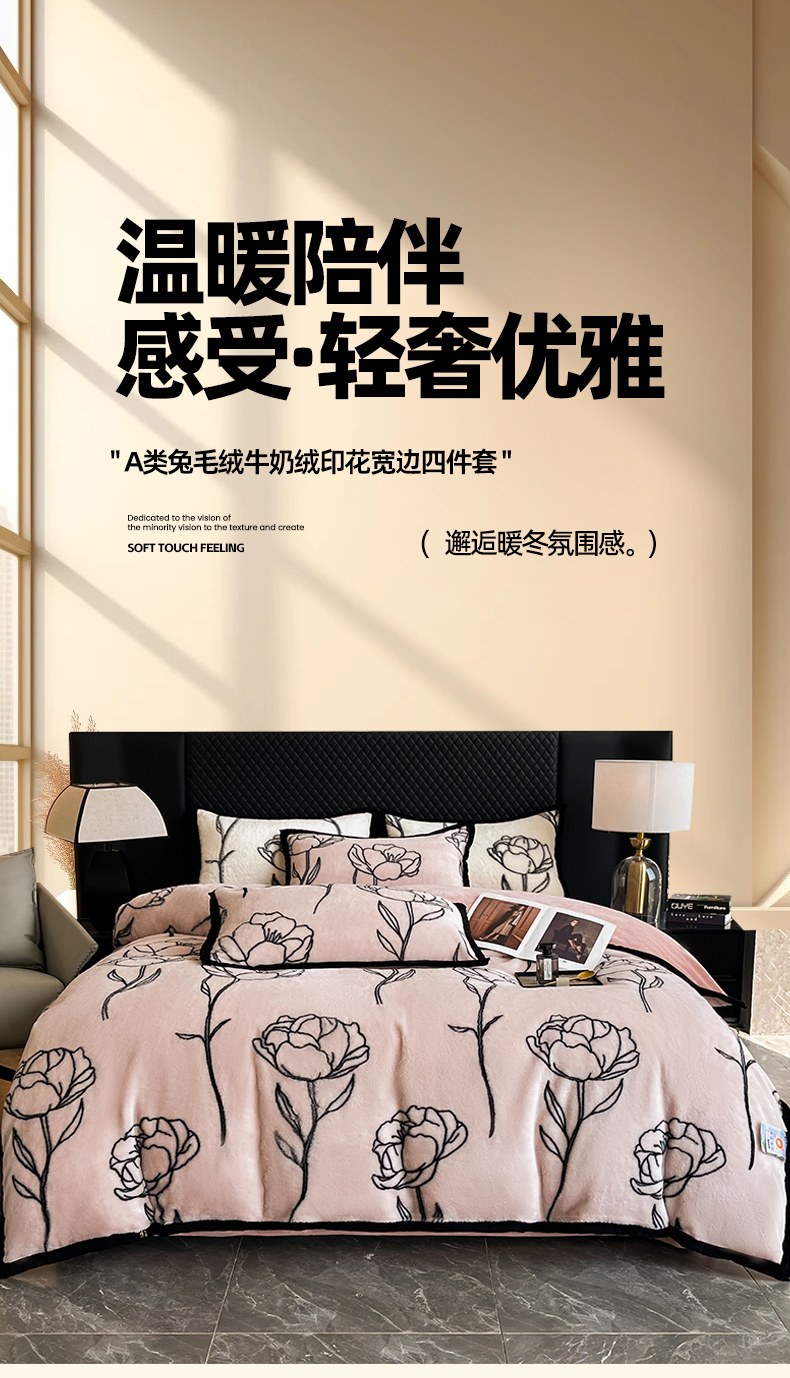(总)慕尚家纺 2025新款宽包边高克重兔兔绒牛奶绒加厚保暖法式系列四件套