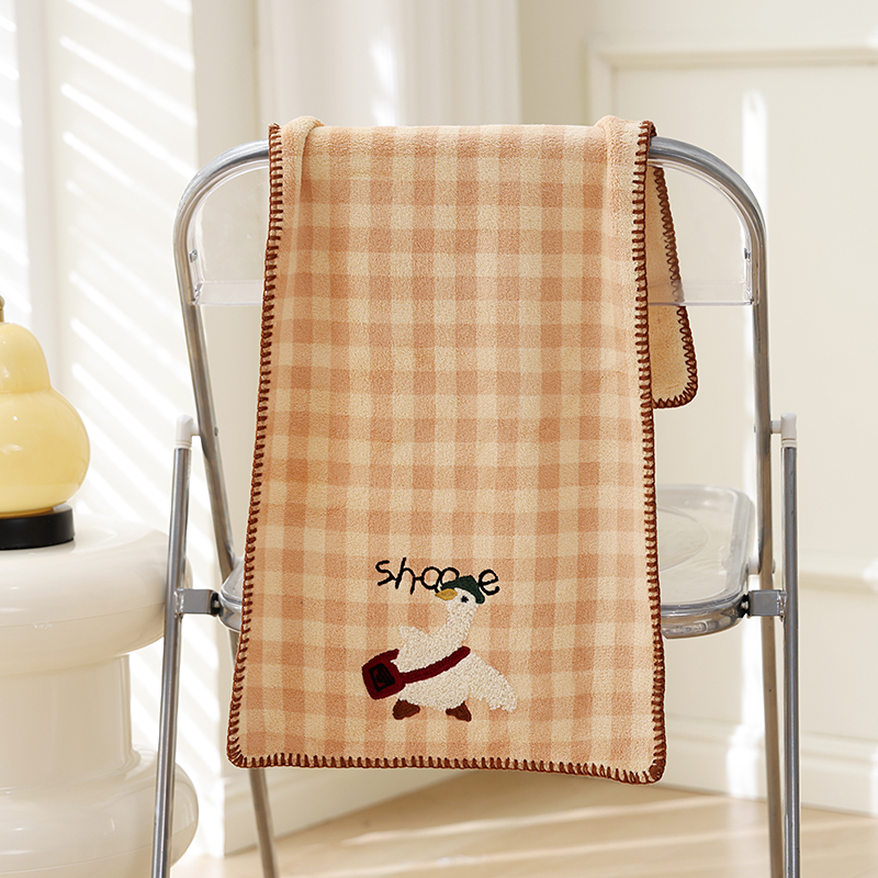 当前位置: 91家纺网 > 商品网购 > 居家日用 > 毛巾/浴巾/浴袍 > 浴巾 > 朴尔家纺-毛巾被 2024新款毛巾绣勾边小格快乐鸭AB版珊瑚绒速吸速干毛巾浴巾 格子快乐鸭-咖毛巾