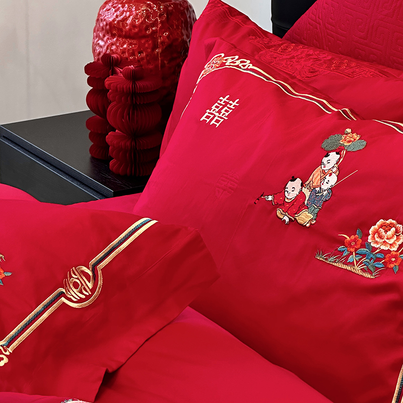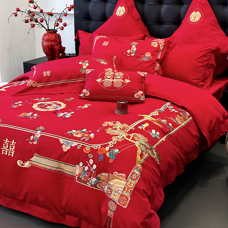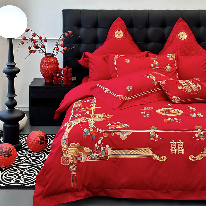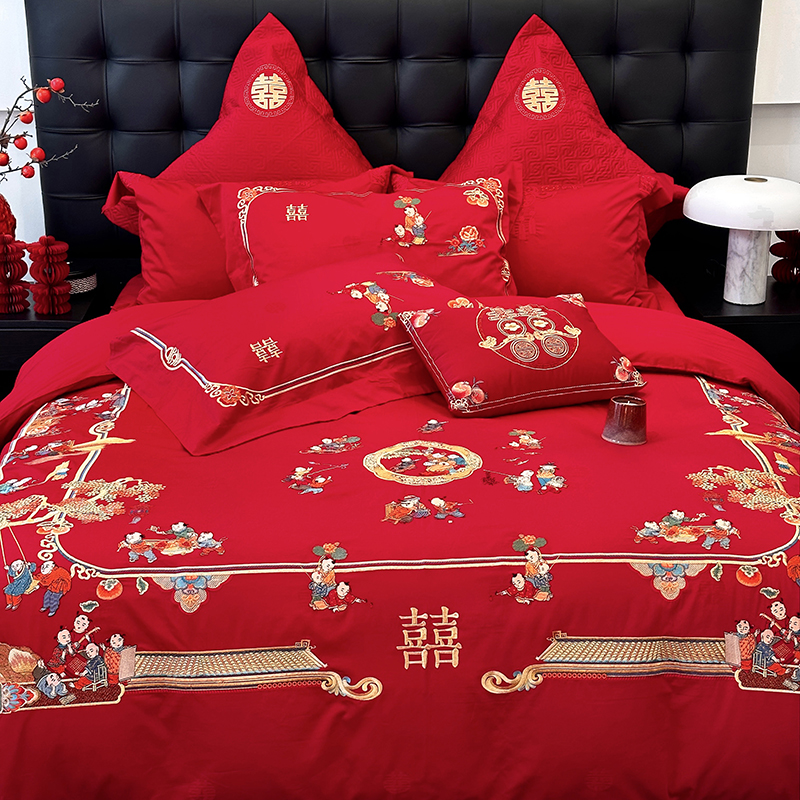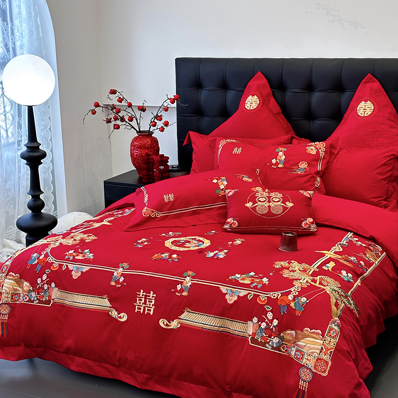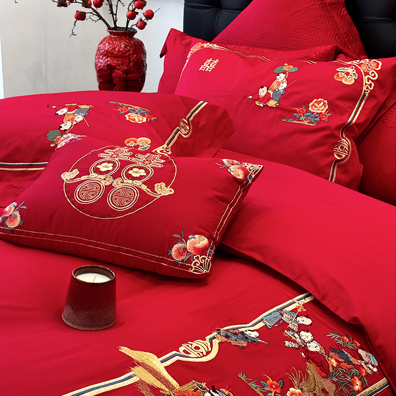 JUICY 橘滋家纺 2024新款100支全棉提花高端婚庆《囍》系列四件套 合和之喜