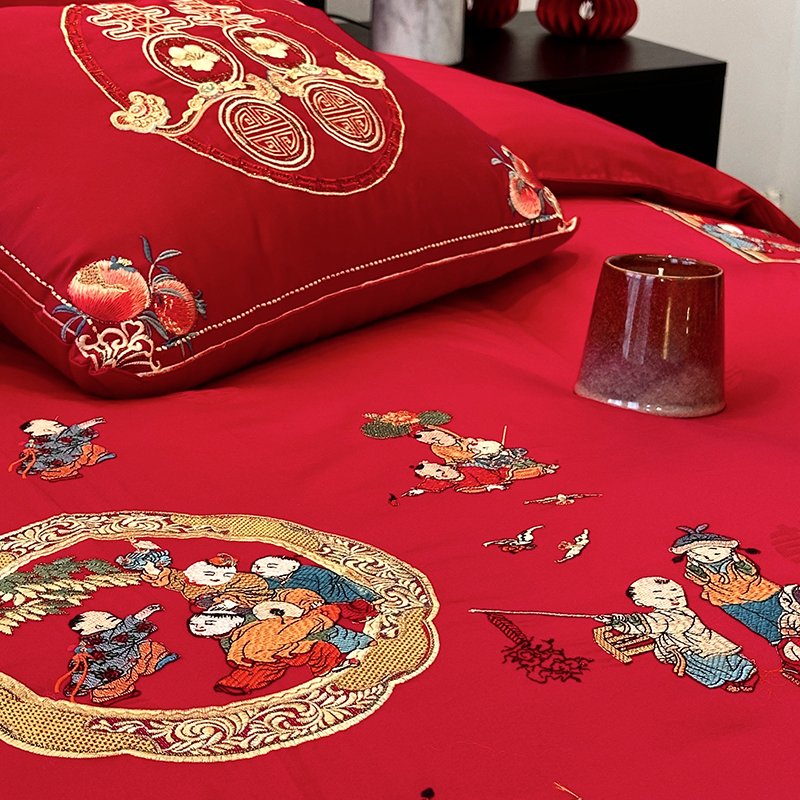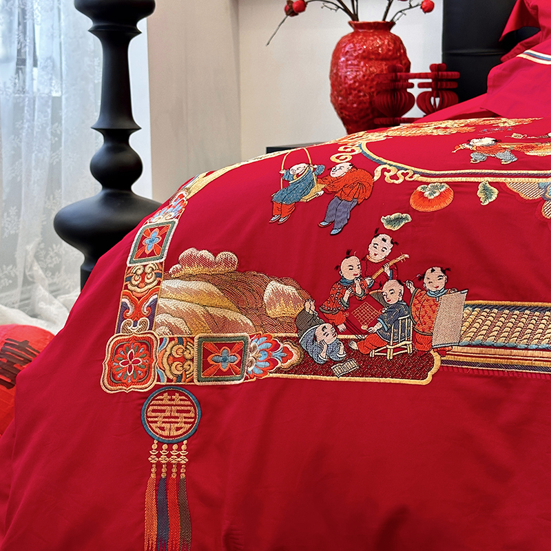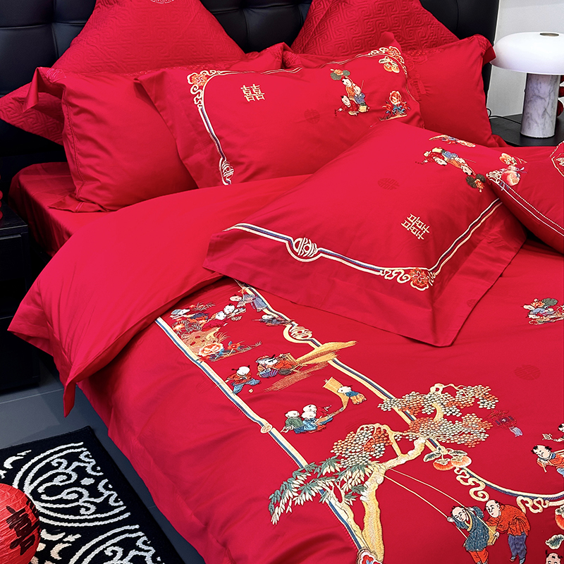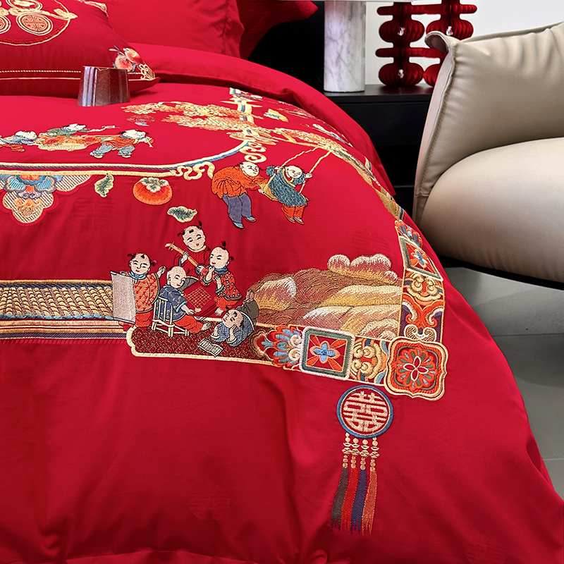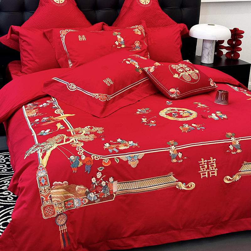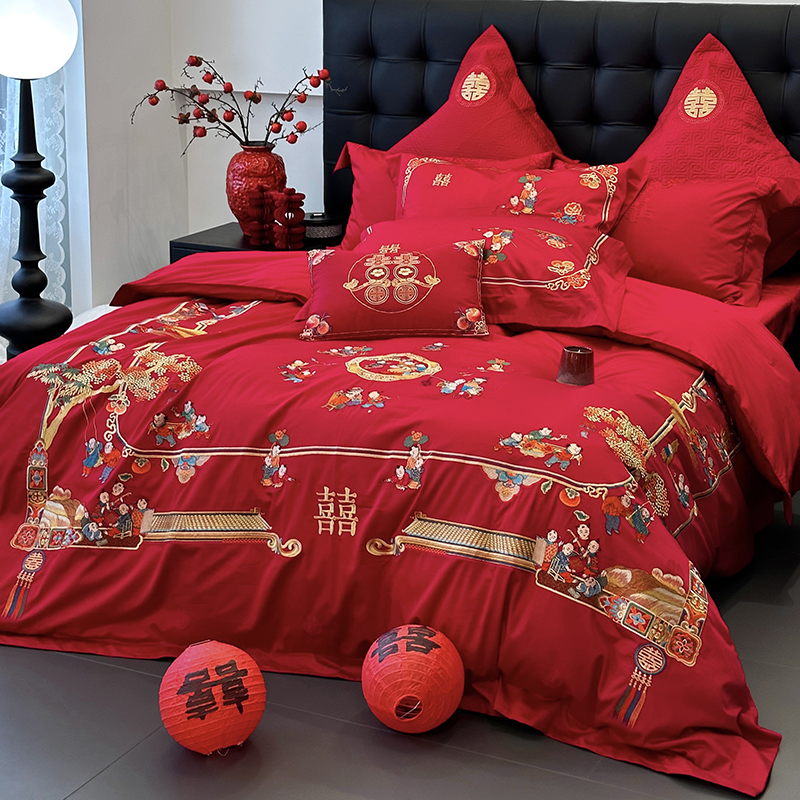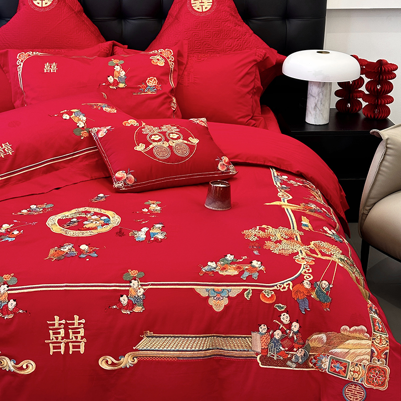 JUICY 橘滋家纺 2024新款100支全棉提花高端婚庆《囍》系列四件套 合和之喜