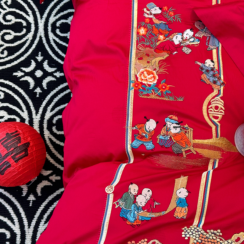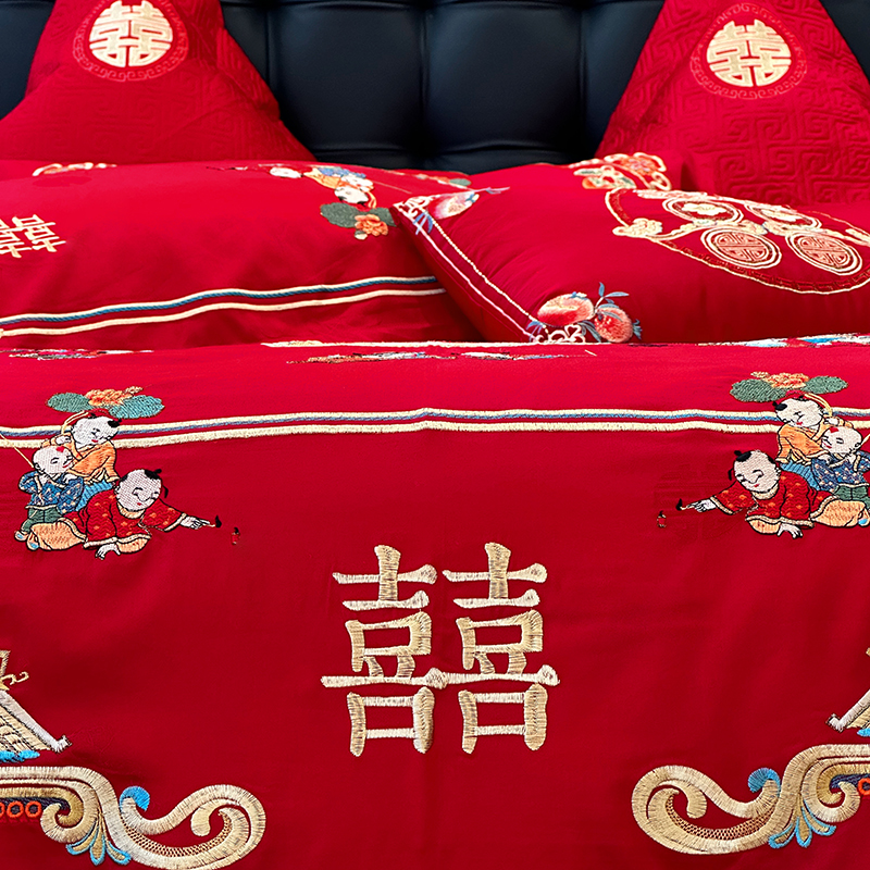 商品名称:JUICY 橘滋家纺 2024新款100支全棉提花高端婚庆《囍》系列四件套 合和之喜