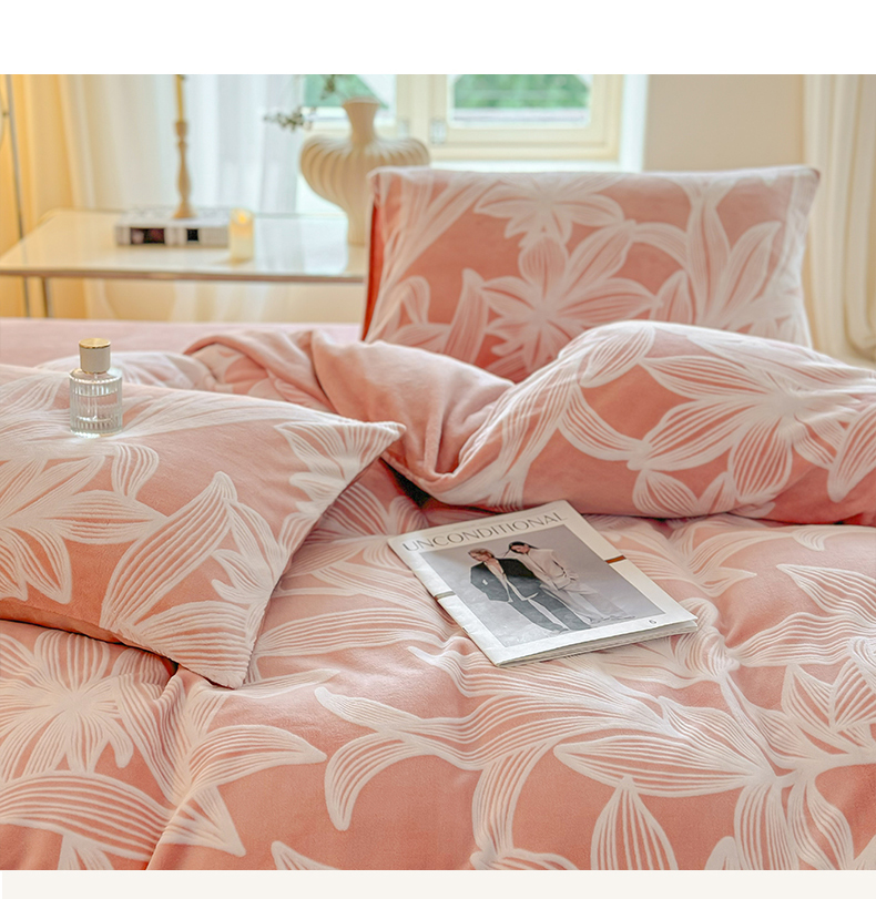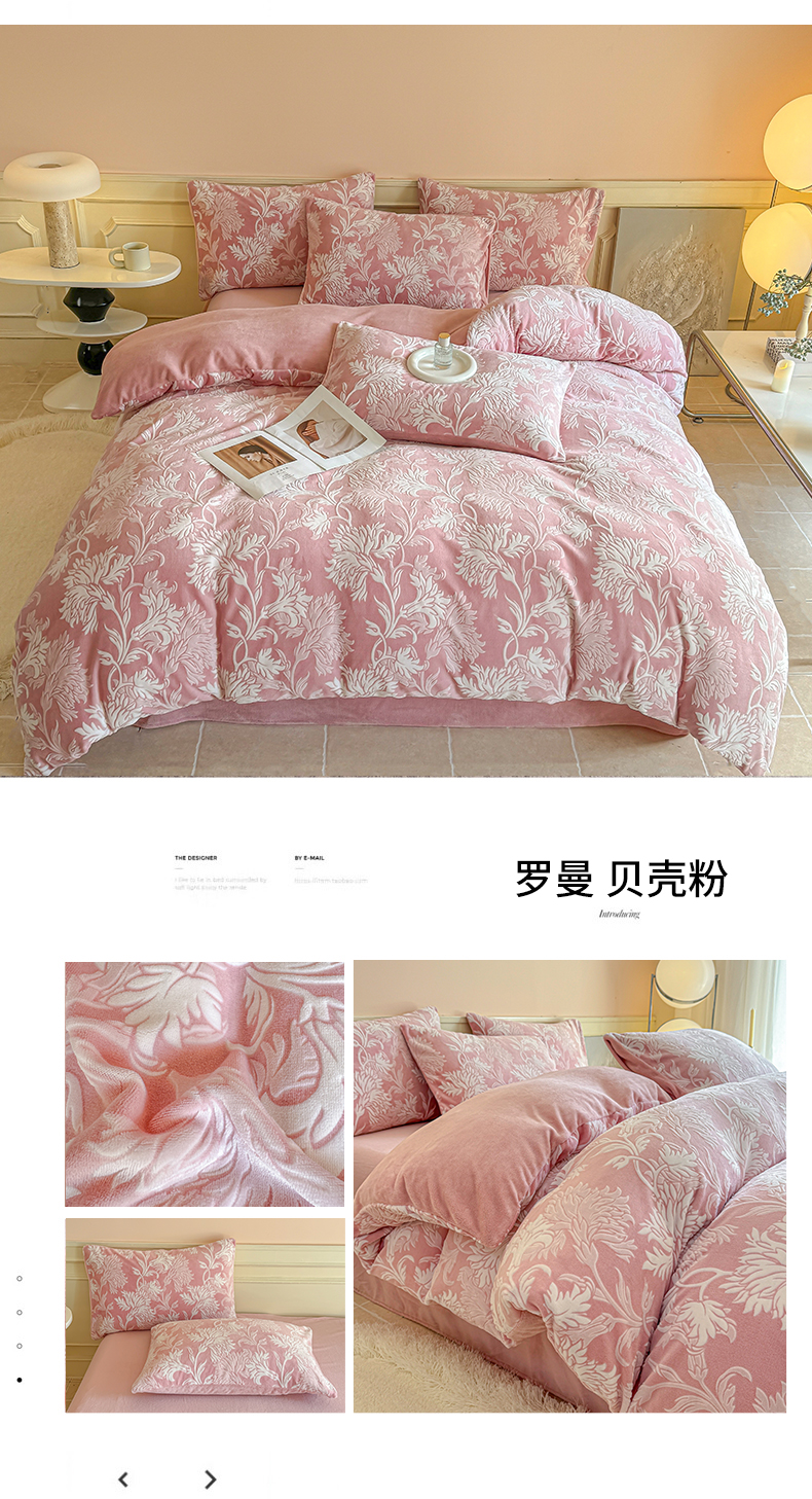(总)大境 2025秋冬新款A类230克牛奶绒雕花烂花绒宝宝绒床笠款床单款四件套,蝶恋花语,花恋,浪漫花香 粉,浪漫花香 绿,叶之恋,郁金香粉,月光森林