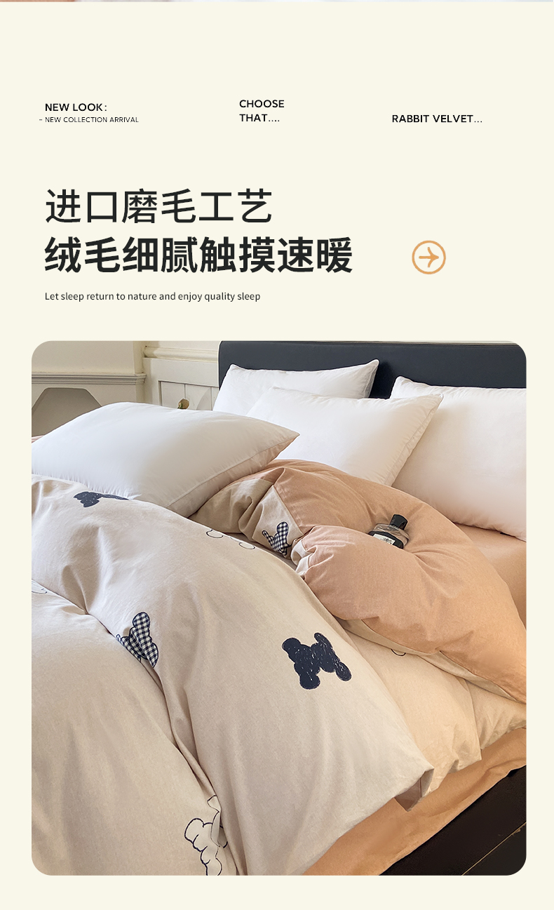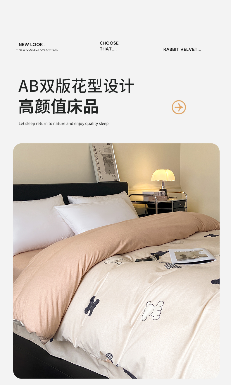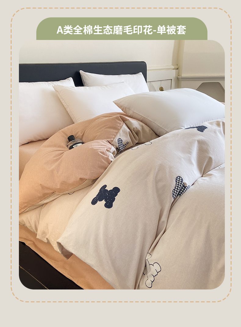 • 91家纺网 家纺一手货源 找家纺 大柏树 2025新款A类全棉磨毛印花单被套 喜饰米
