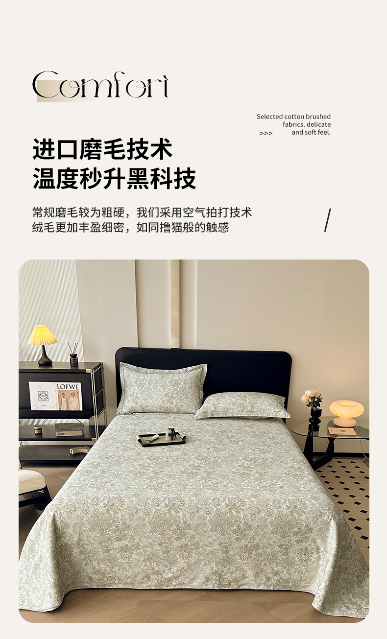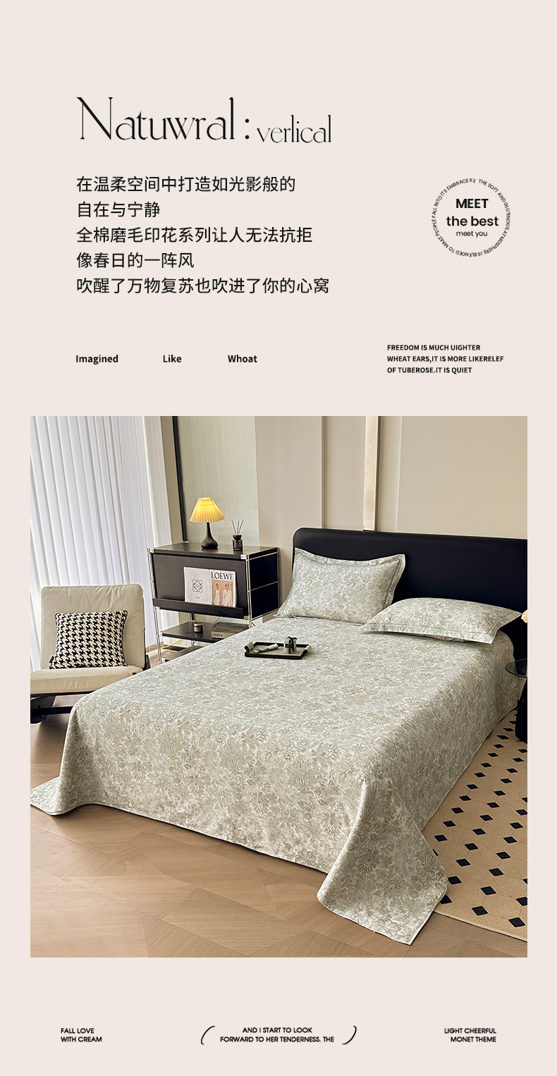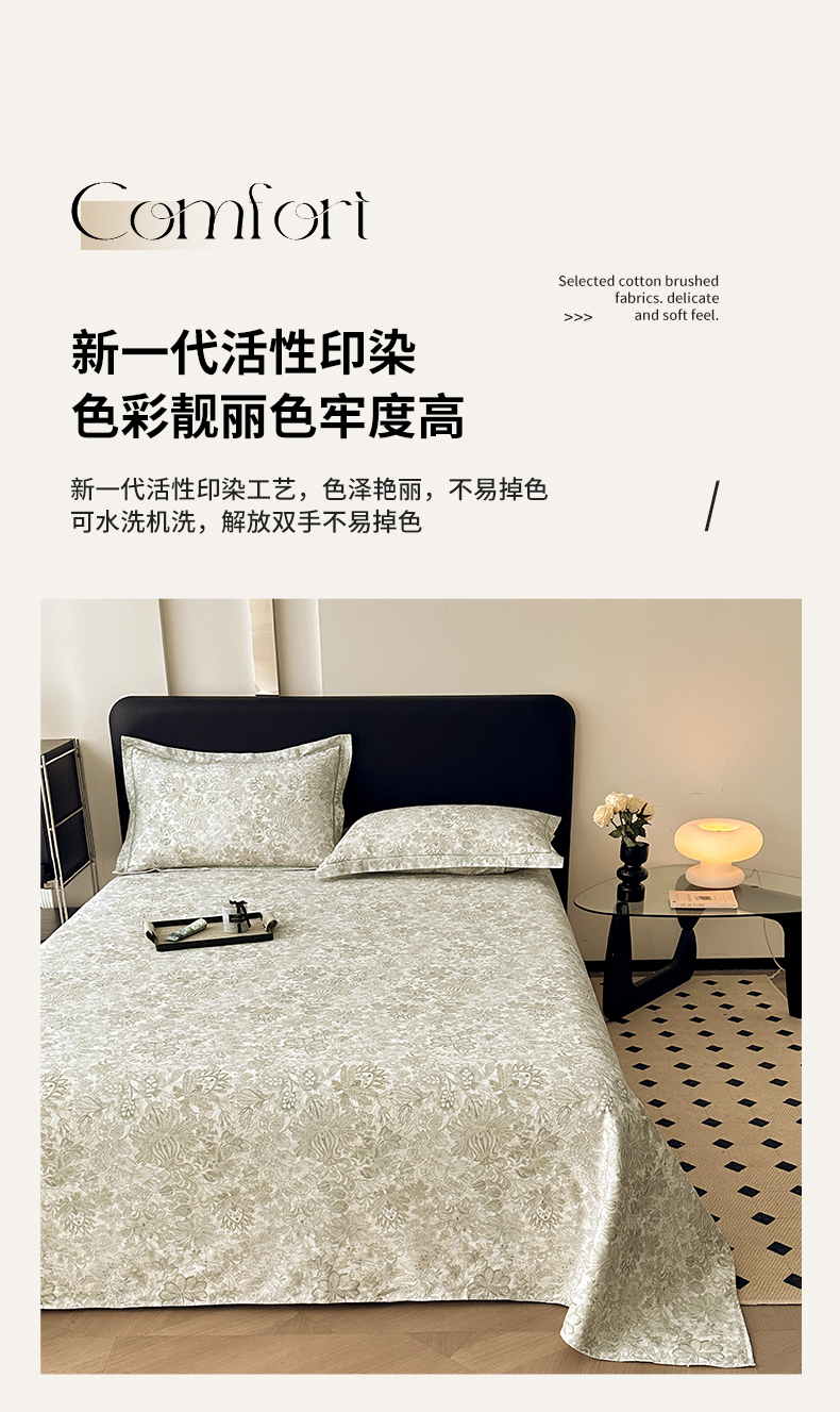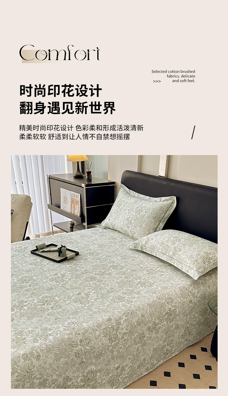 商品名称:大柏树 2025新款A类全棉磨毛印花单床单 莉娅绿