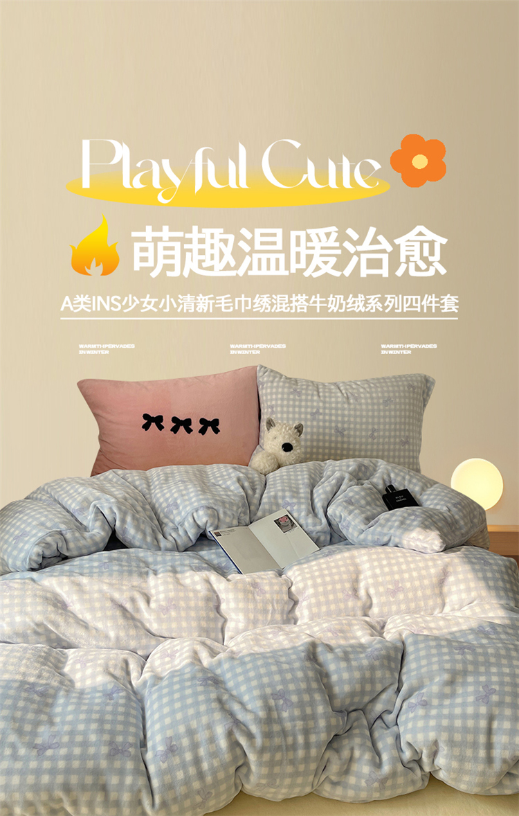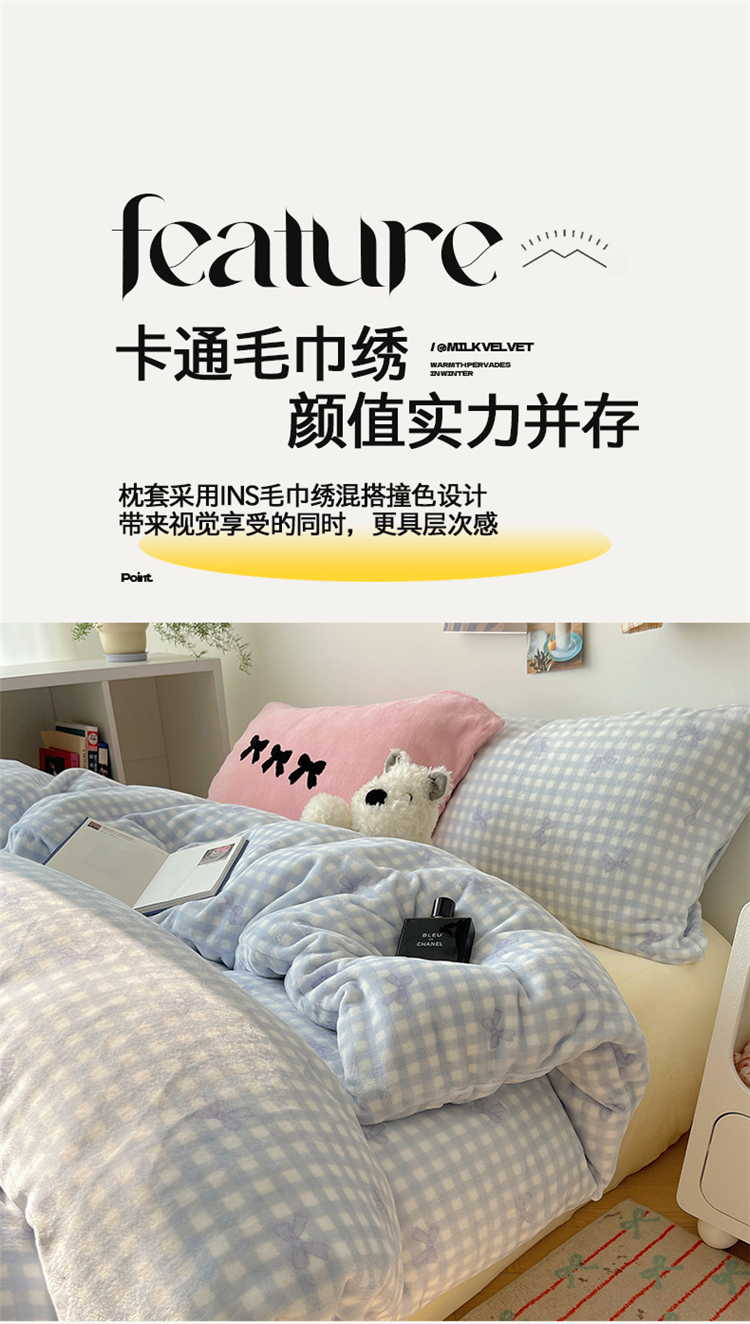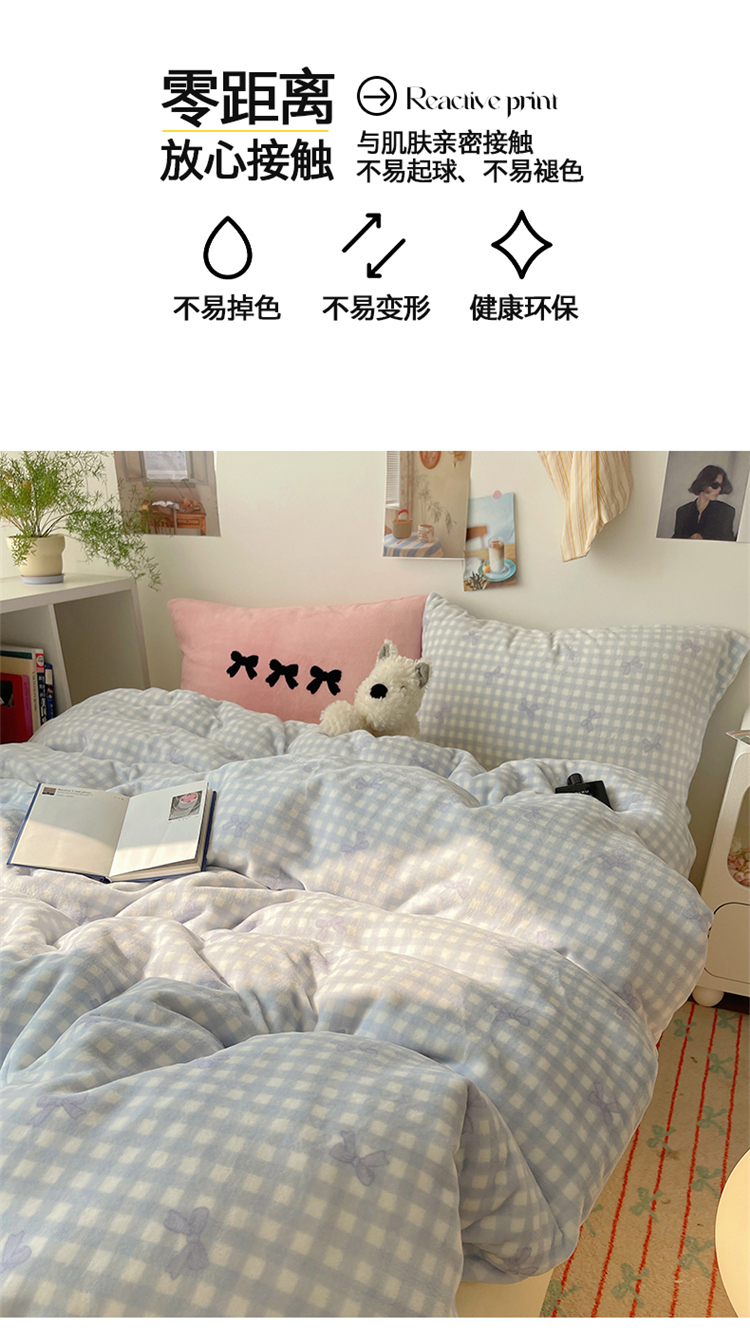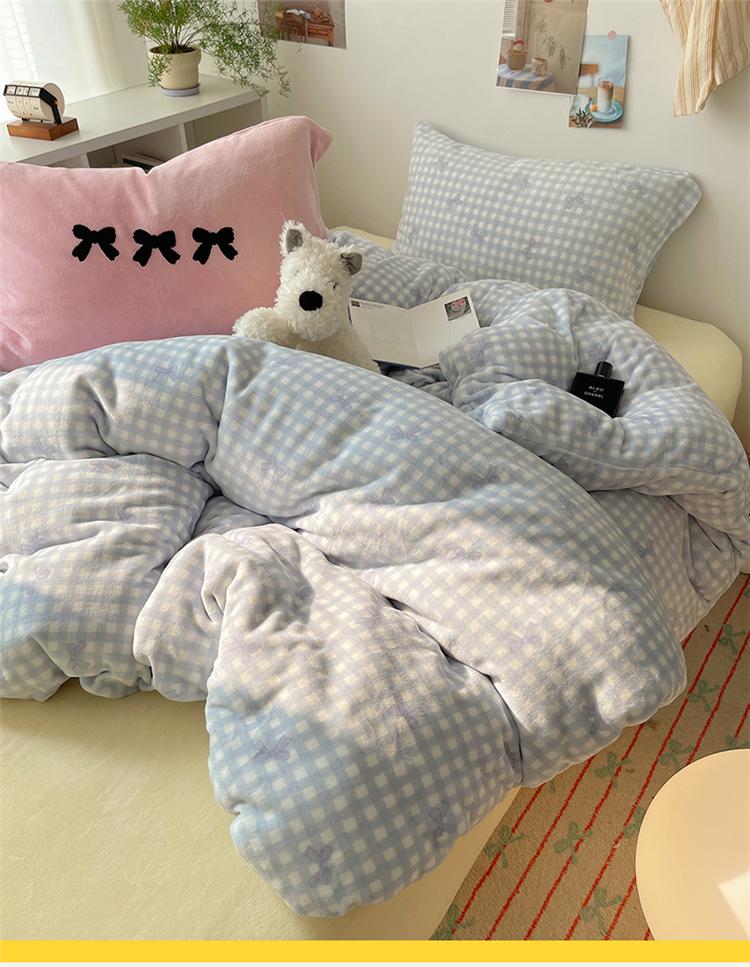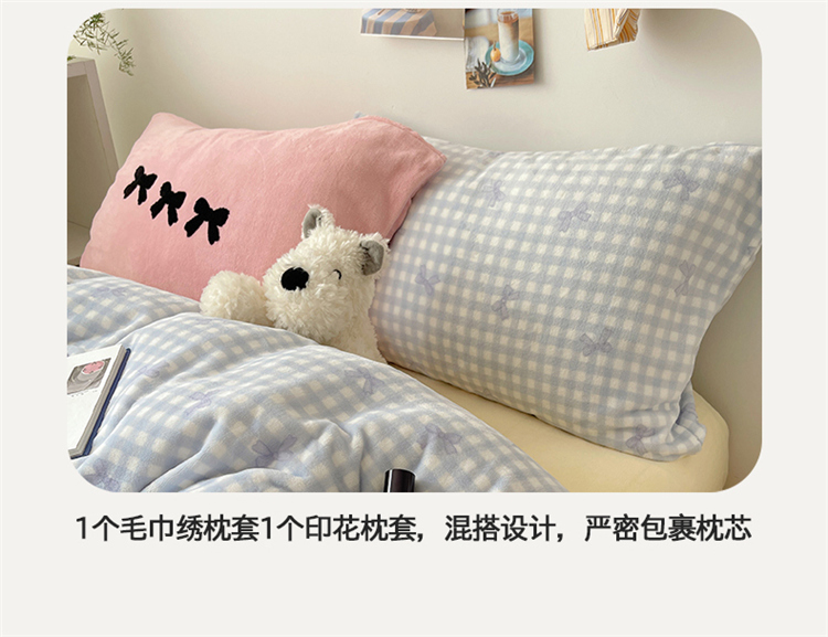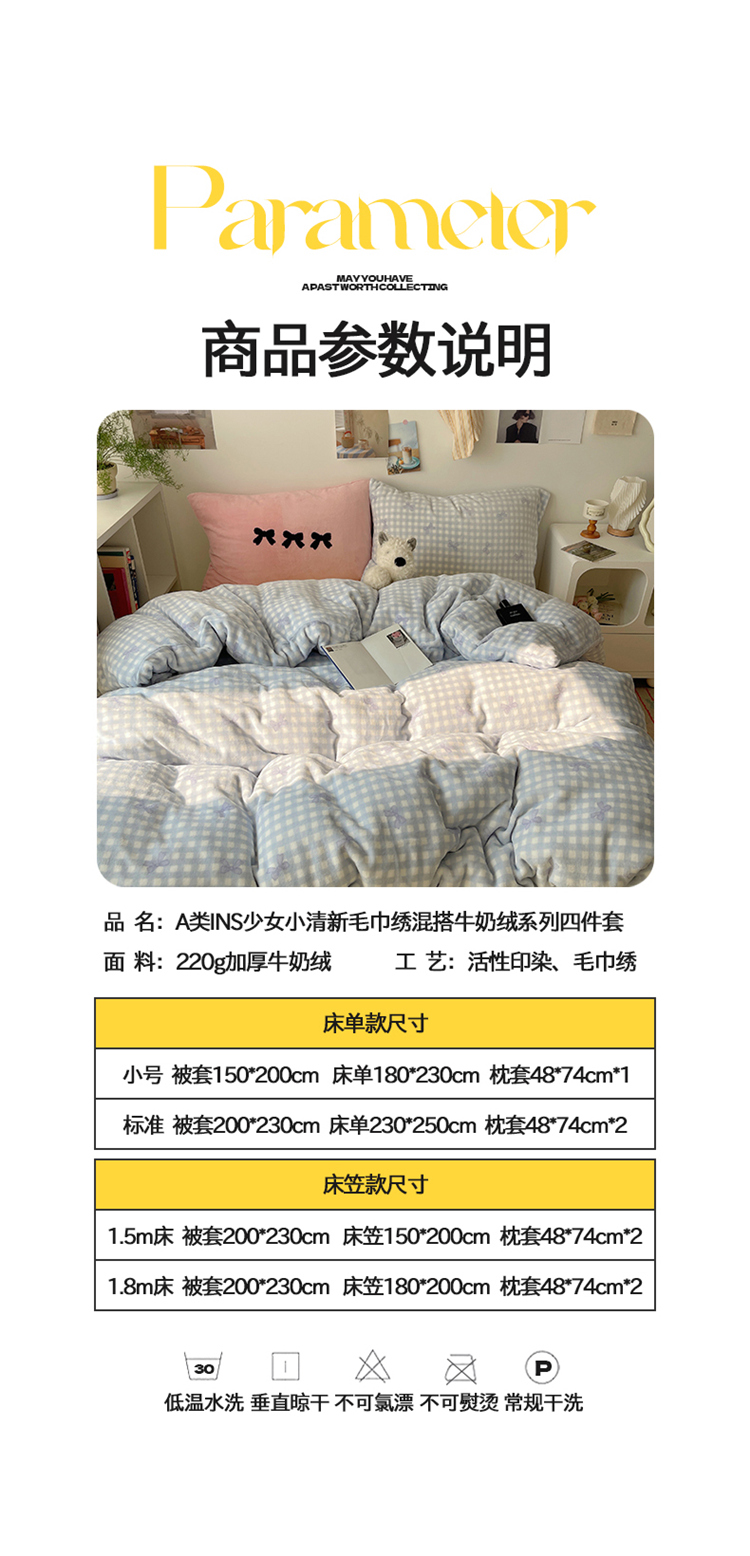 当前位置: 91家纺网 > 商品网购 > 床品套件 > 四件套 > 牛奶绒四件套 > 2024新款A类ins少女小清新蝴蝶爱心蝴蝶结毛巾绣混搭牛奶绒系列四件套 绒毛巾绣-格子蝴蝶结蓝蓝粉