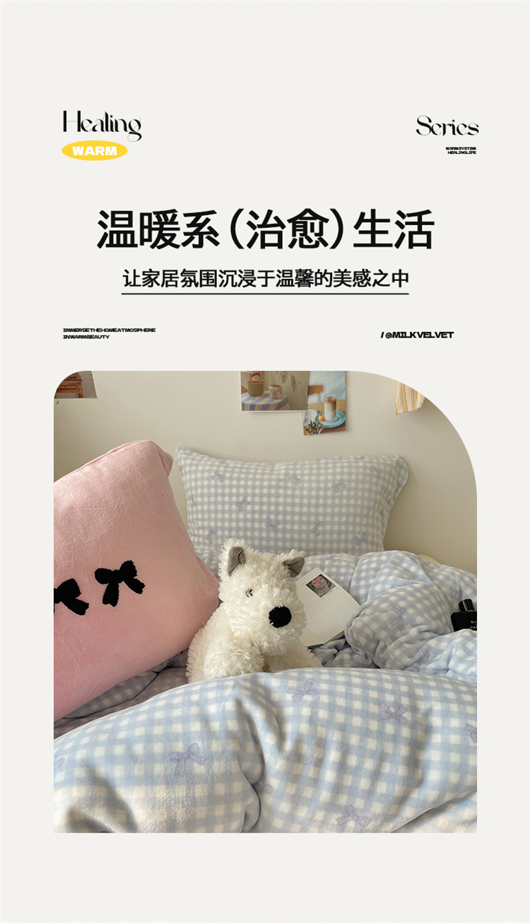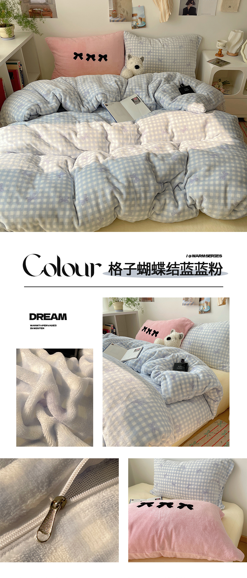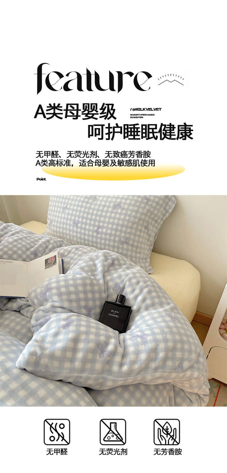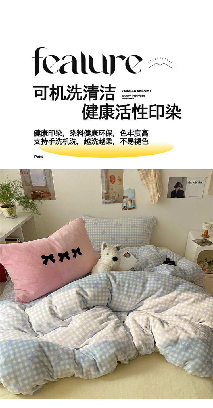 当前位置: 91家纺网 > 商品网购 > 床品套件 > 四件套 > 牛奶绒四件套 > 2024新款A类ins少女小清新蝴蝶爱心蝴蝶结毛巾绣混搭牛奶绒系列四件套 绒毛巾绣-格子蝴蝶结蓝蓝粉