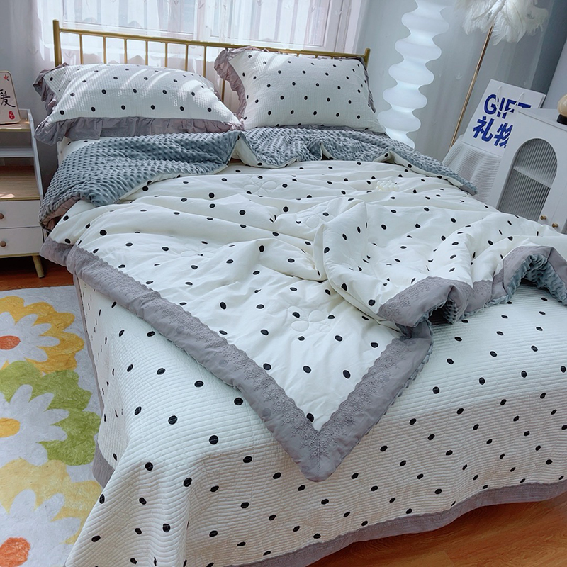 (总)暖居 2026新款大尺寸双层纱高温砂洗245X265床盖三件套,车厘子,粉绿格,洛璃,米妮,旺旺队,小丸子,樱桃可可,饼干熊,木马,小星星