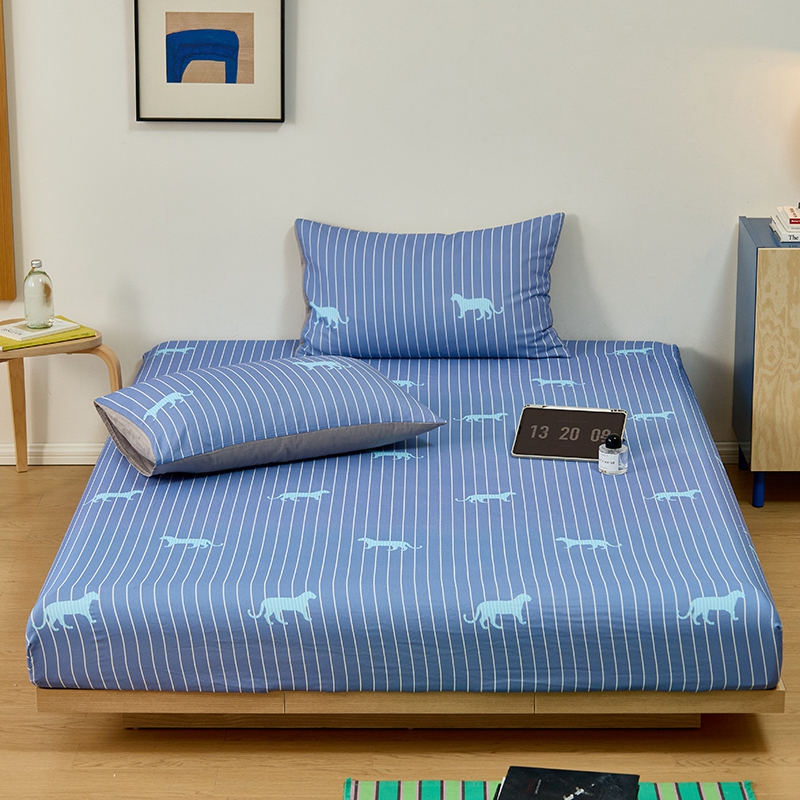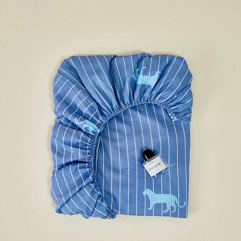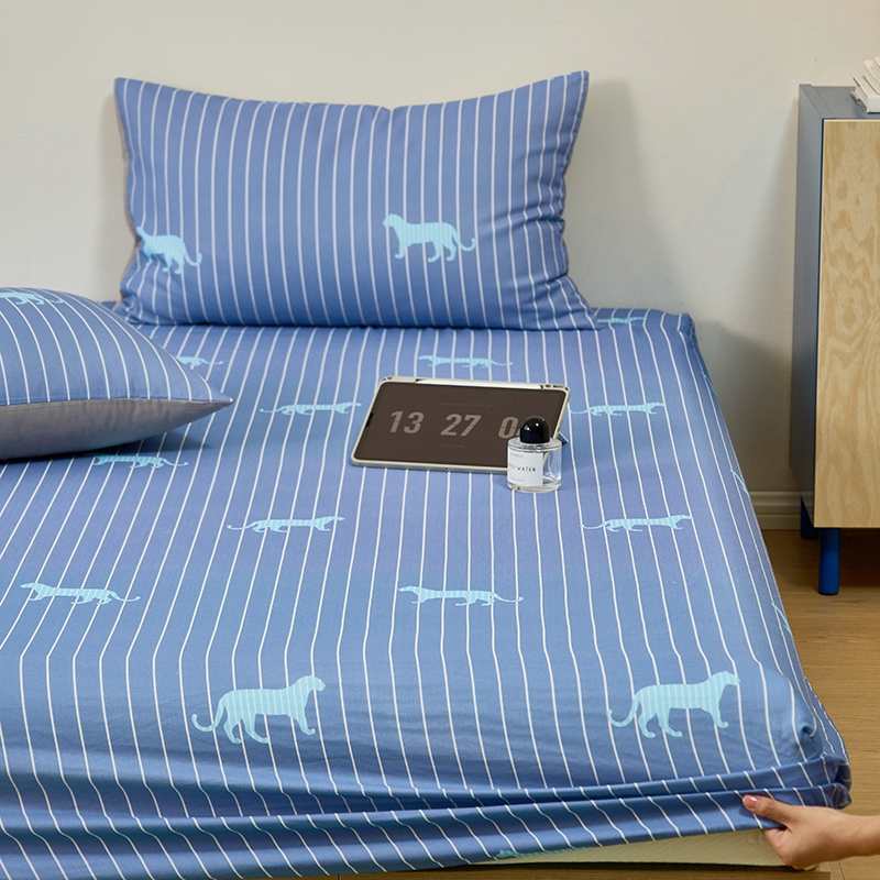 商品名称:8小时家纺 2024新款40s双层纱单品四件套系列-床笠 蓝色条纹豹子