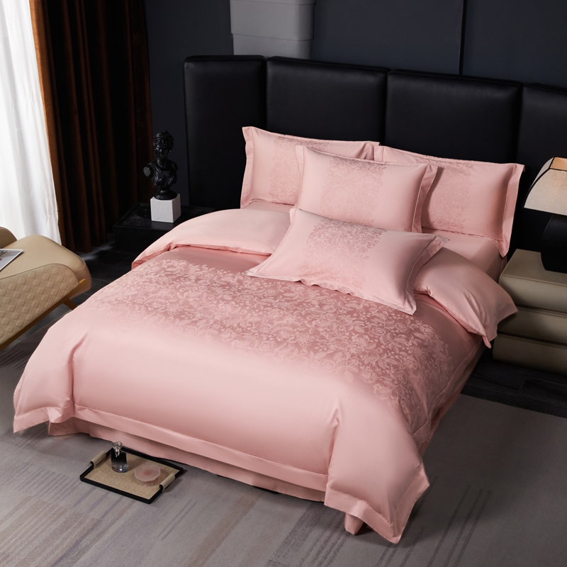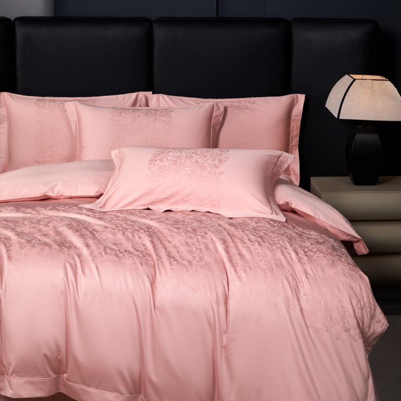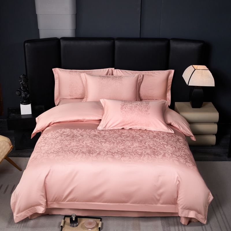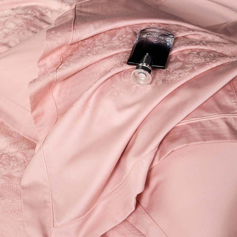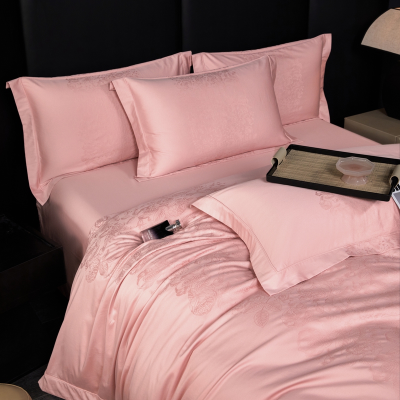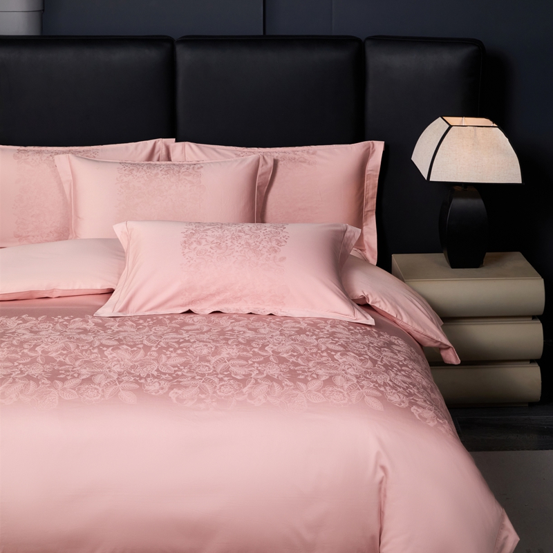 淳绵家居 2024新款50*50S双股长绒棉大版定位提花四件套 兰黛尔-豆沙粉