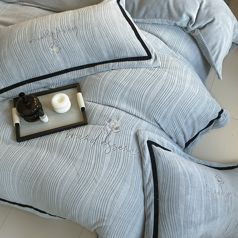 (总)舒梦琪家纺 2024新款加厚牛奶绒夹棉绣床盖四件套12斤左右,粉色,灰色,蓝色,绿色,奶白,紫色