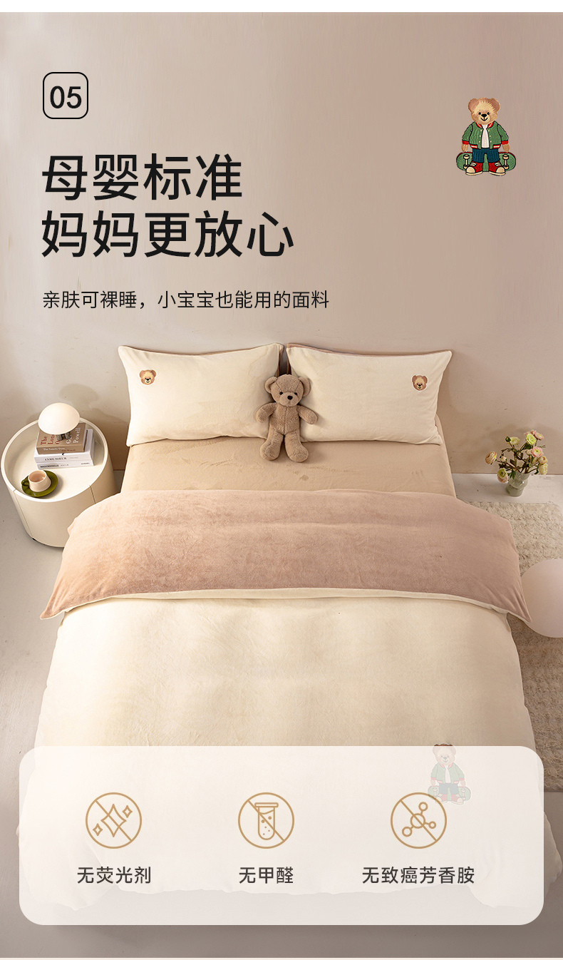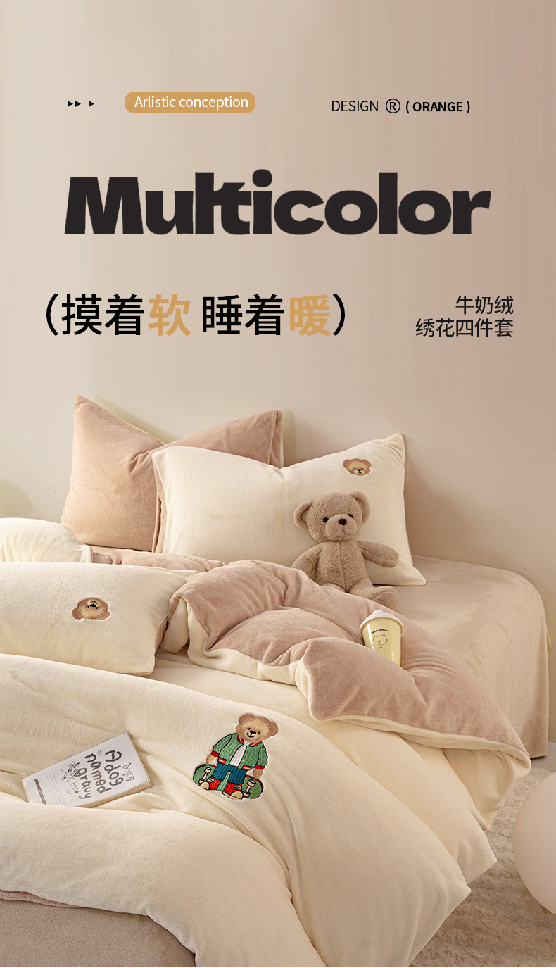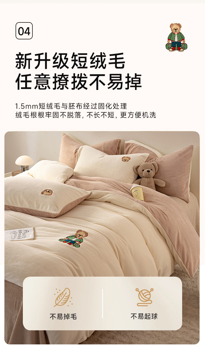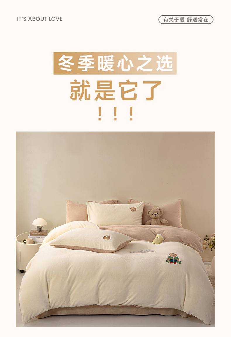 当前位置: 91家纺网 > 商品网购 > 床品套件 > 四件套 > 牛奶绒四件套 > 沐晴家纺 2024新品秋冬加厚牛奶绒纯色简约绣花卡通四件套 滑板熊(白+米驼)