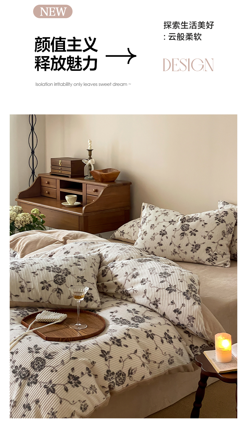 (总)三味舒屋 2025新款肌理印加提牛奶绒四件套-清雅 风格一