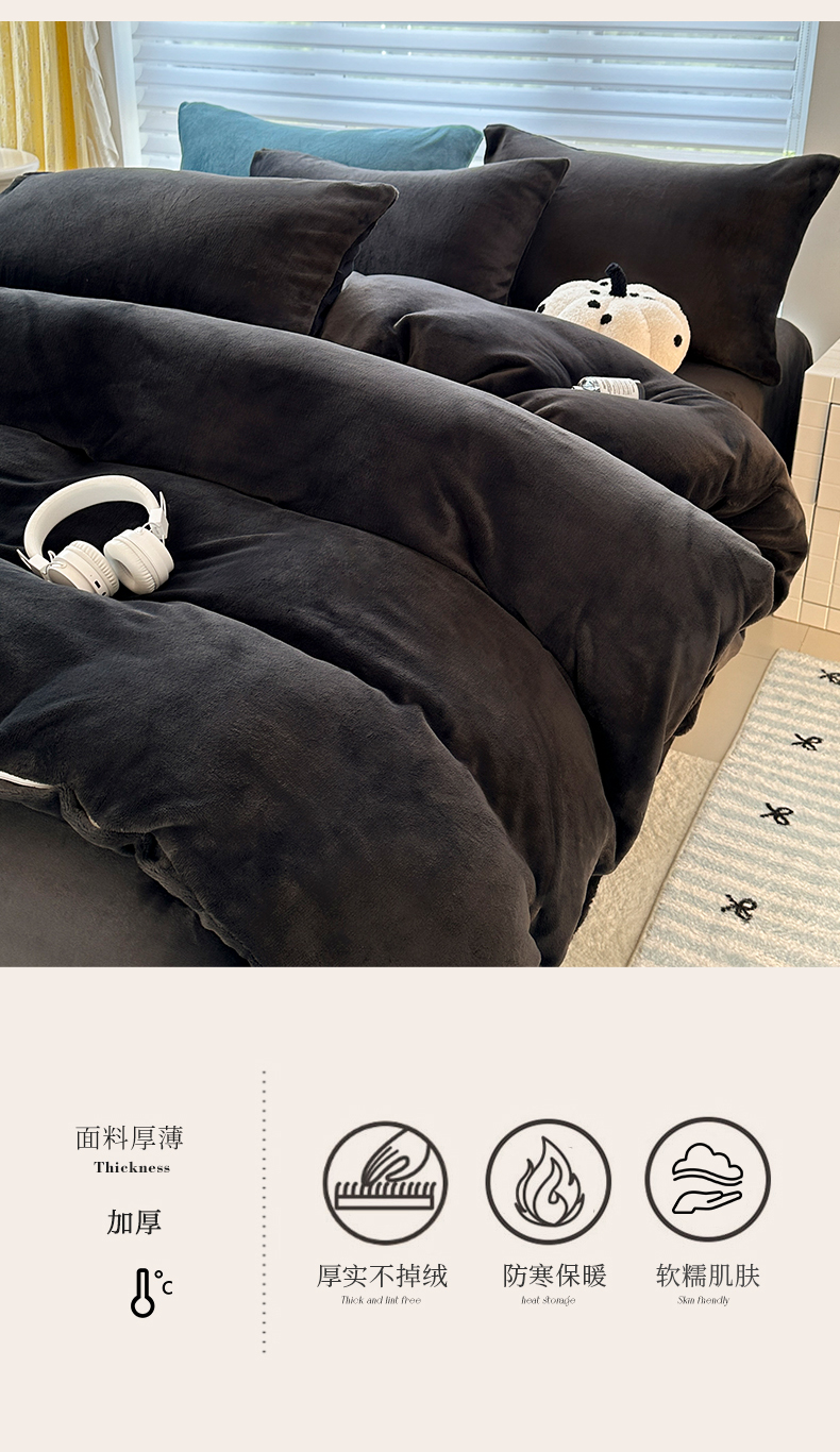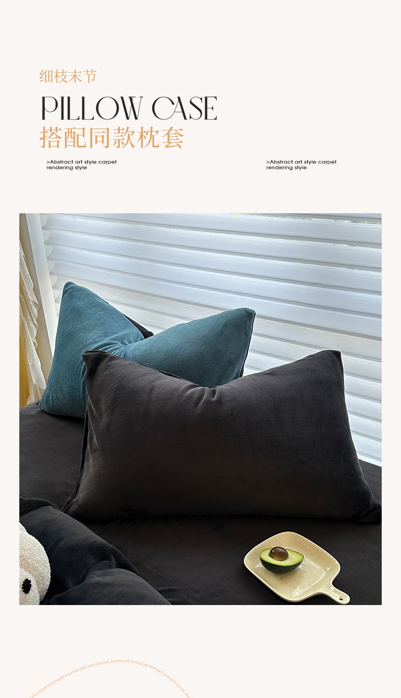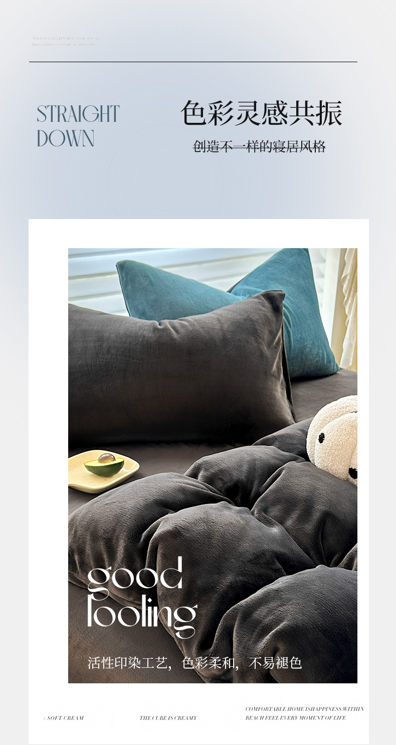 (总)觅妮家纺 2025新款纯色高克重牛奶绒四件套系列,果绿粉,宝石蓝,高级黑,卡其黑,柠檬粉,浅粉灰,深浅灰,树莓粉