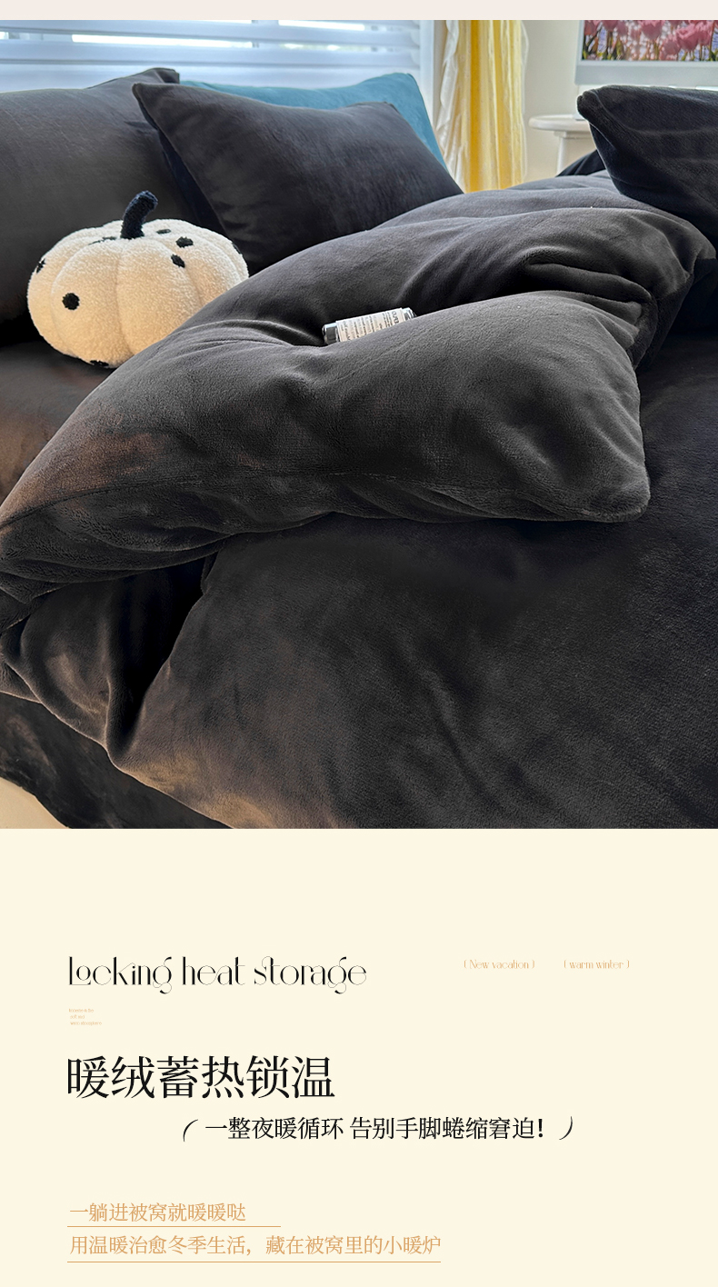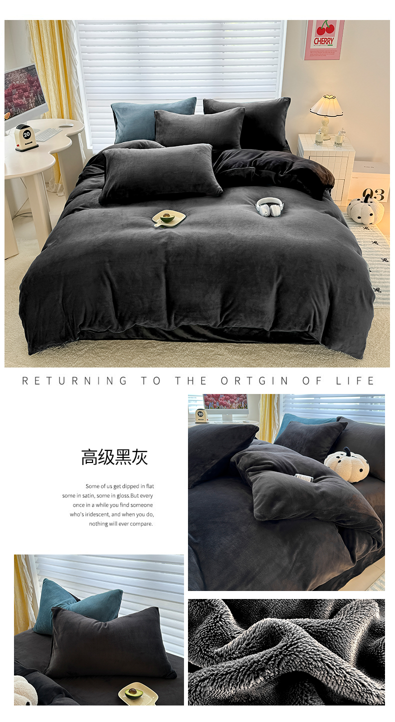 商品名称:觅妮家纺 2025新款全消光200g简约高克重秋冬加厚双拼牛奶绒单被套 高级黑灰