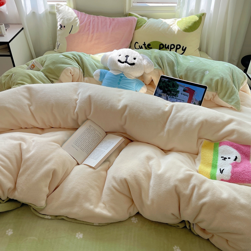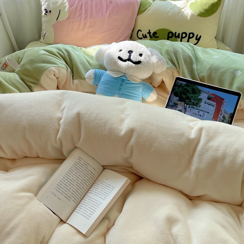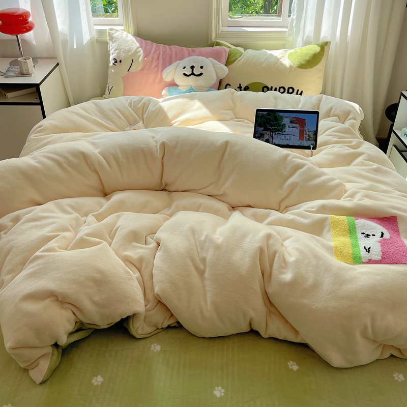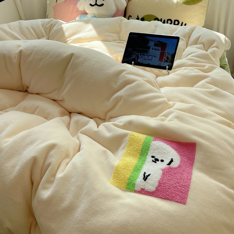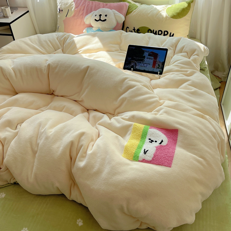 商品名称:桃喜 2024新款牛奶绒卡通数码印花绣标四件套 害羞小狗