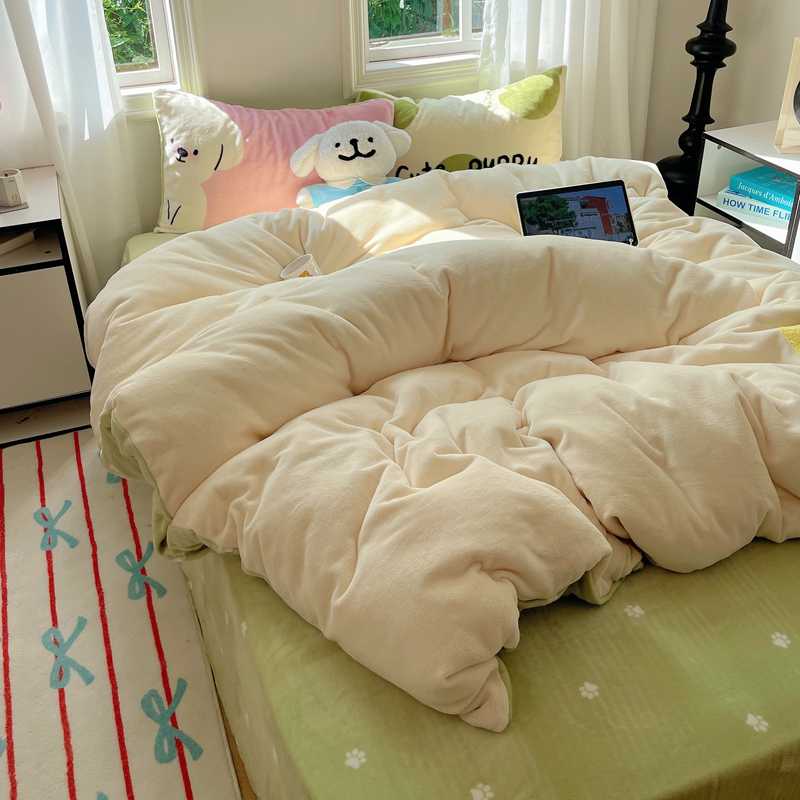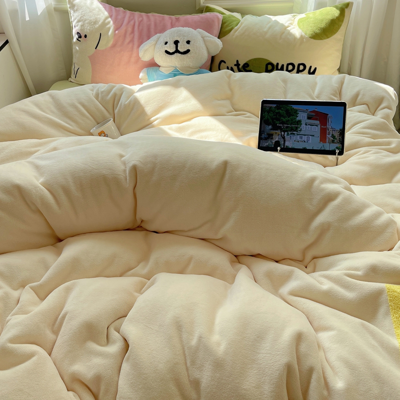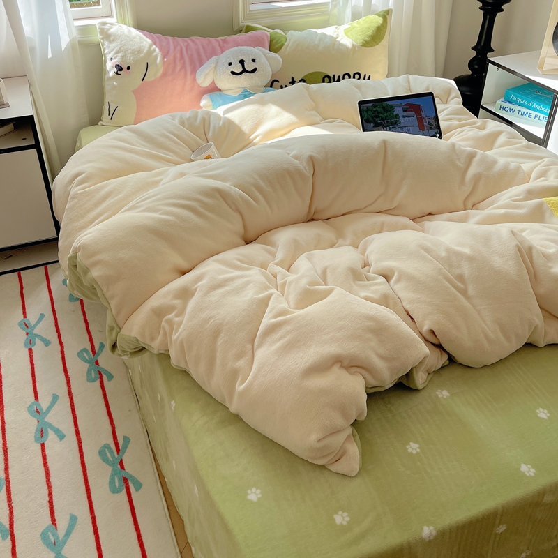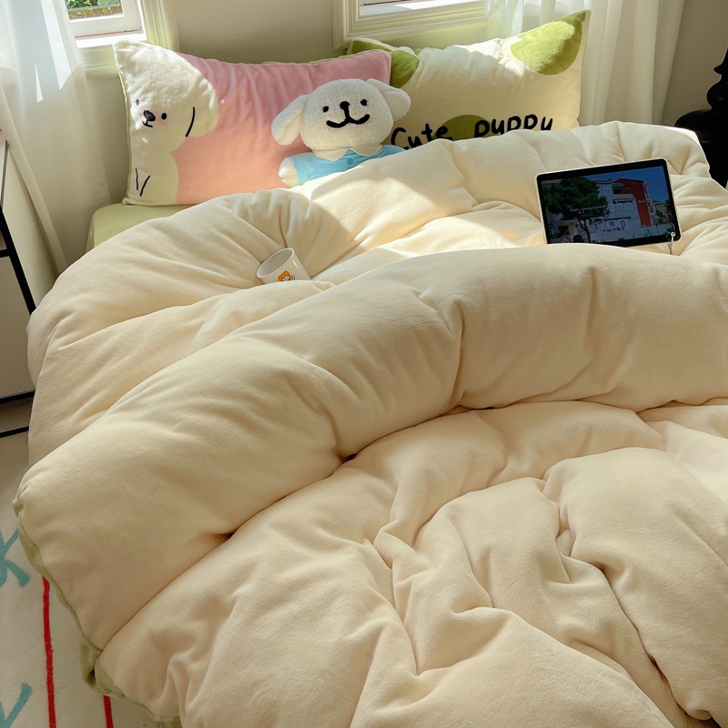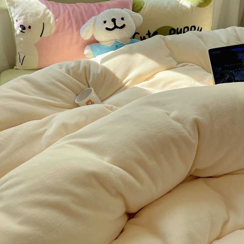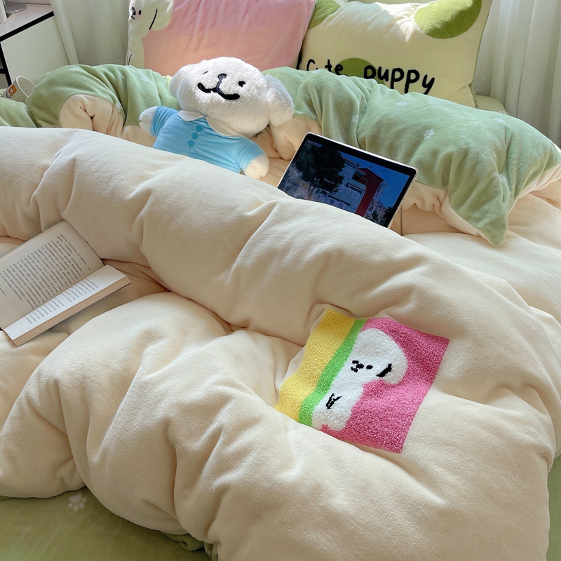 商品名称:桃喜 2024新款牛奶绒卡通数码印花绣标四件套 害羞小狗