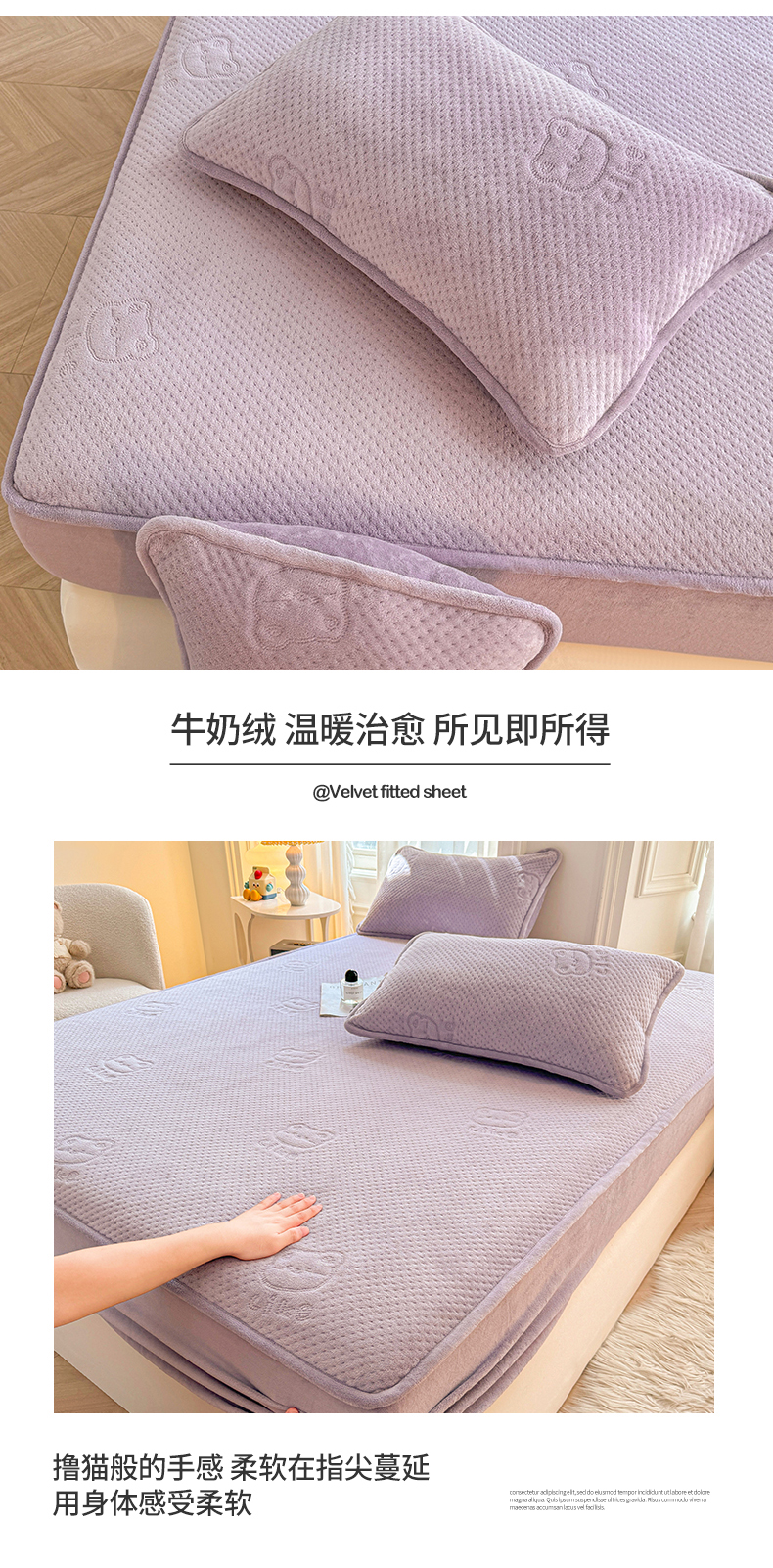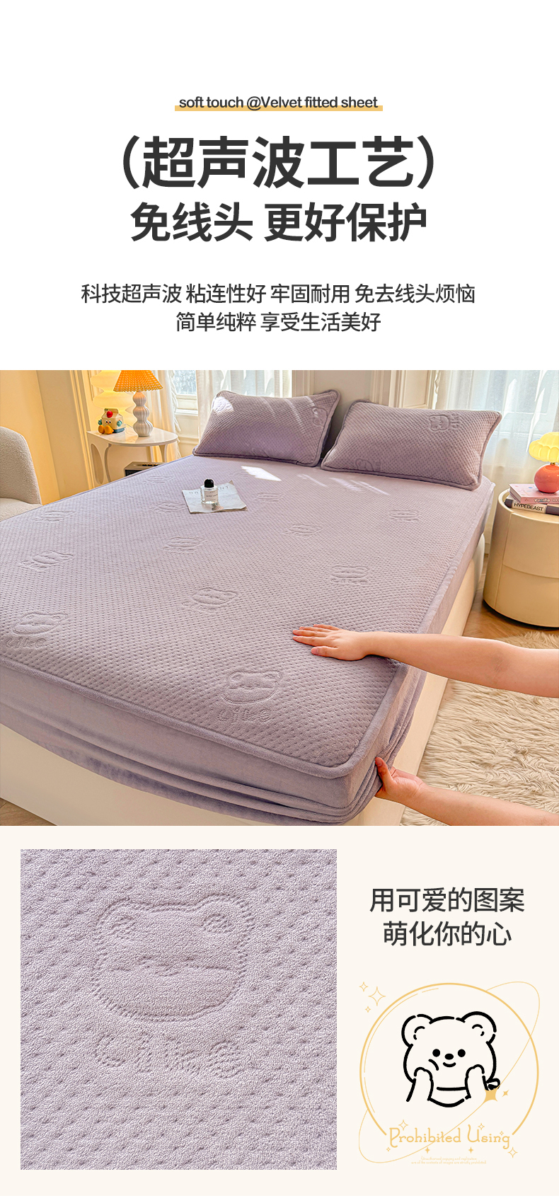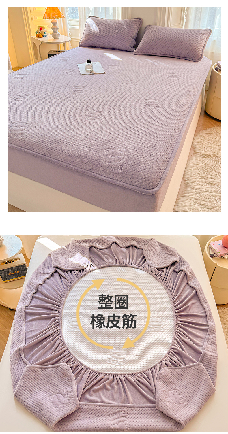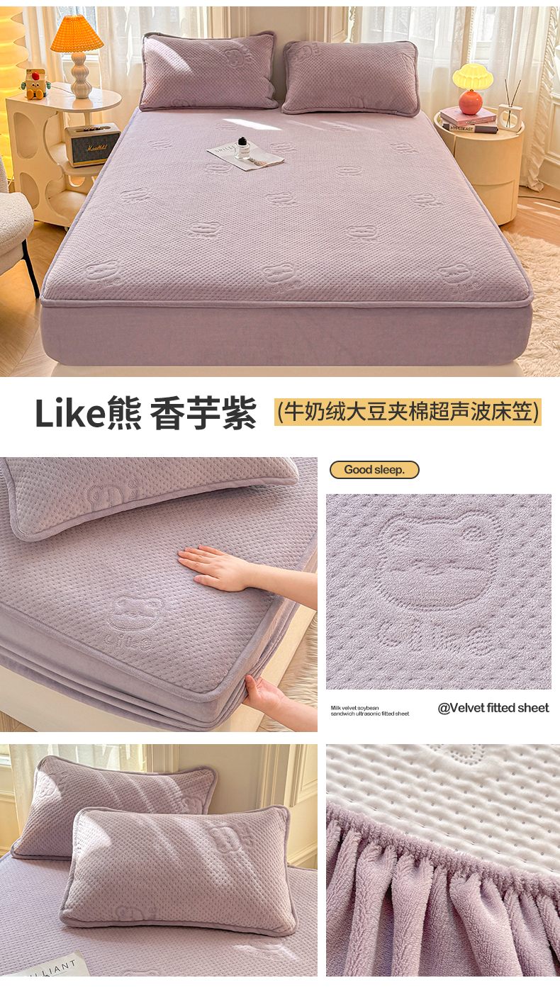 商品名称:居眠 2024新款牛奶绒超声波like小熊夹棉大豆床笠 Like熊-香芋紫