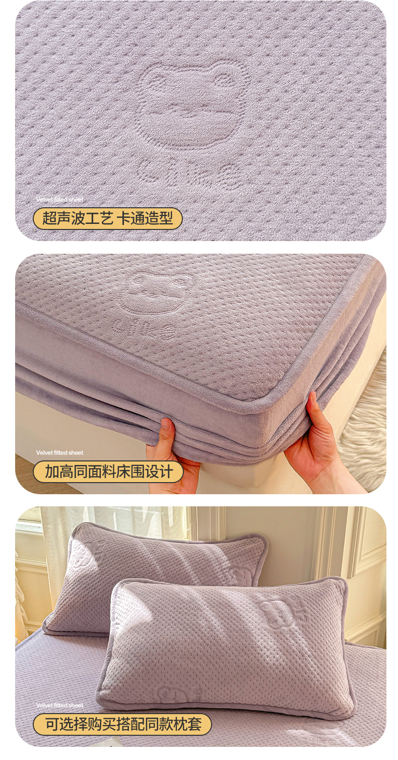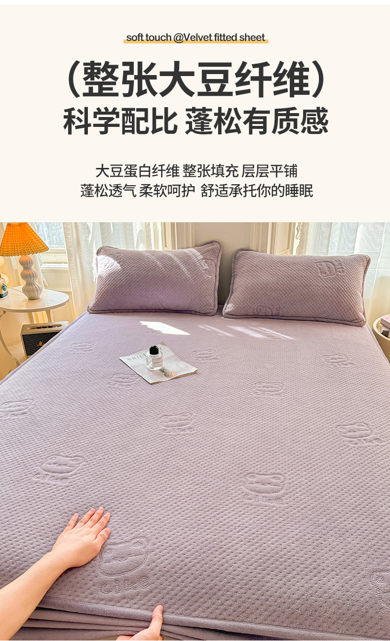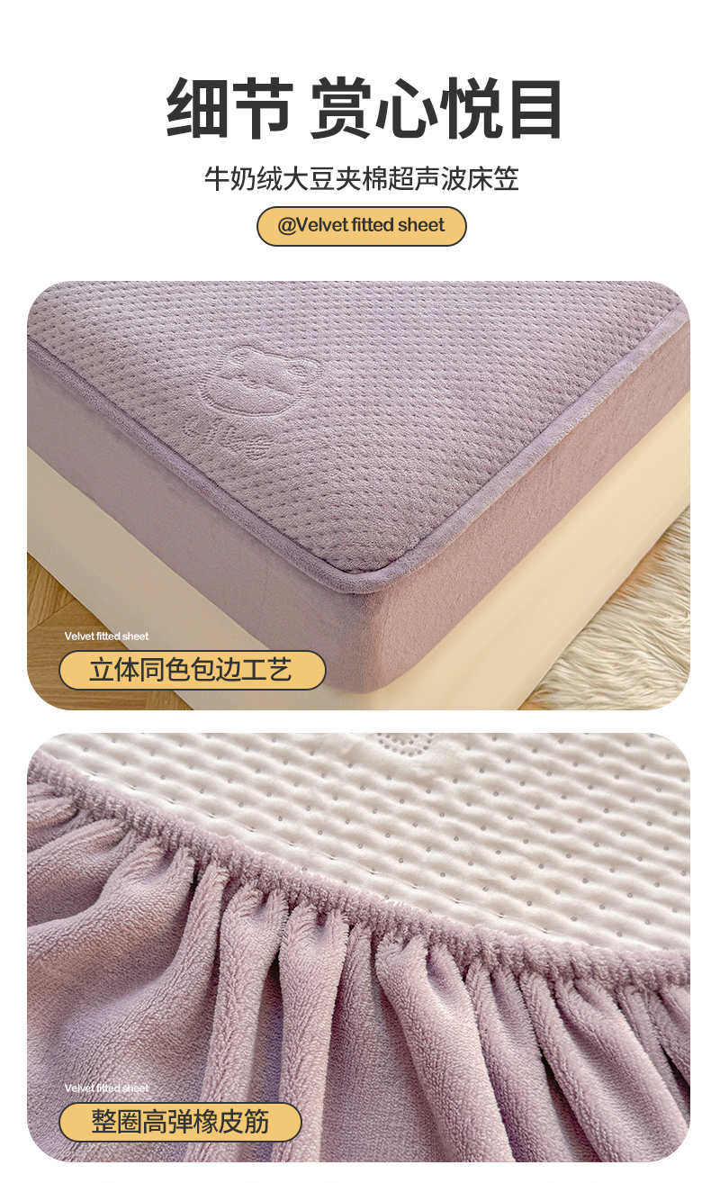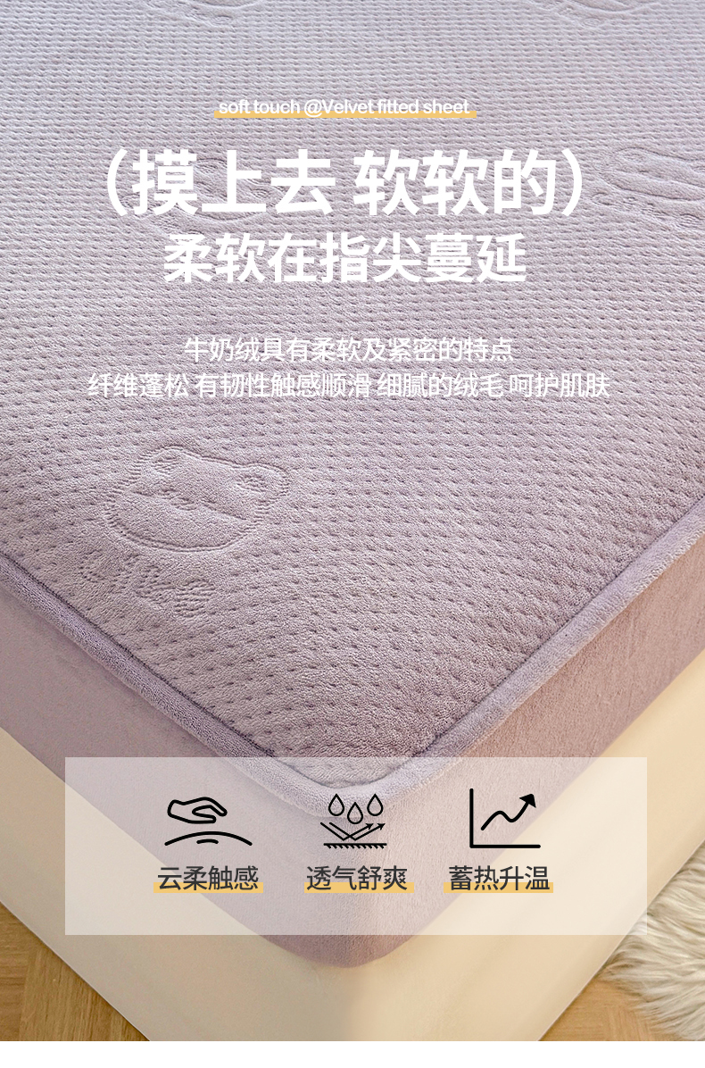 商品名称:居眠 2024新款牛奶绒超声波like小熊夹棉大豆床笠 Like熊-香芋紫