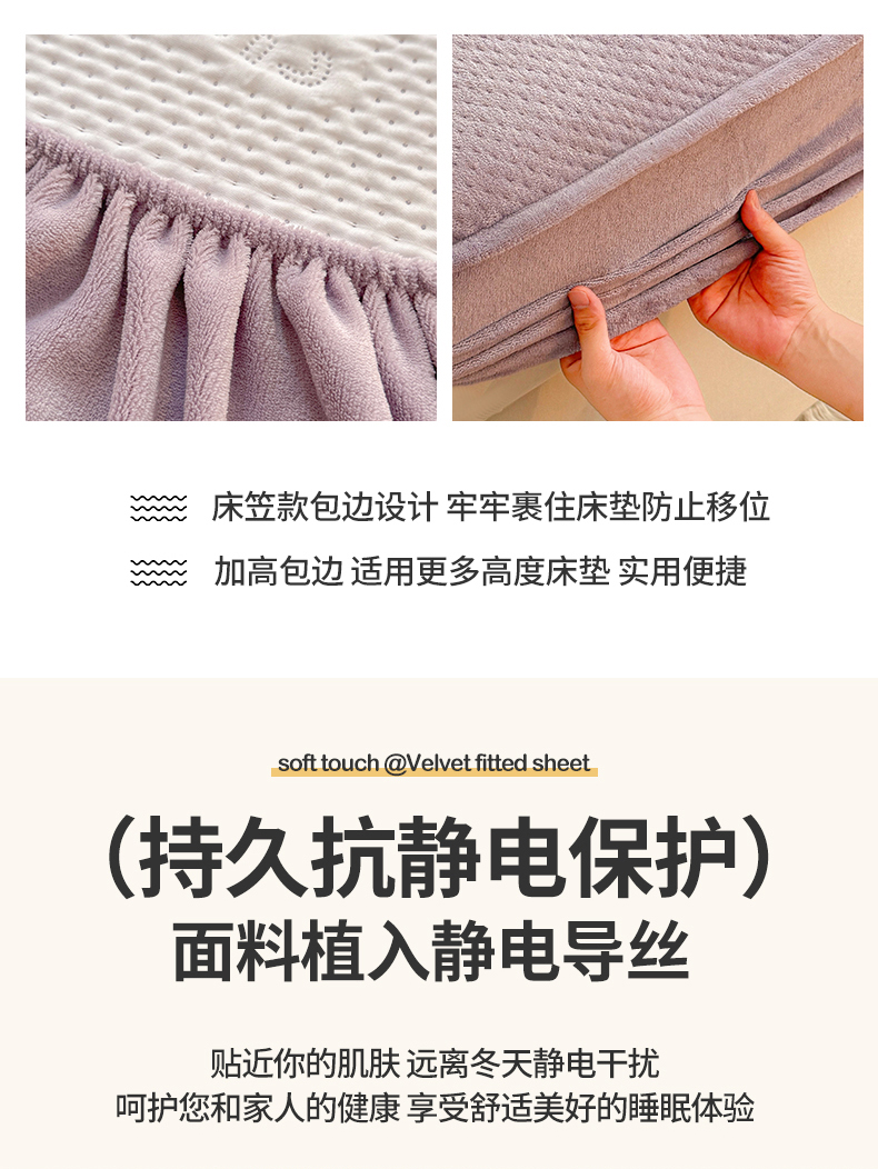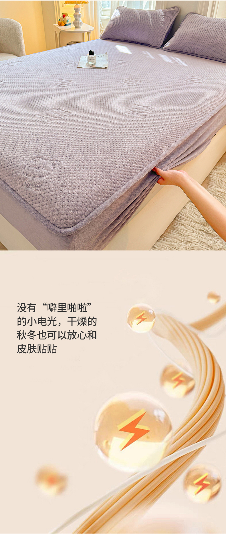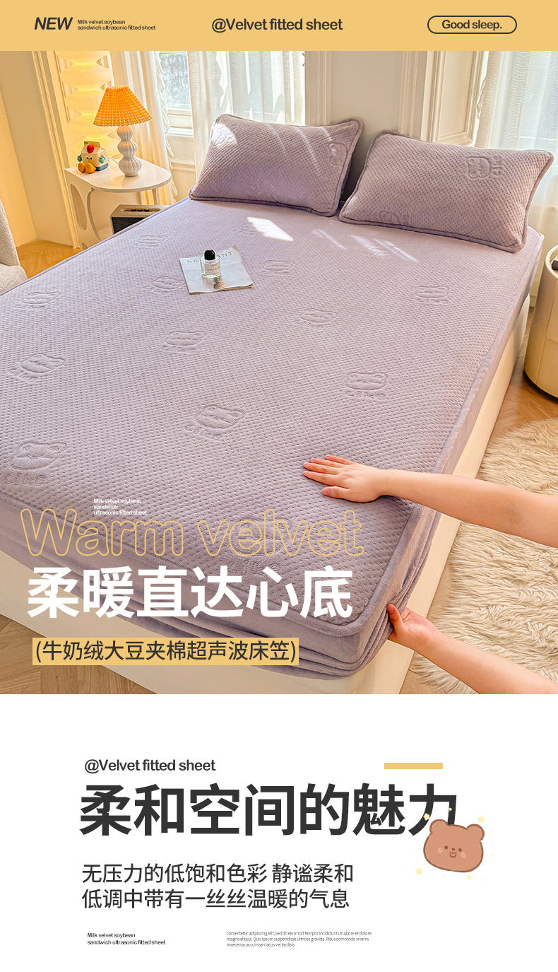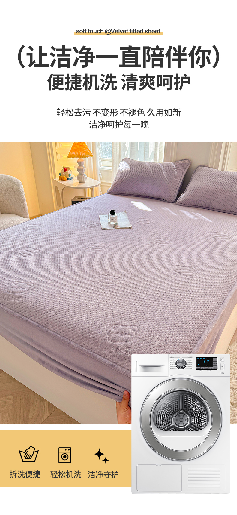 商品名称:居眠 2024新款牛奶绒超声波like小熊夹棉大豆床笠 Like熊-香芋紫