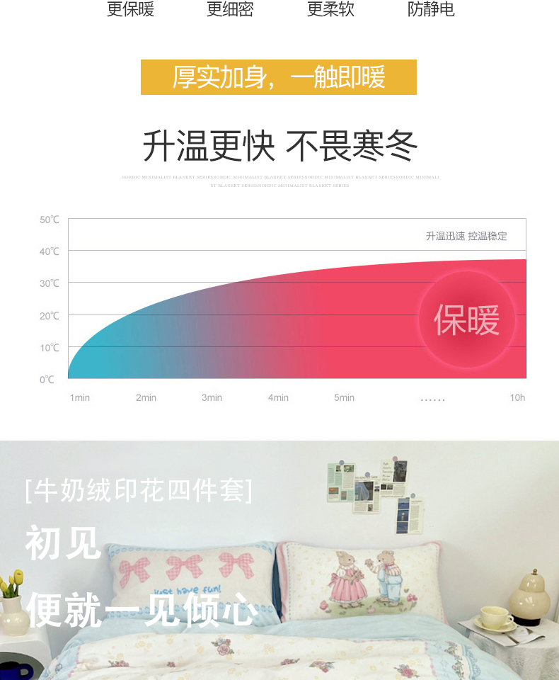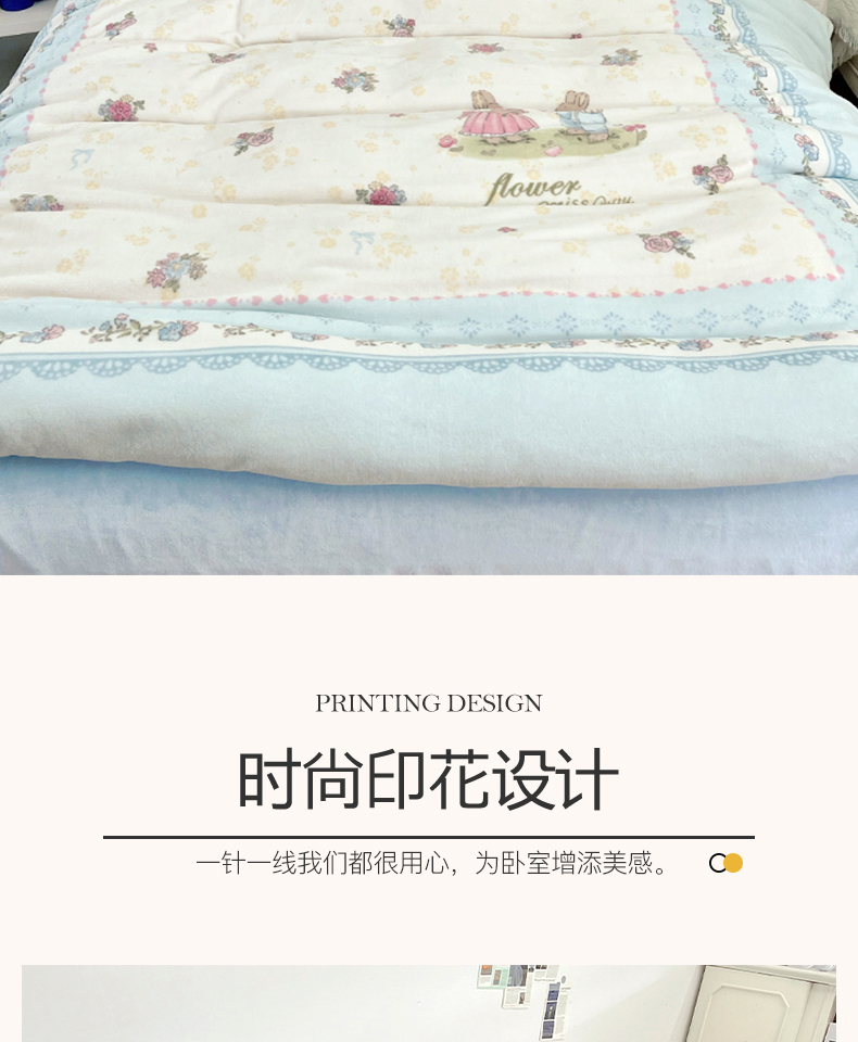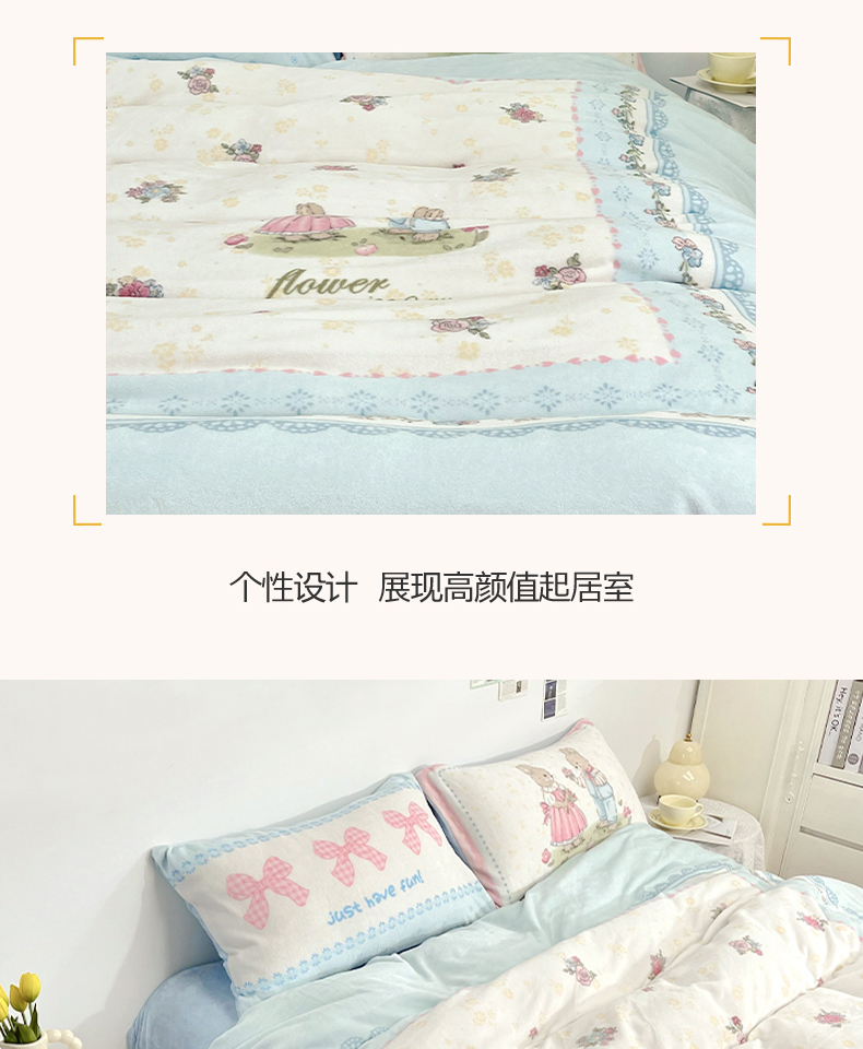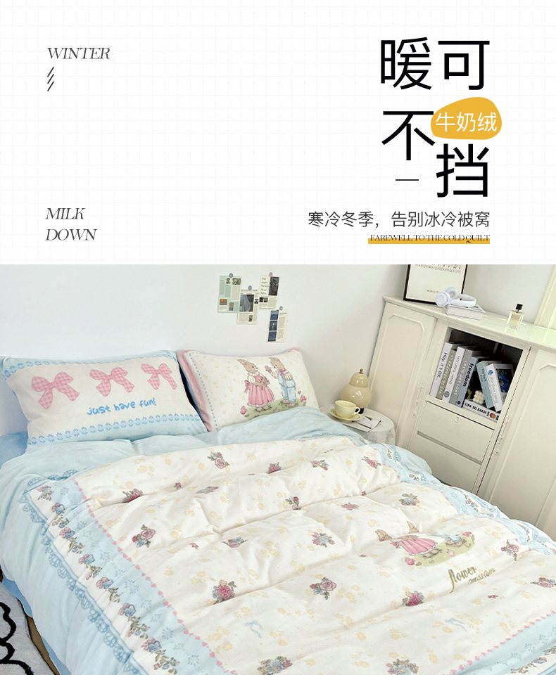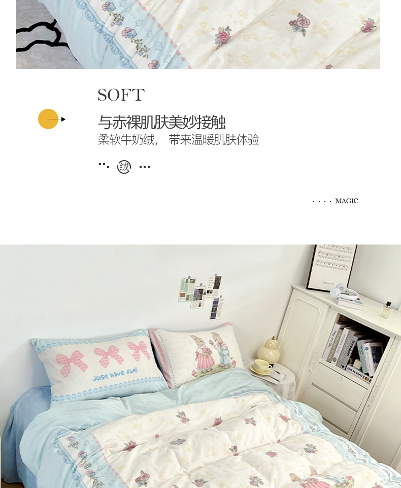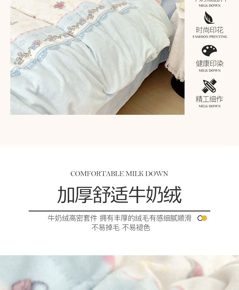 商品名称:浩诚 2024新款ins风牛奶绒印花四件套 爱丽丝