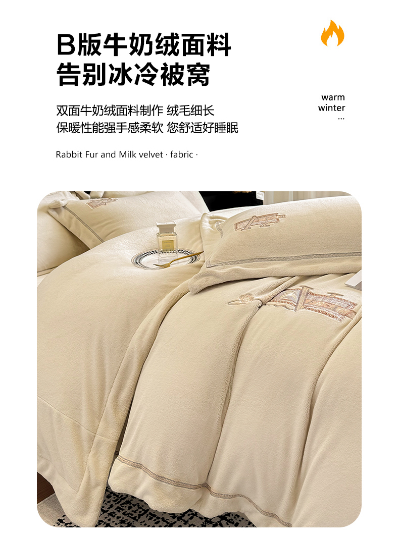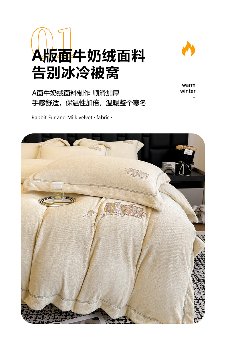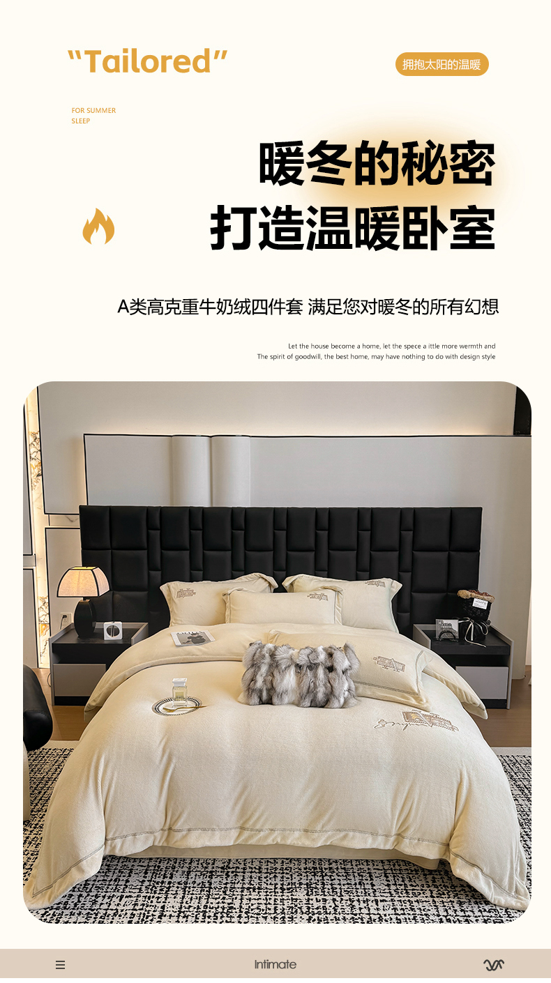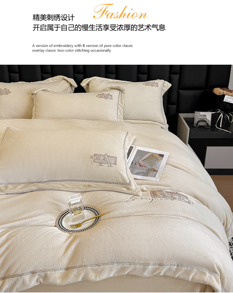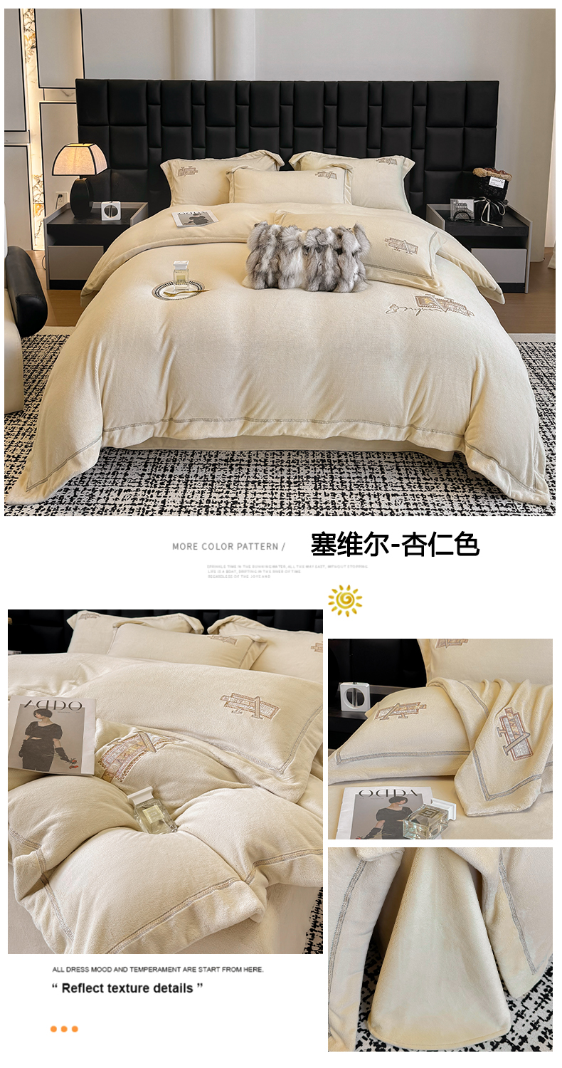 商品名称:丞音家纺 2024新款A类高克重全消光牛奶绒四件套-塞维尔系列 塞维尔-杏仁色