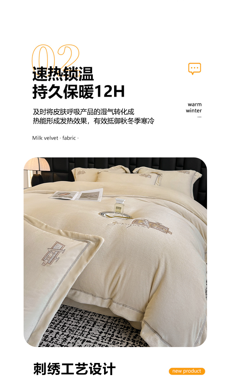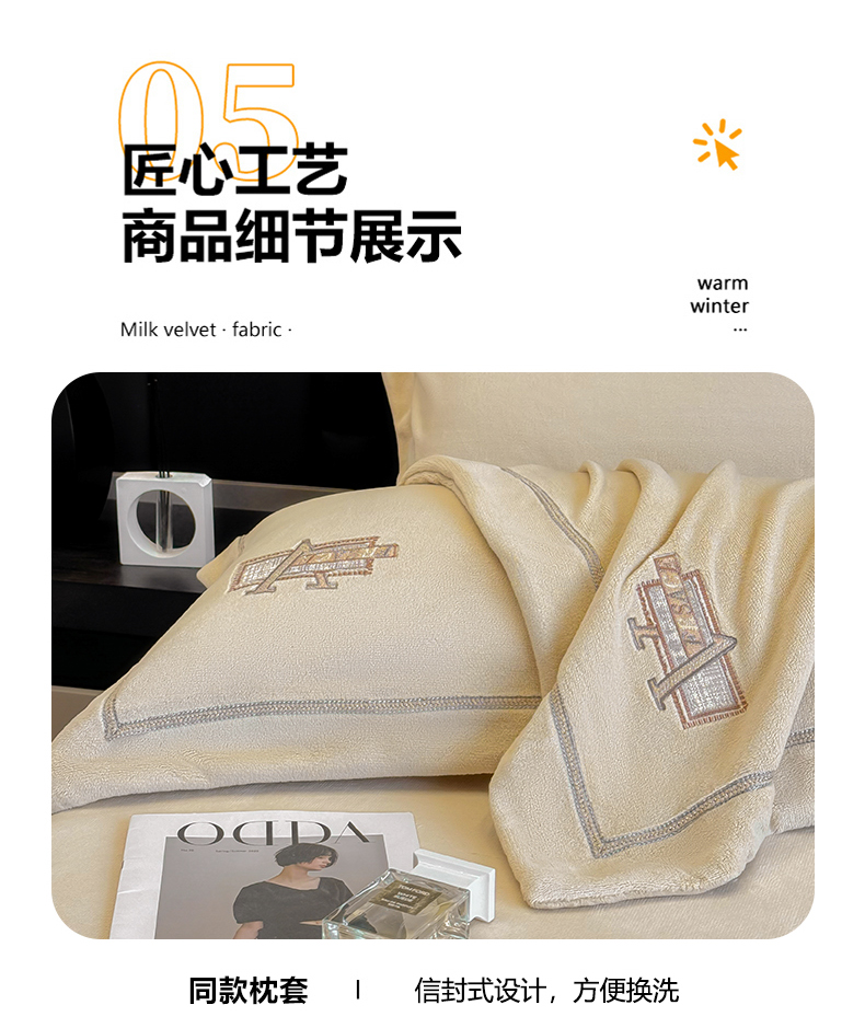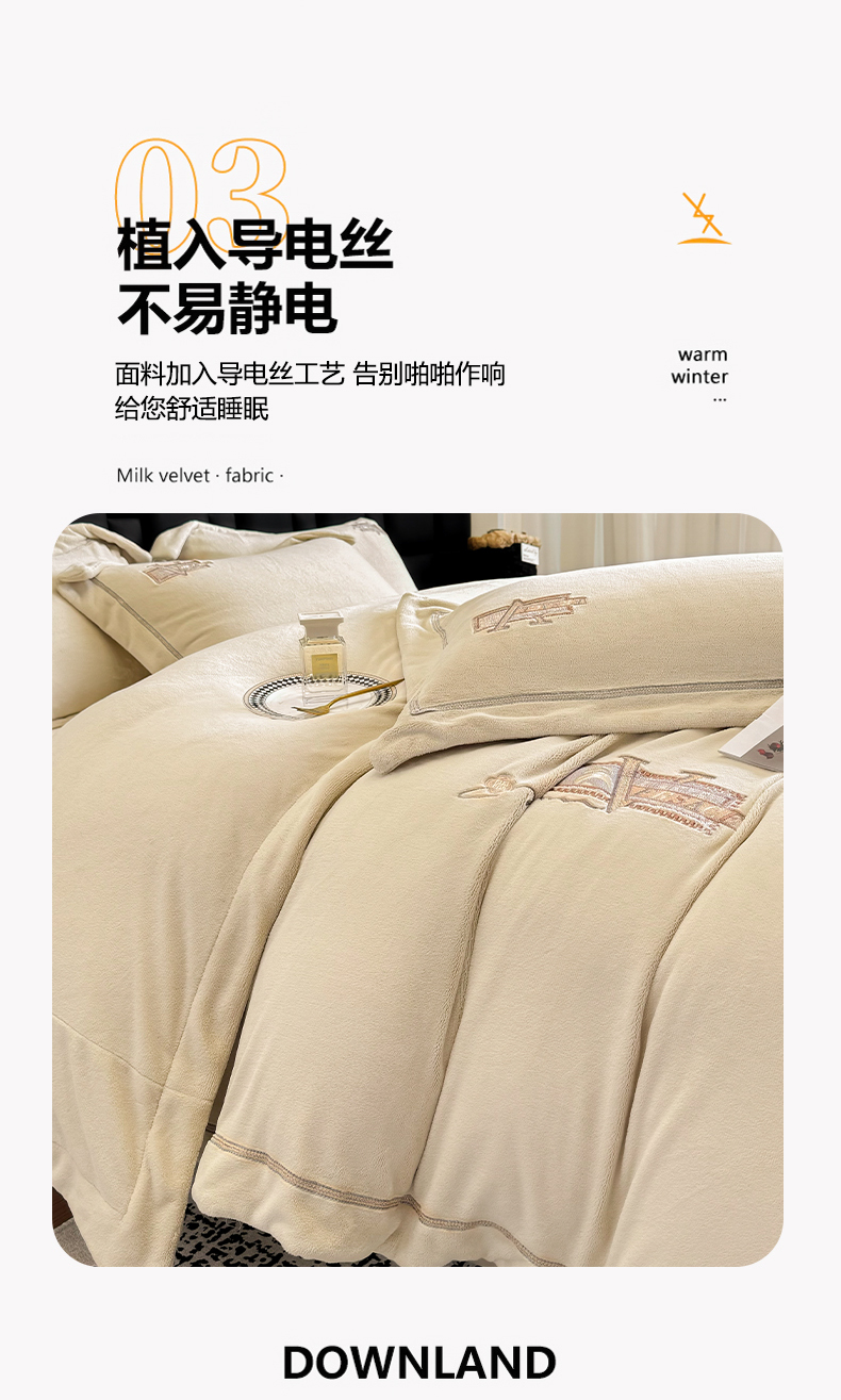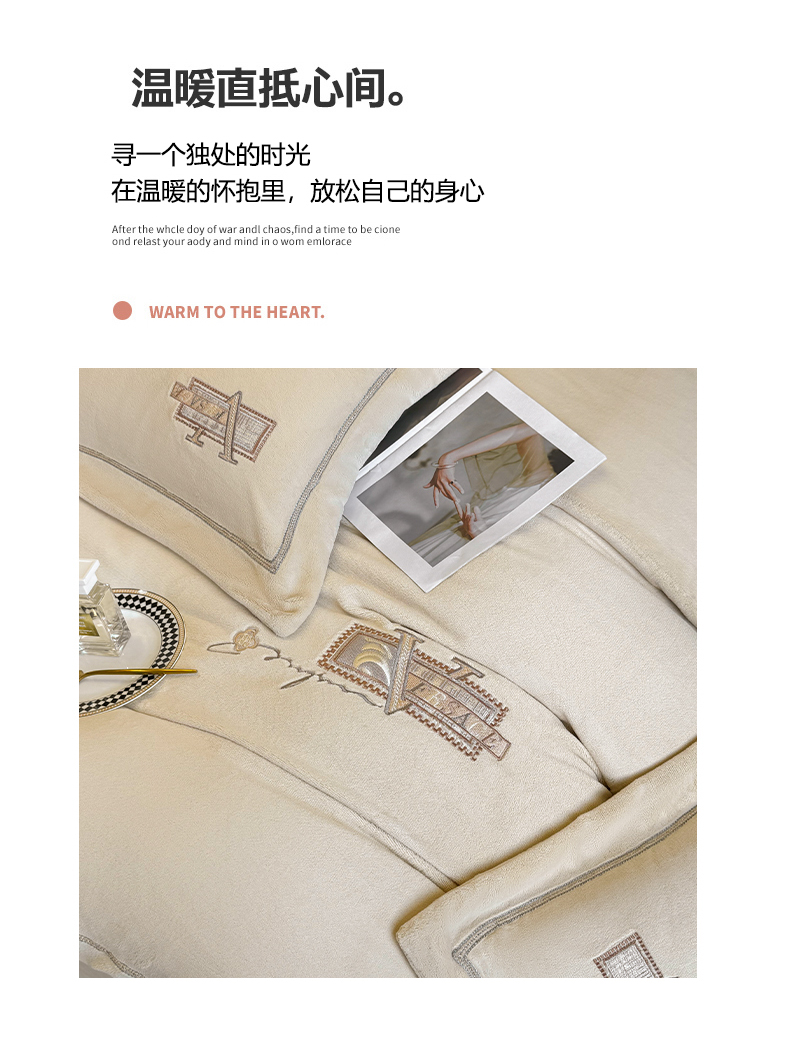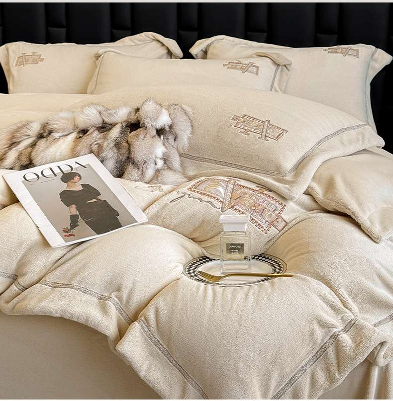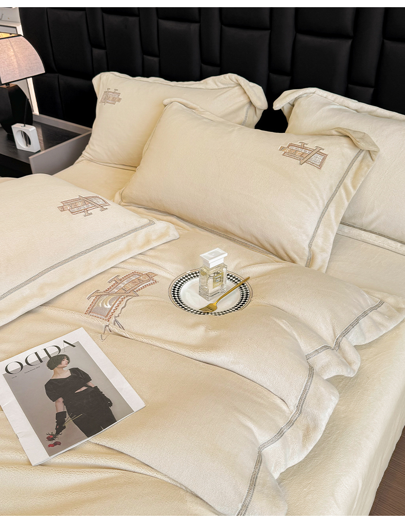 商品名称:丞音家纺 2024新款A类高克重全消光牛奶绒四件套-塞维尔系列 塞维尔-杏仁色
